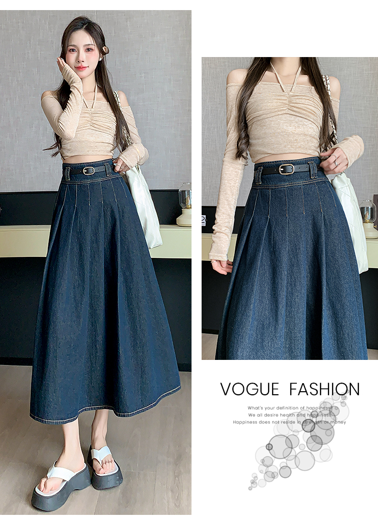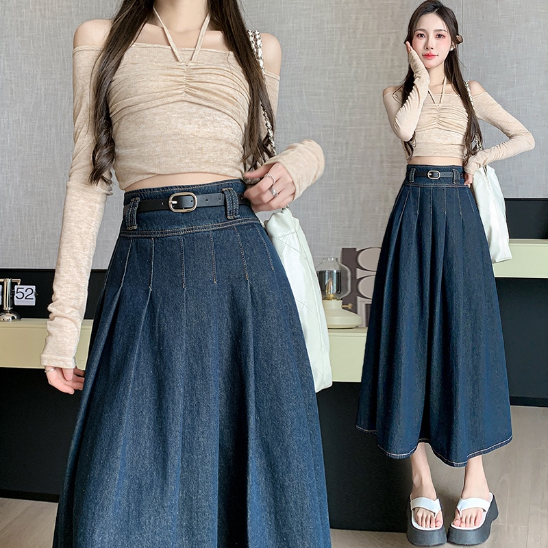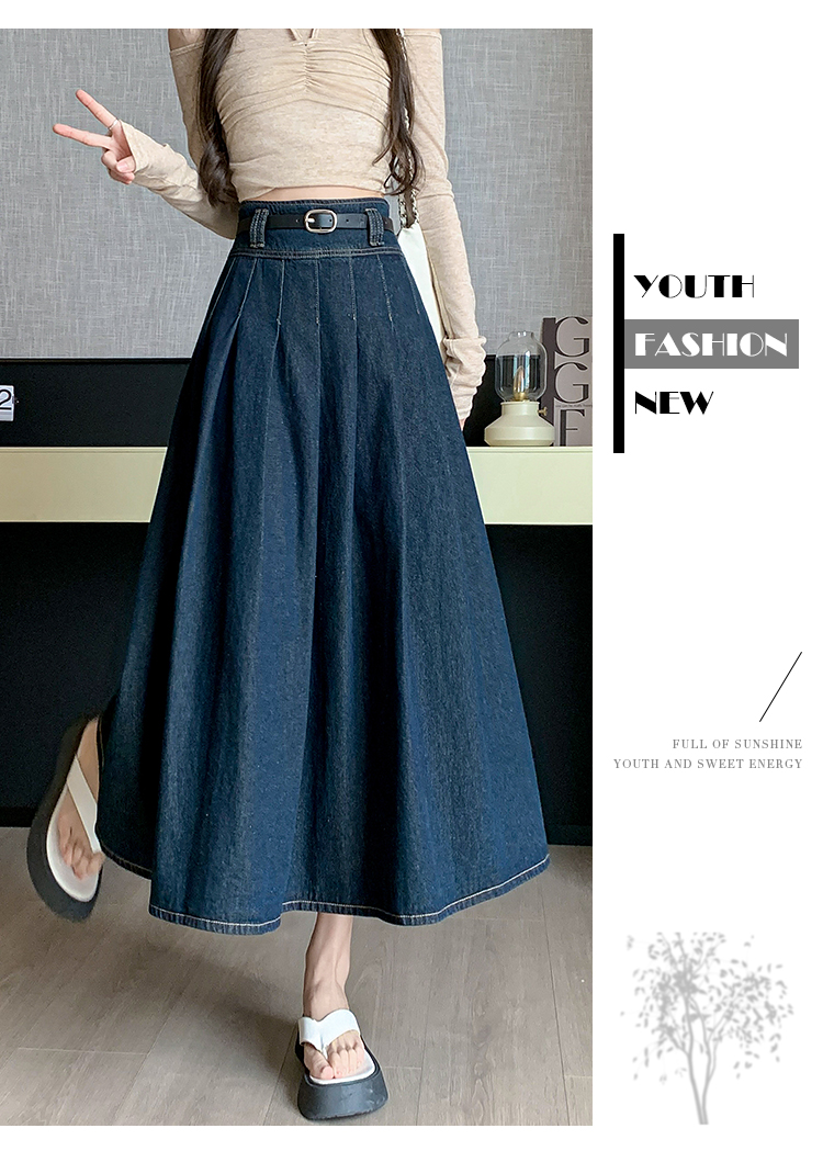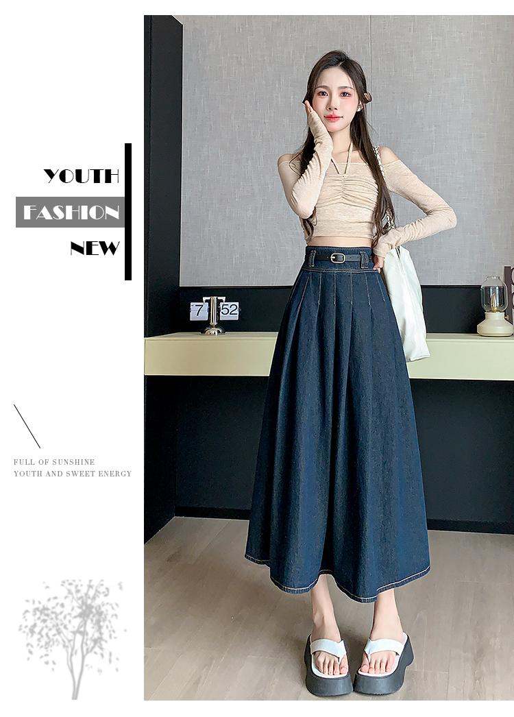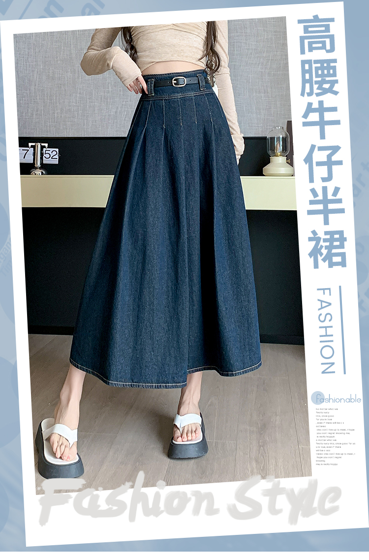RM33846#桂儿拉伸身高比例2024春夏牛仔半身裙女设计感高腰显瘦a字裙