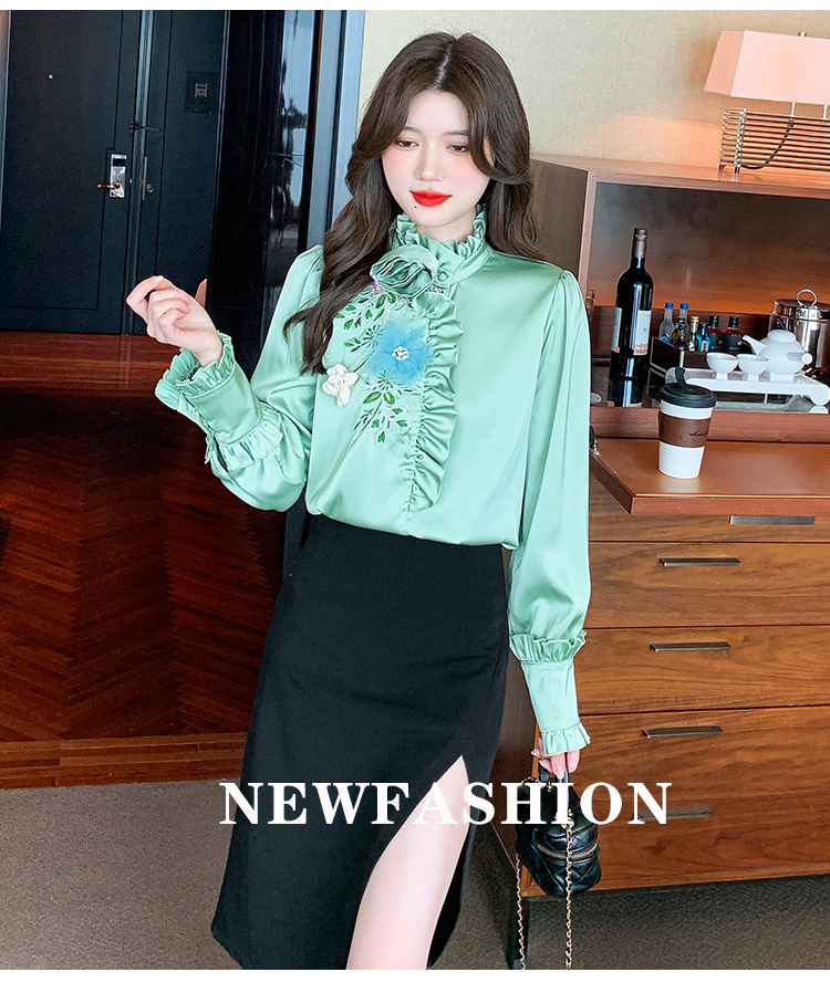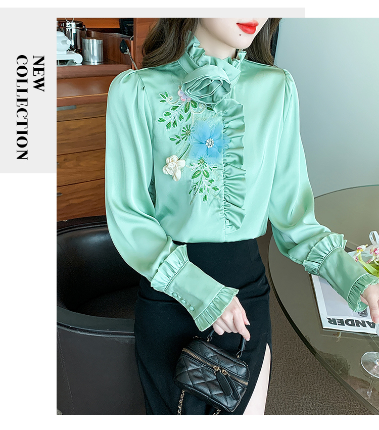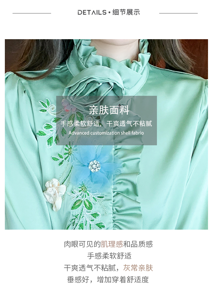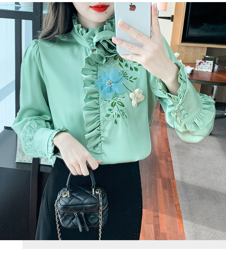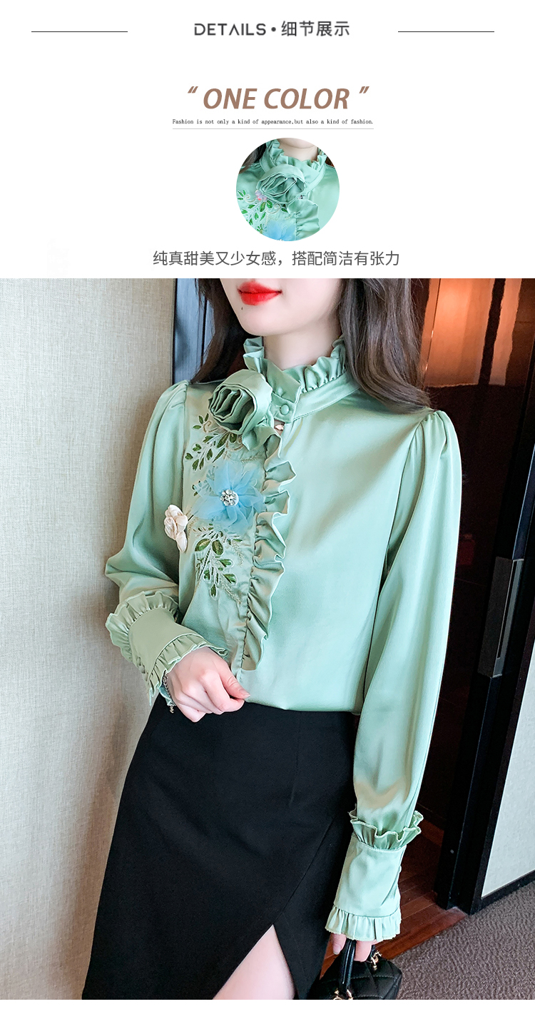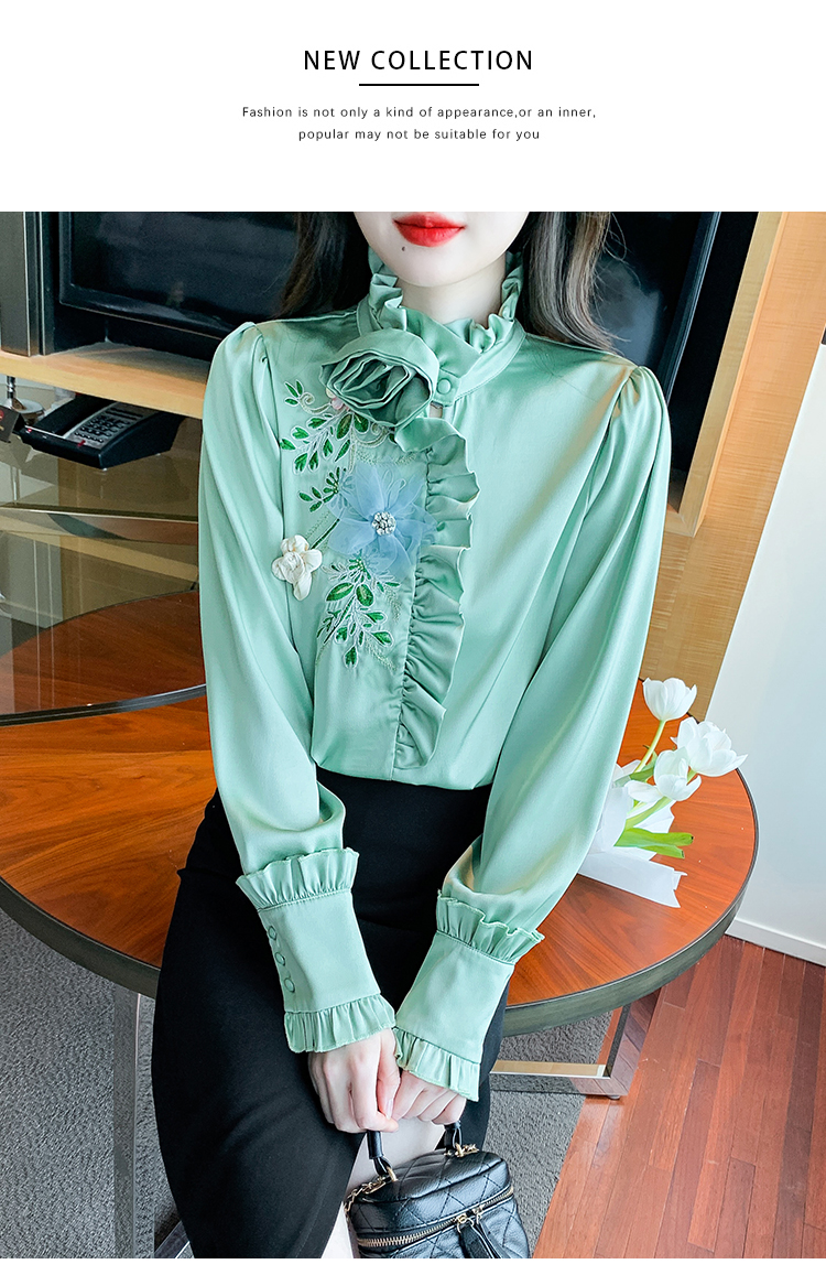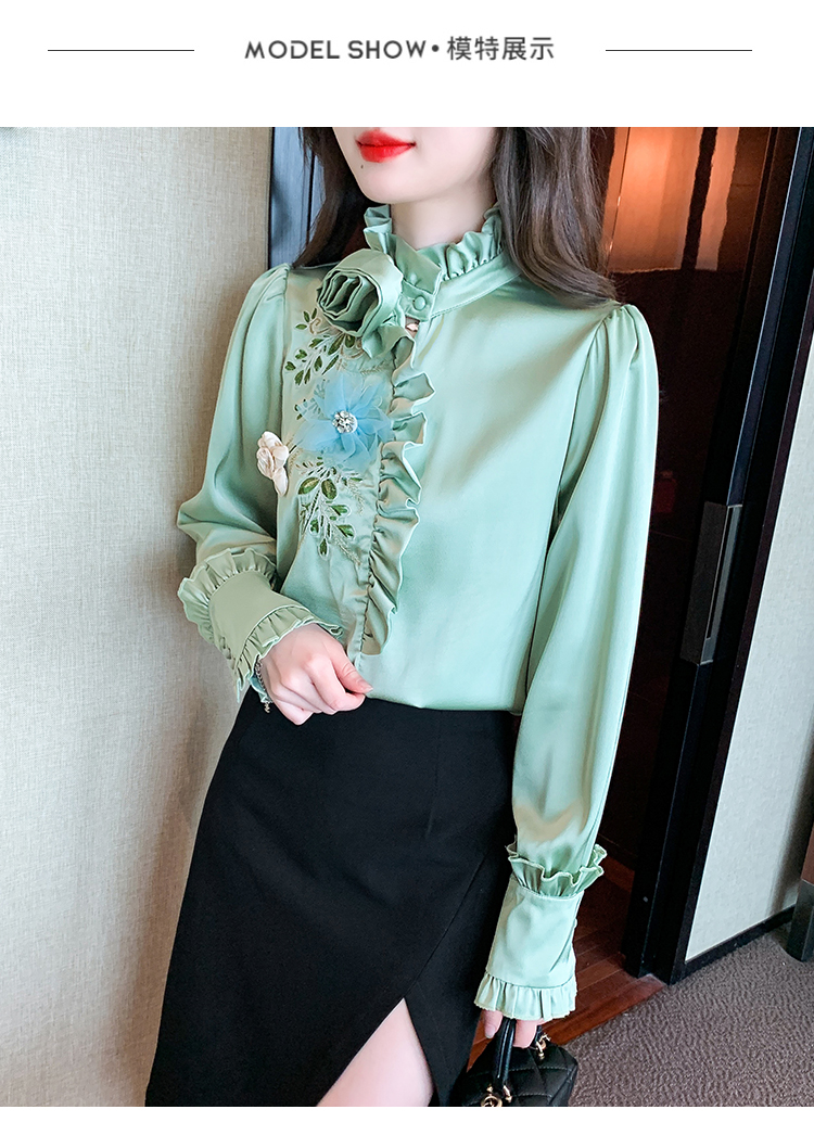 RM33922#新款气质上衣潮法式重工刺绣立体装饰蕾丝衬衣女
