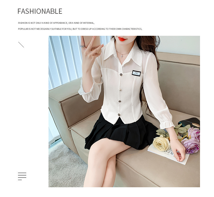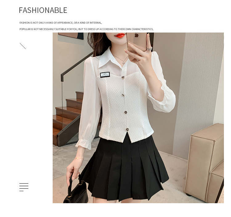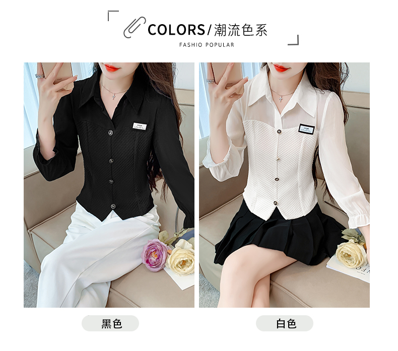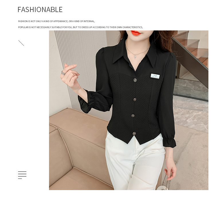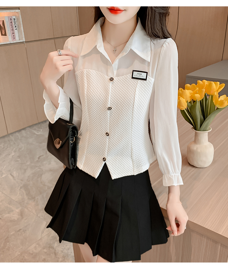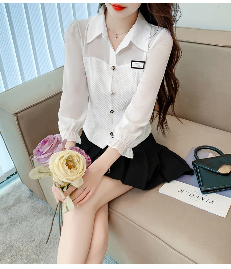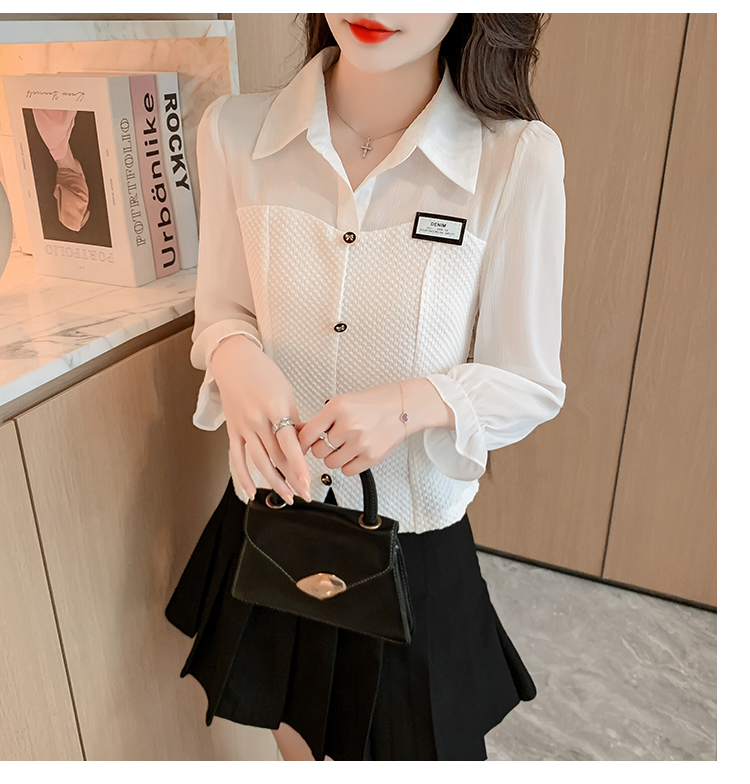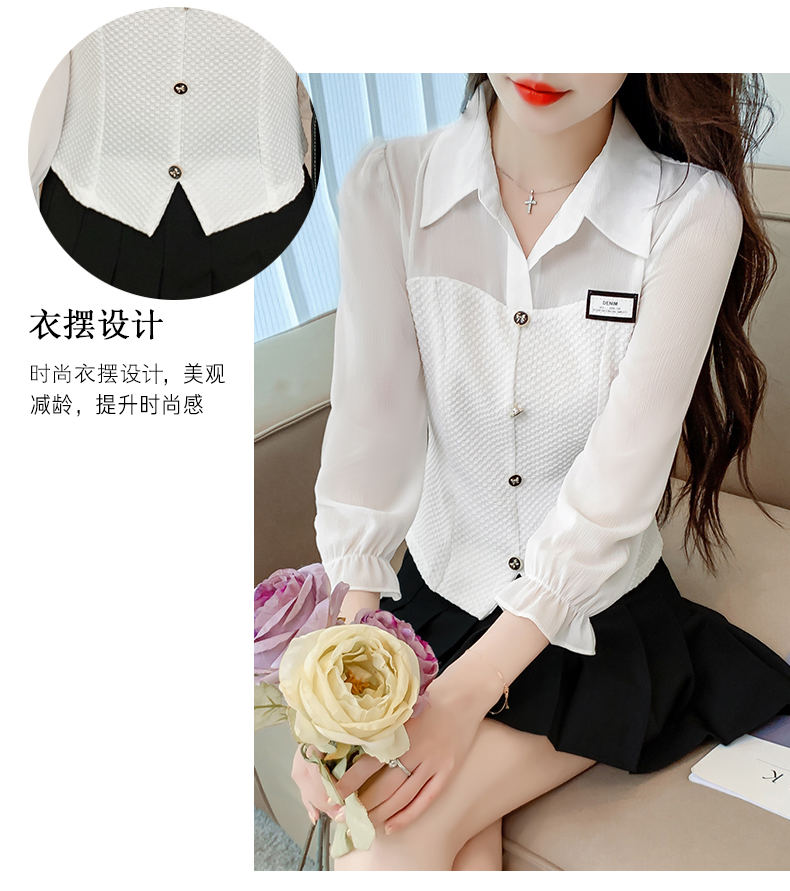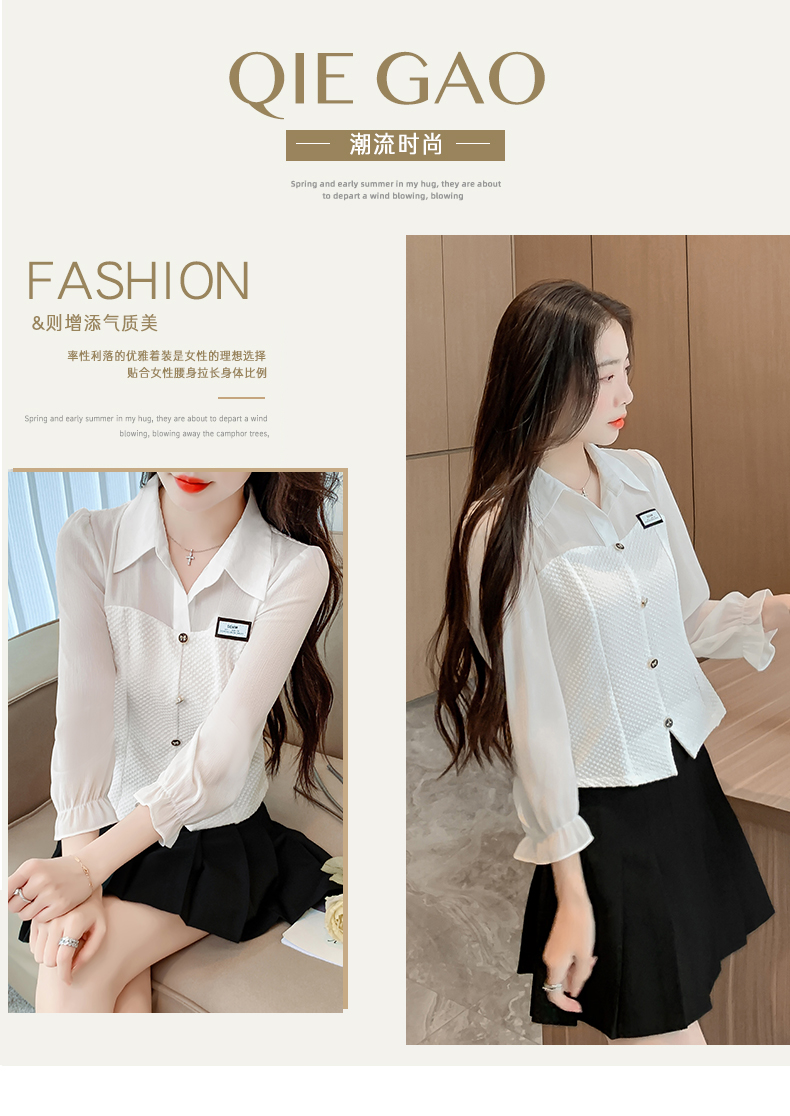 RM33934#新款雪纺拼接poIo衬衫领2024春季高级感时尚气质雪纺上衣