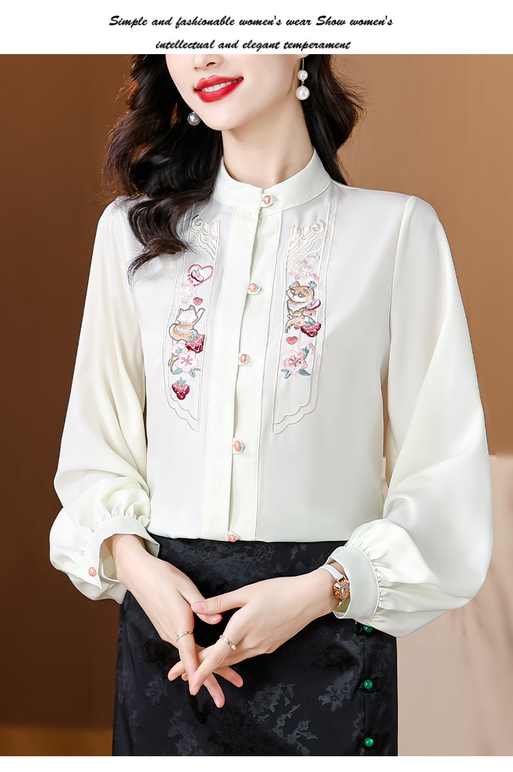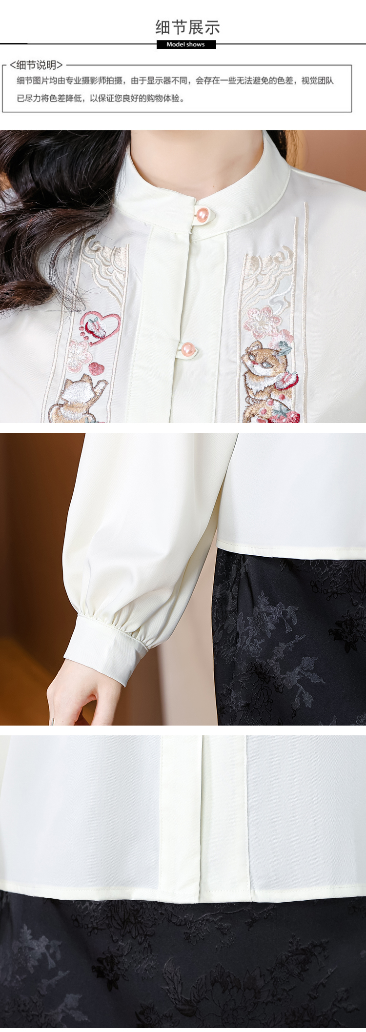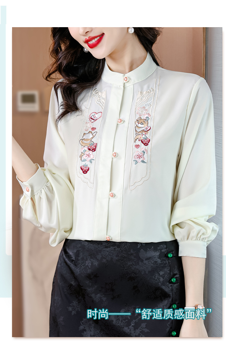 RM33978#新中式刺绣盘扣长袖衬衫女春2024春季新款高级感女士上衣洋气衬衣