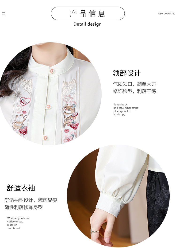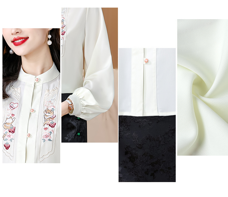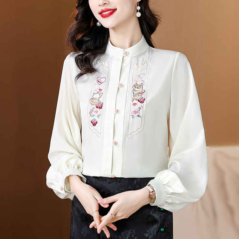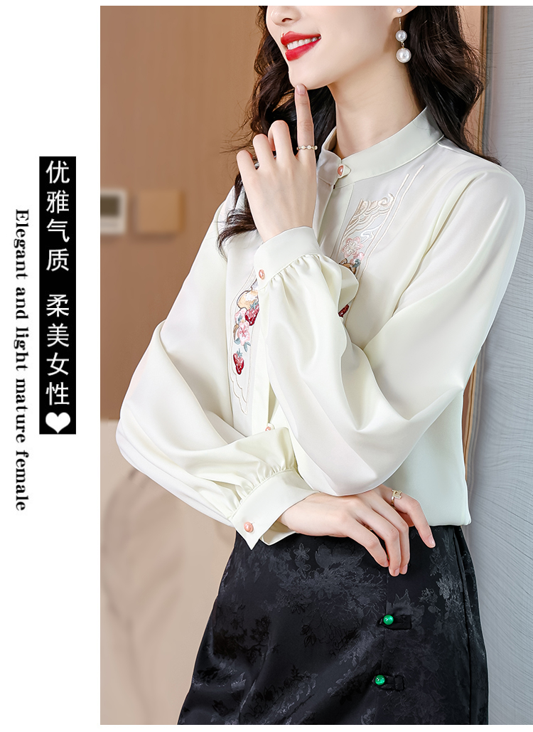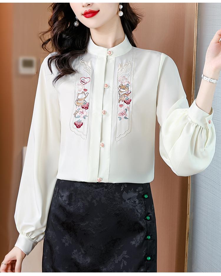 RM33978#新中式刺绣盘扣长袖衬衫女春2024春季新款高级感女士上衣洋气衬衣