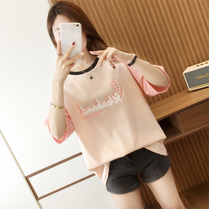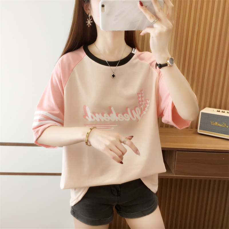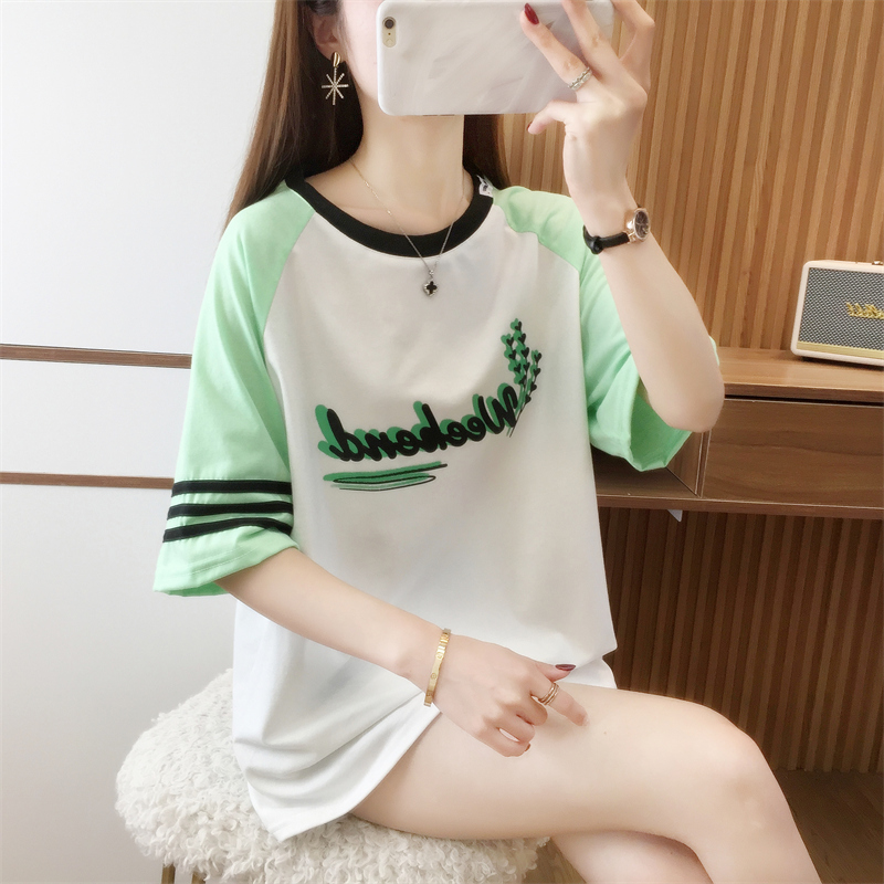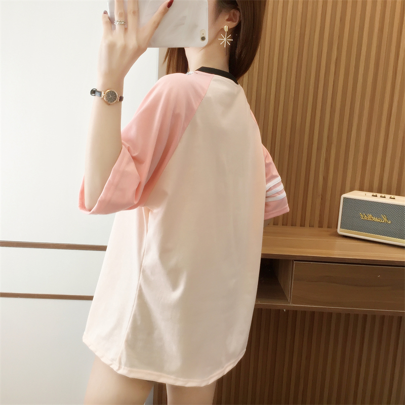 RM33984#夏季新款拼接设计感短袖T恤女休闲宽松型学院风大码女装