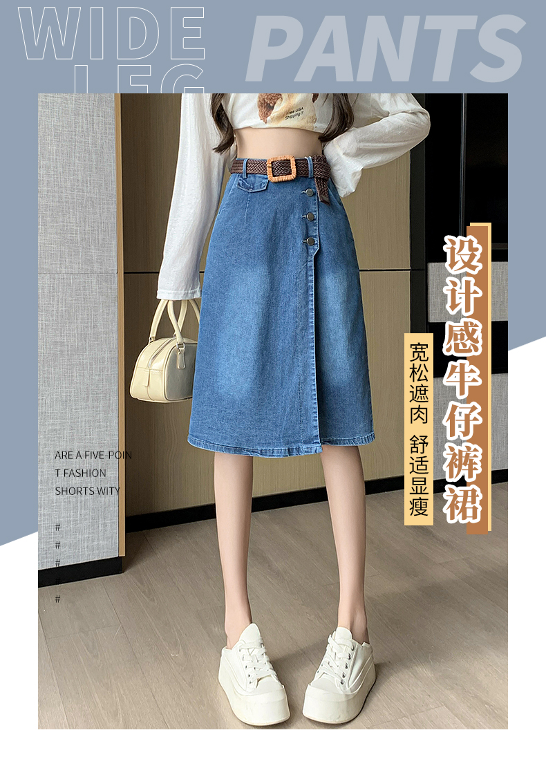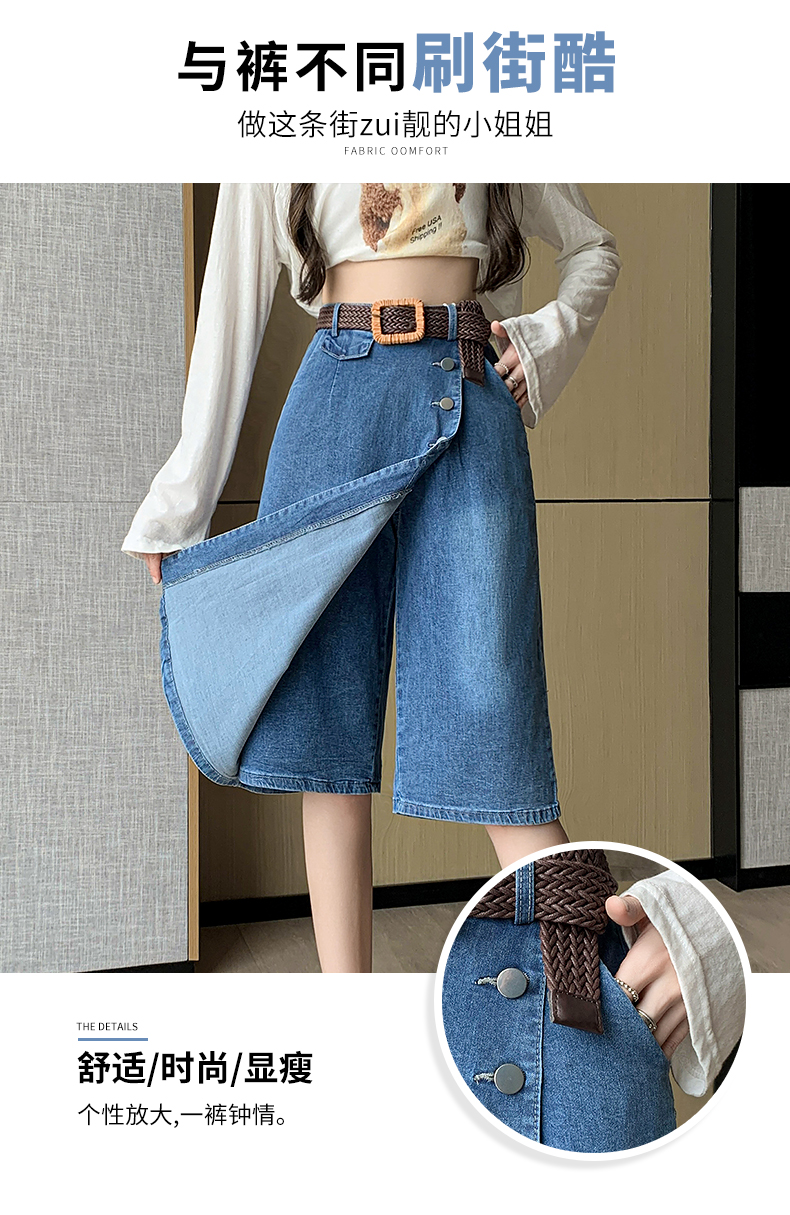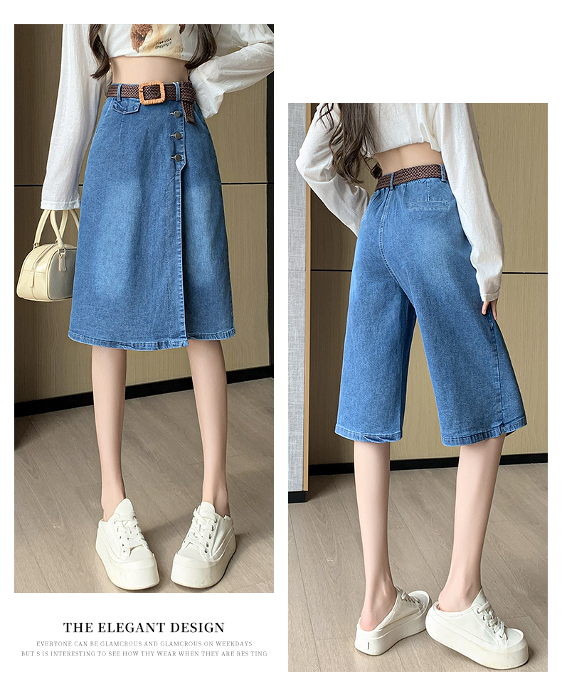 RM33986#牛仔裙半身薄款裙裤女七分裤2024年新款裤裙高腰宽松阔腿裤