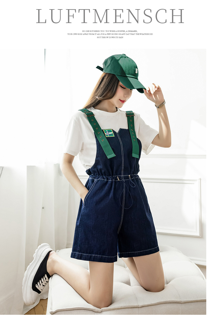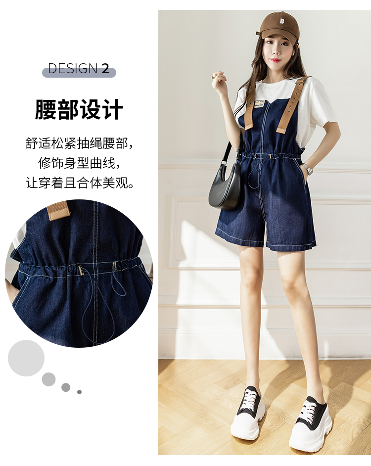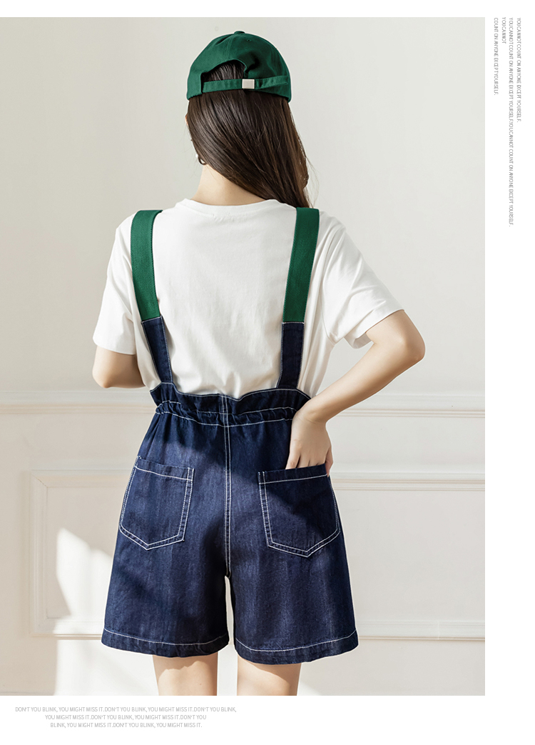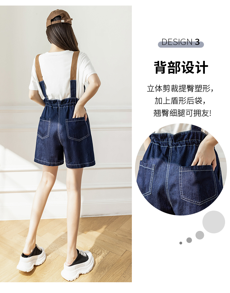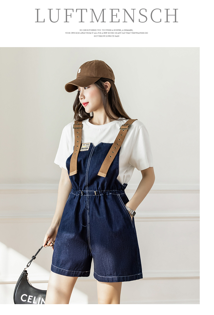 RM33988#复古港味背带牛仔短裤女2024春夏新款宽松时尚收腰休闲阔腿