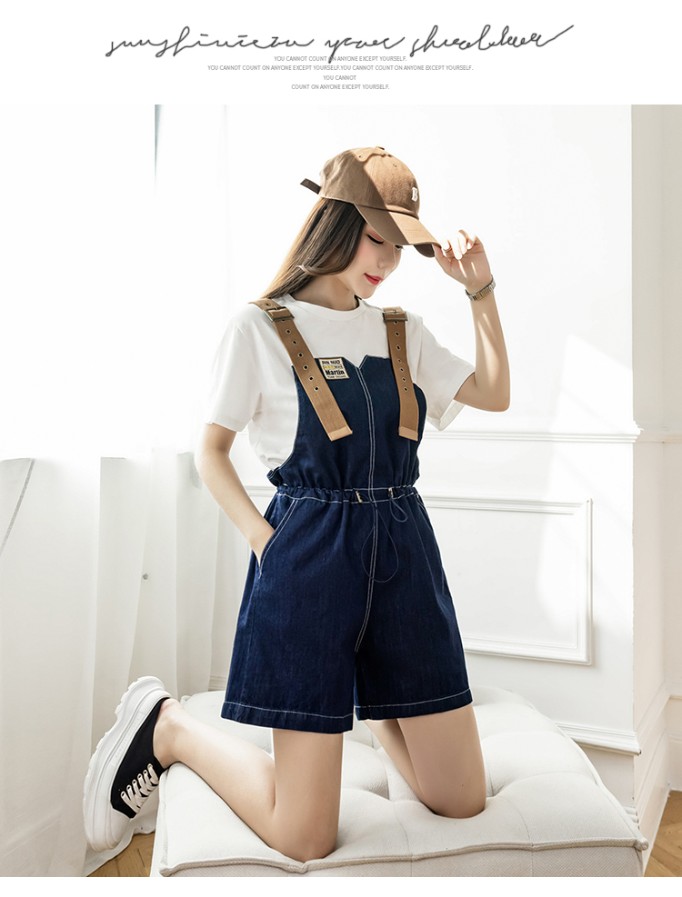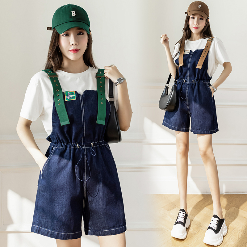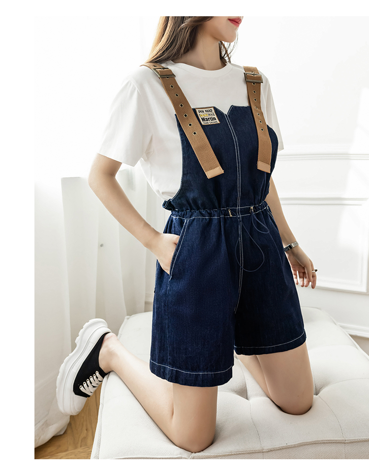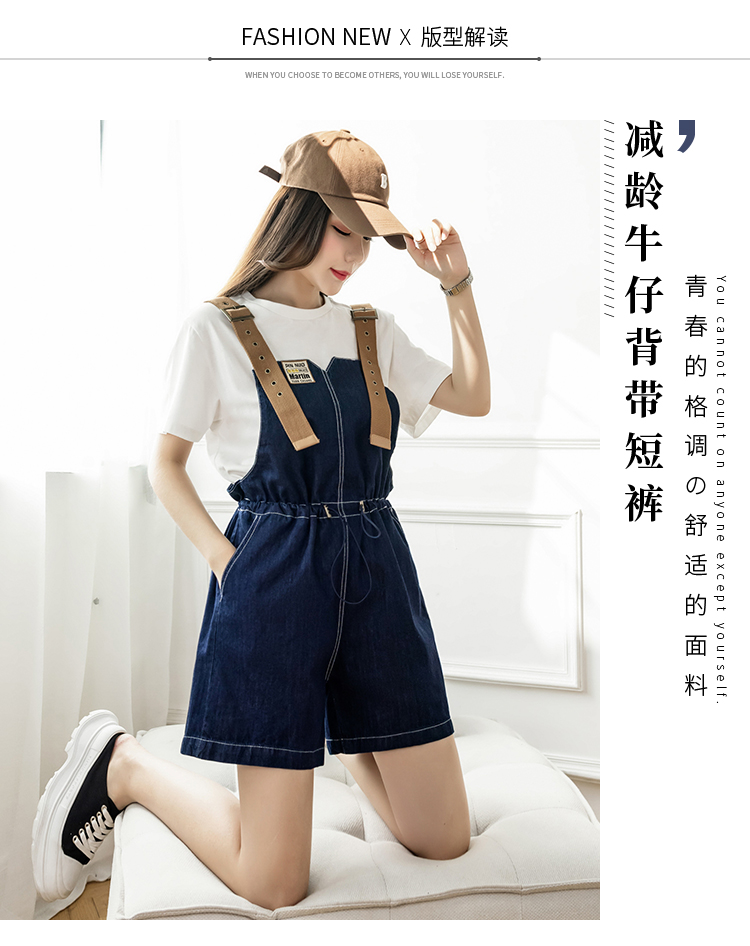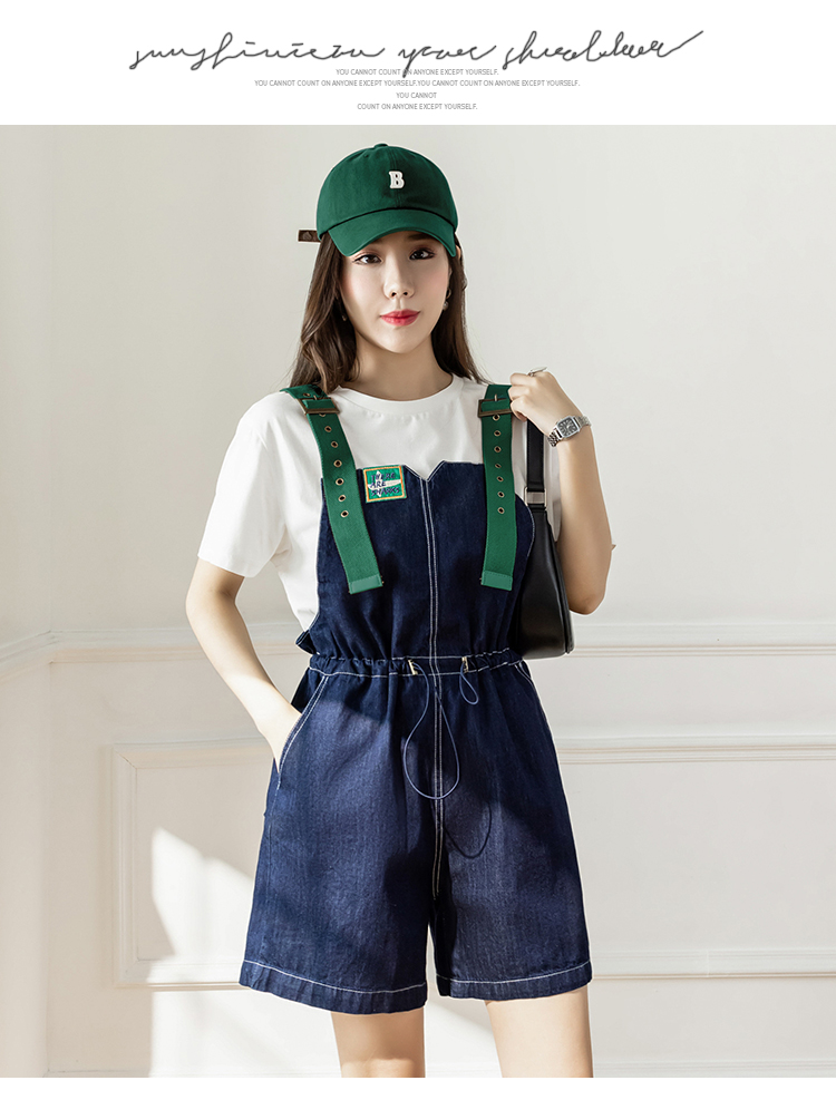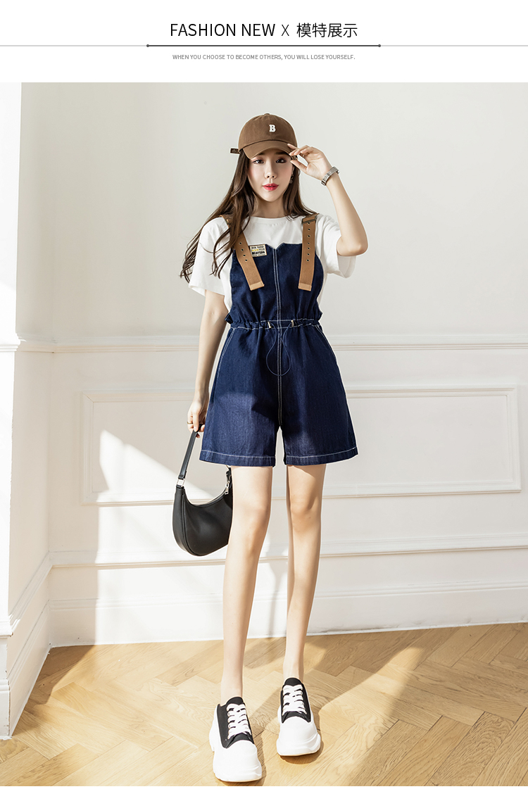 RM33988#复古港味背带牛仔短裤女2024春夏新款宽松时尚收腰休闲阔腿
