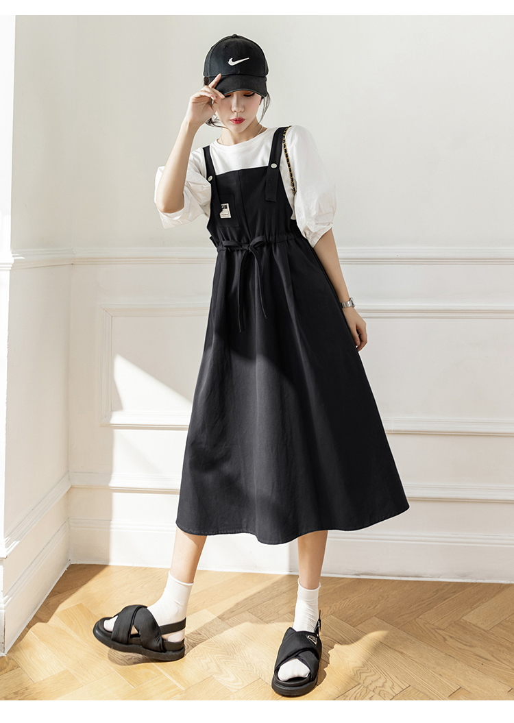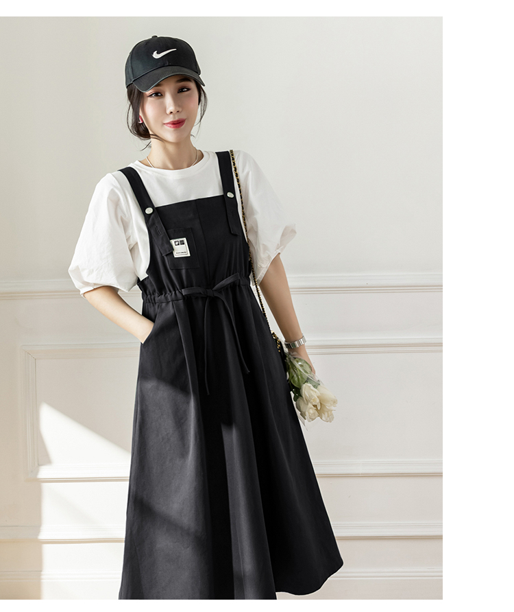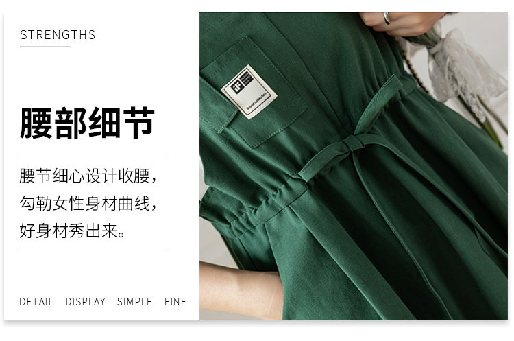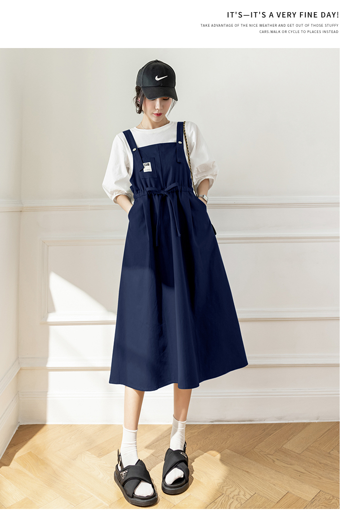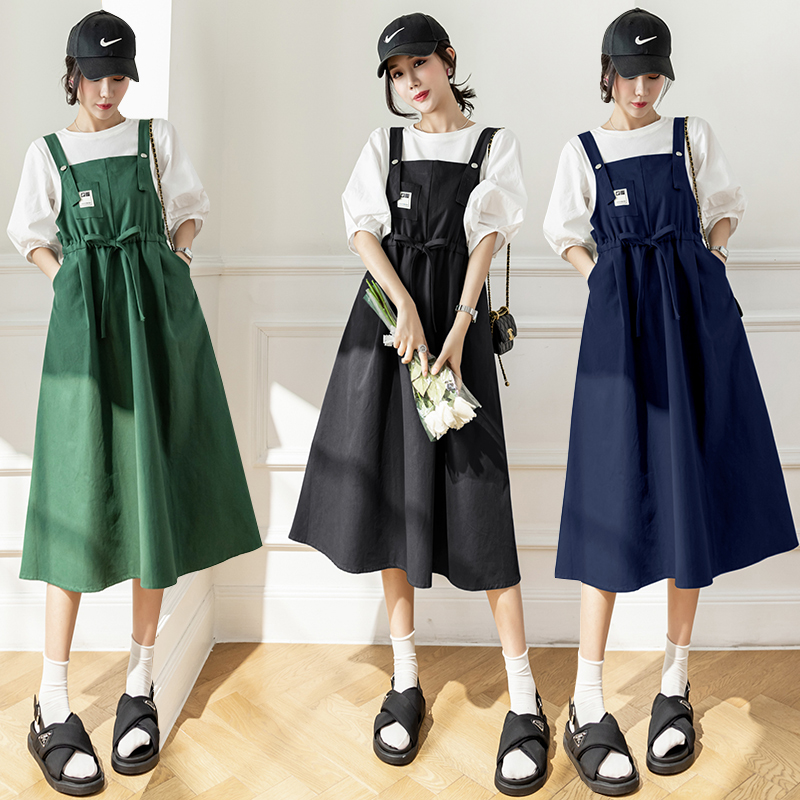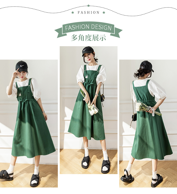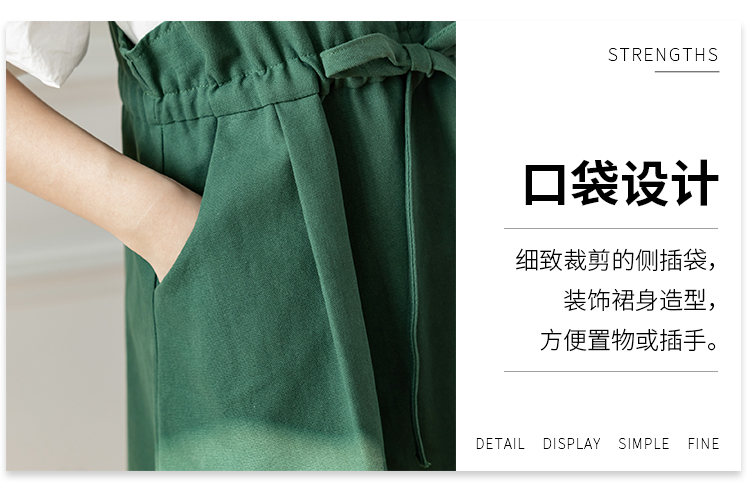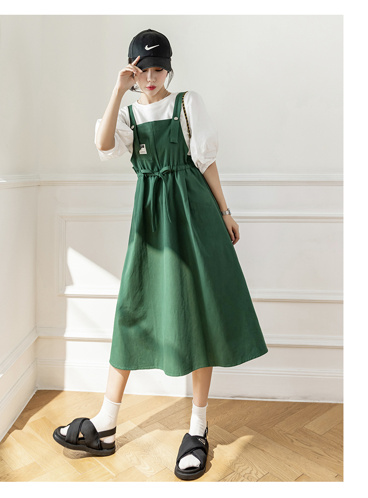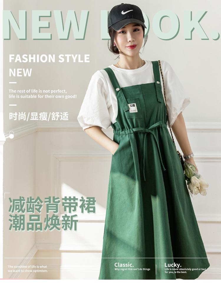 RM33989#绿色森系复古背带裙春夏女2024新款韩版宽松收腰显瘦牛仔工装