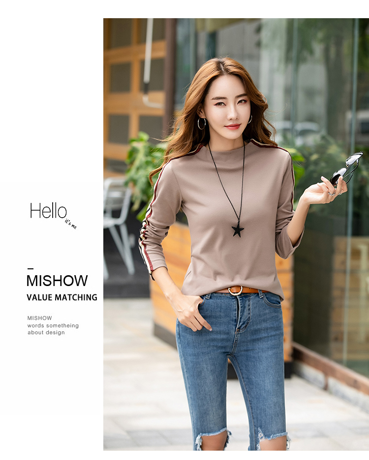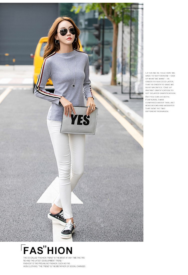 RM33994#百搭秋冬季半高领修身长袖体恤上衣打底衫T恤