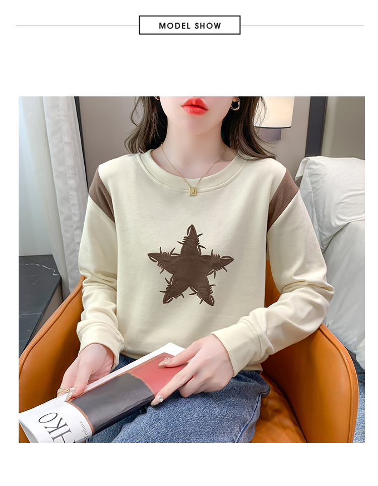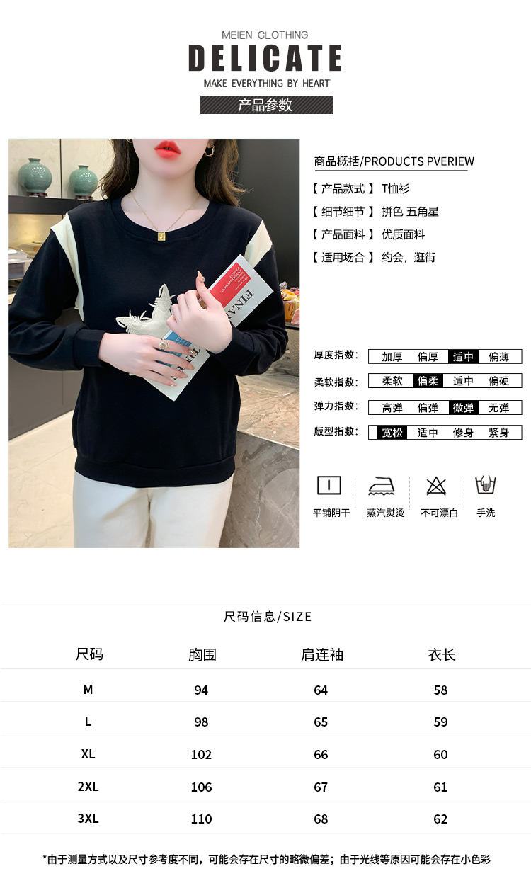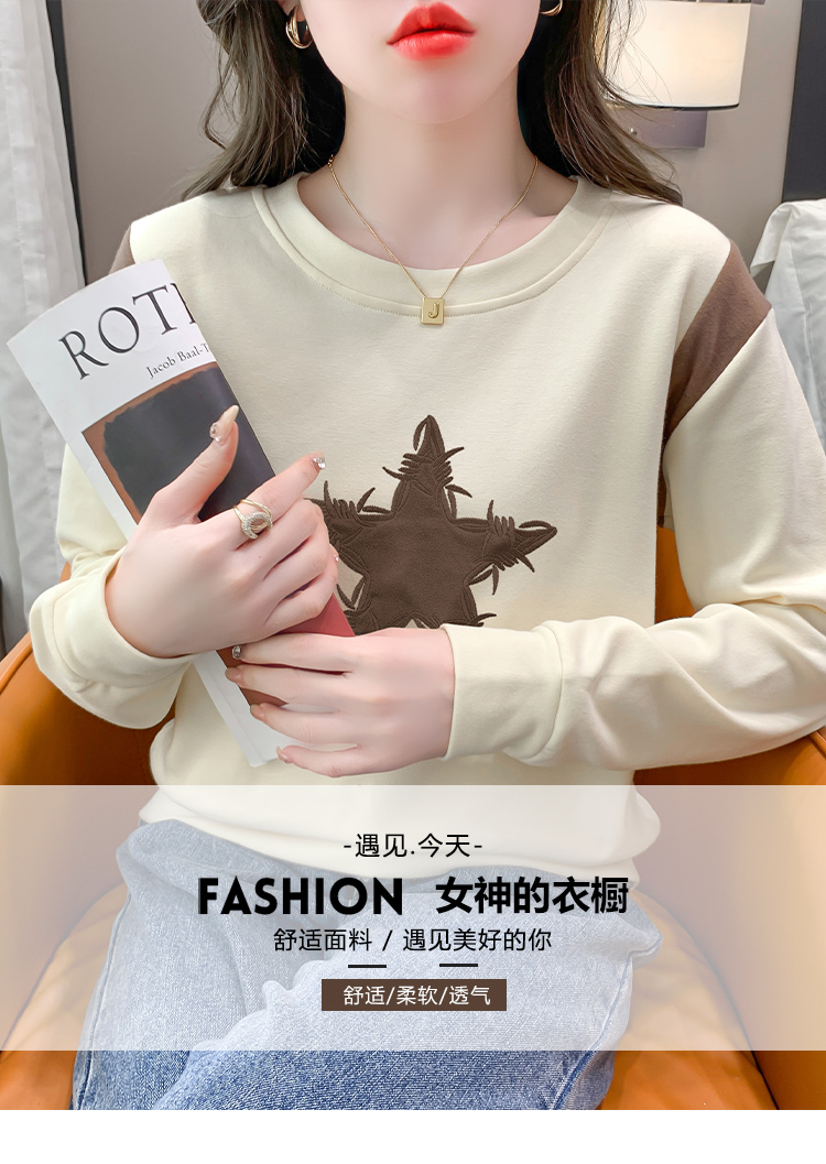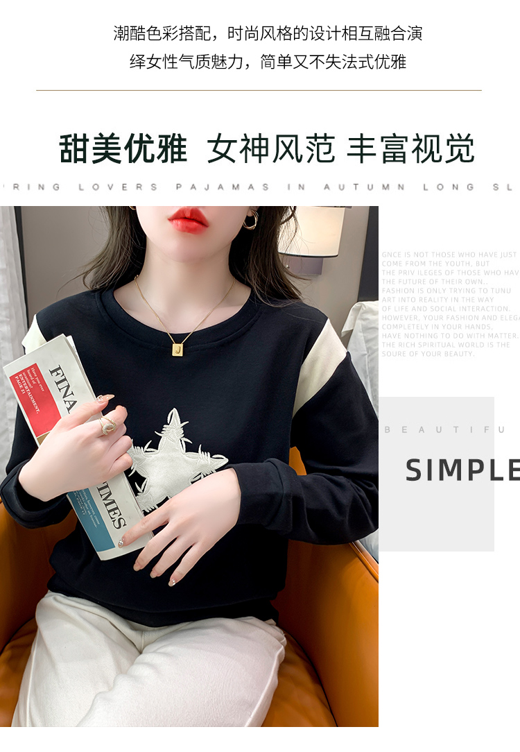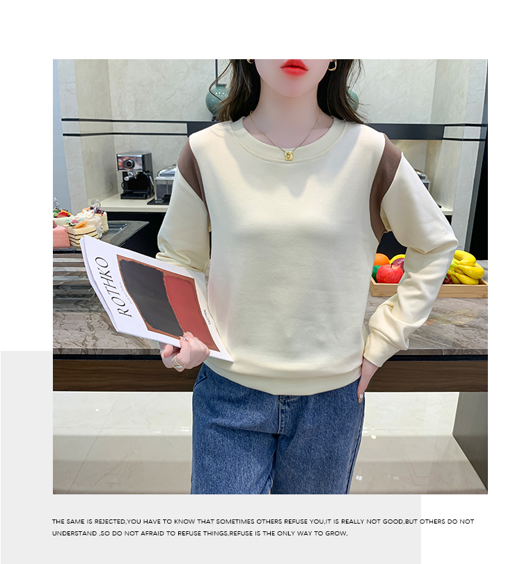RM33996#新款百搭休闲圆领套头拼接长袖女装宽松时尚上衣