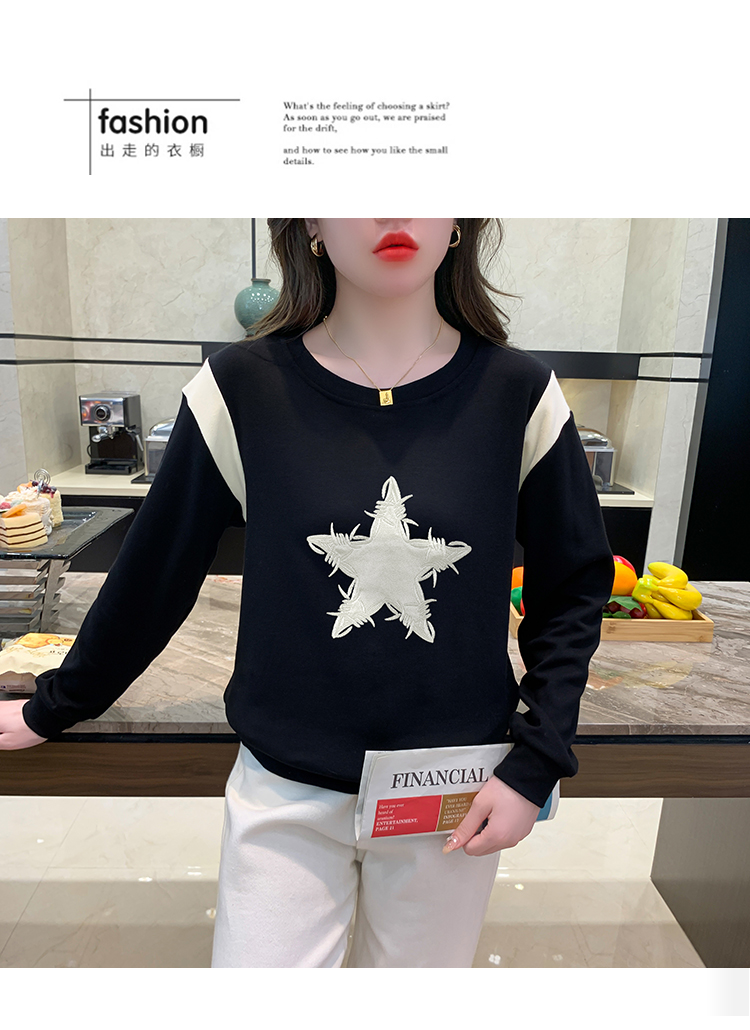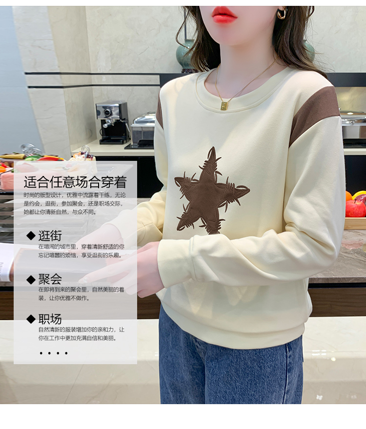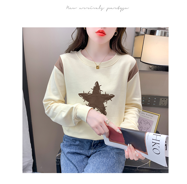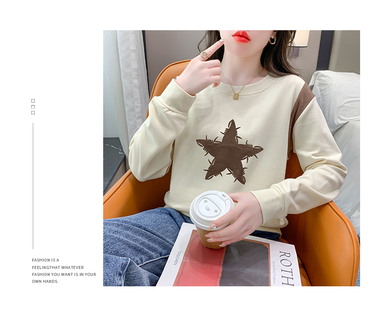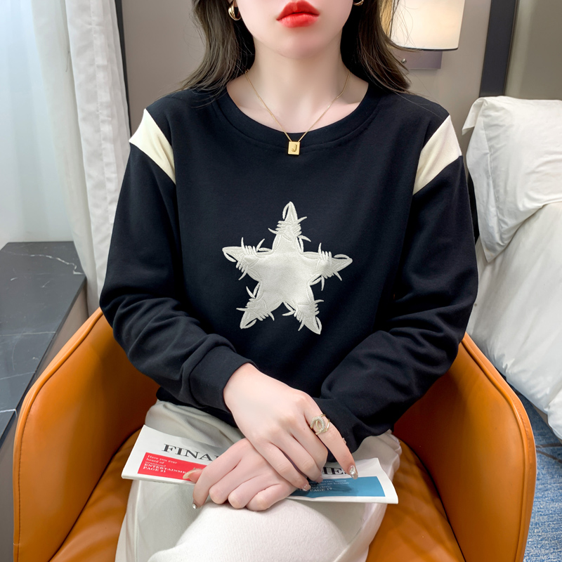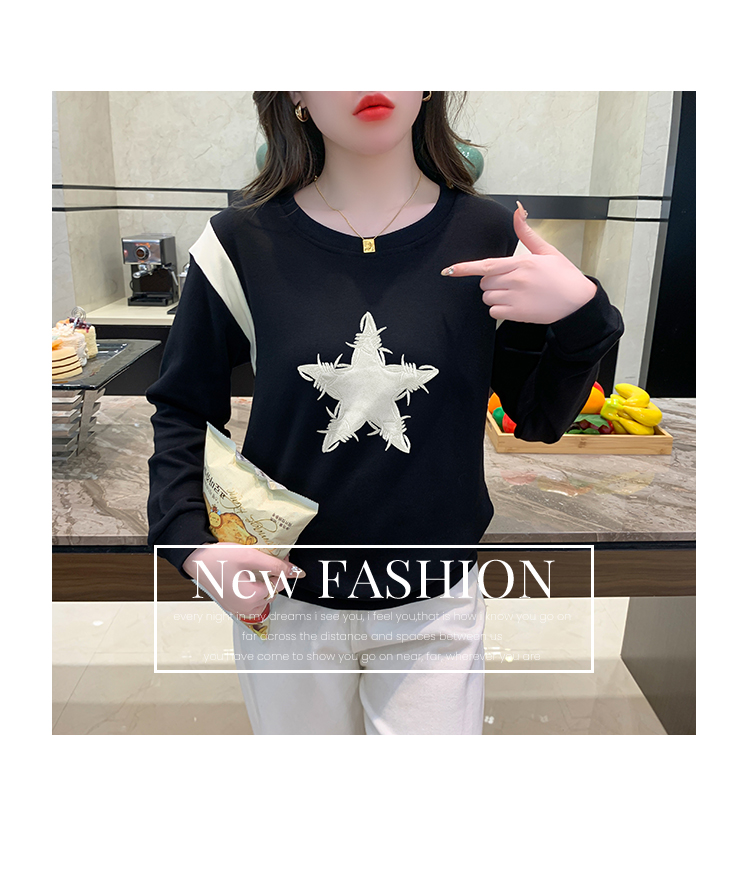 RM33996#新款百搭休闲圆领套头拼接长袖女装宽松时尚上衣