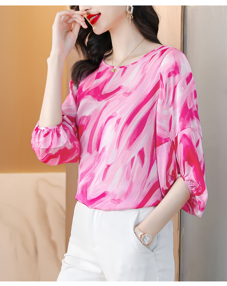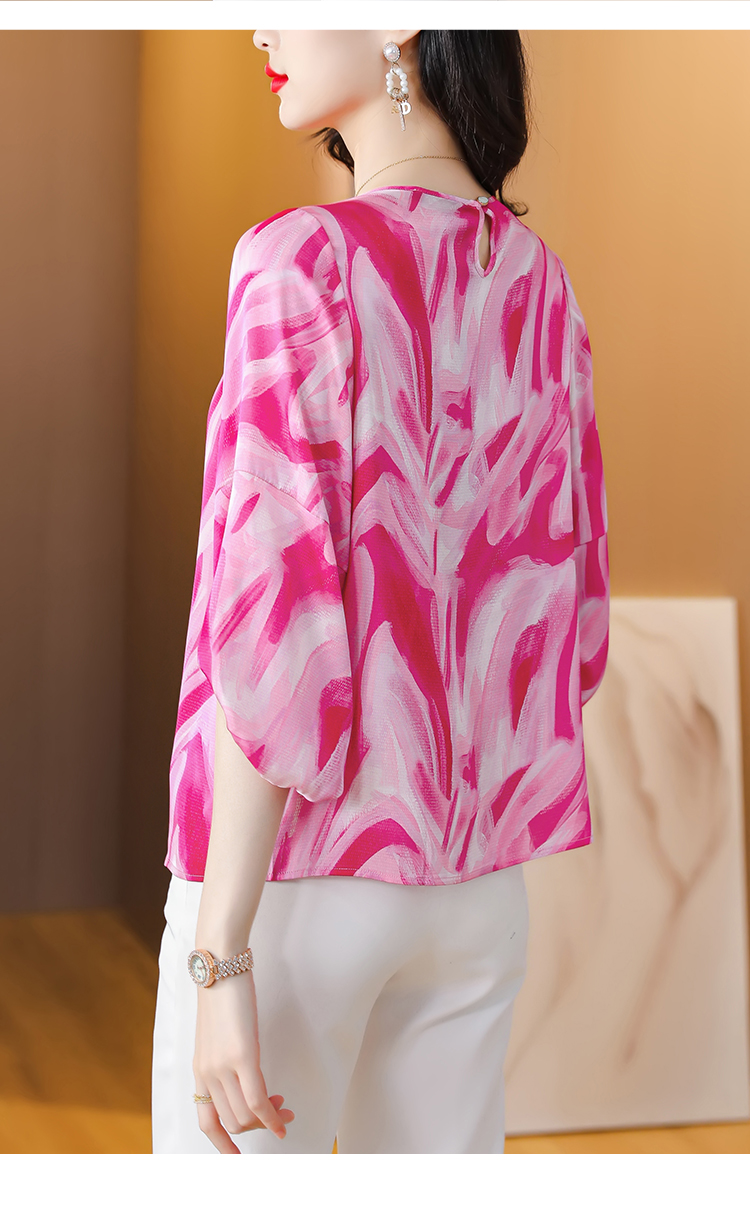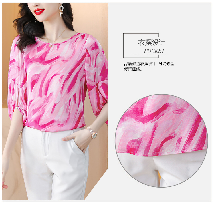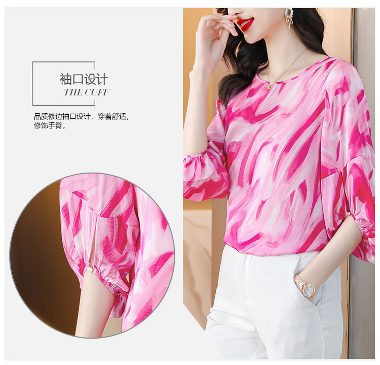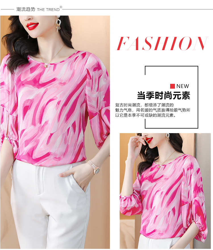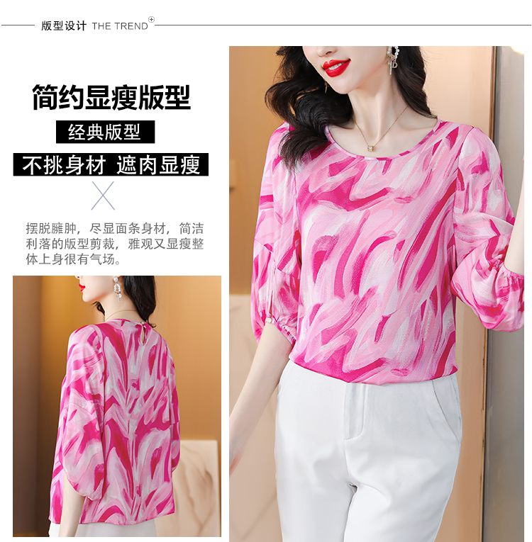 RM34021#真丝上衣 新款气质名媛法式小衫高端大牌桑蚕丝印花T恤