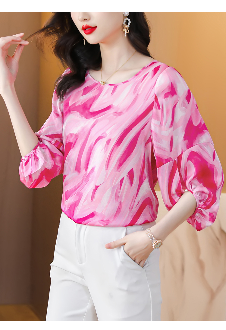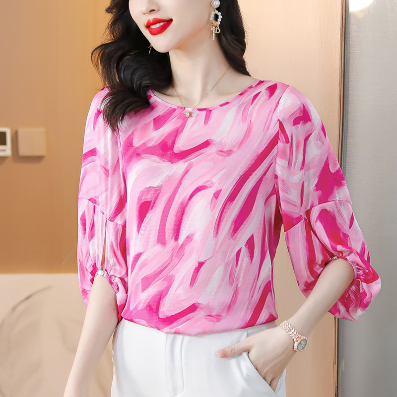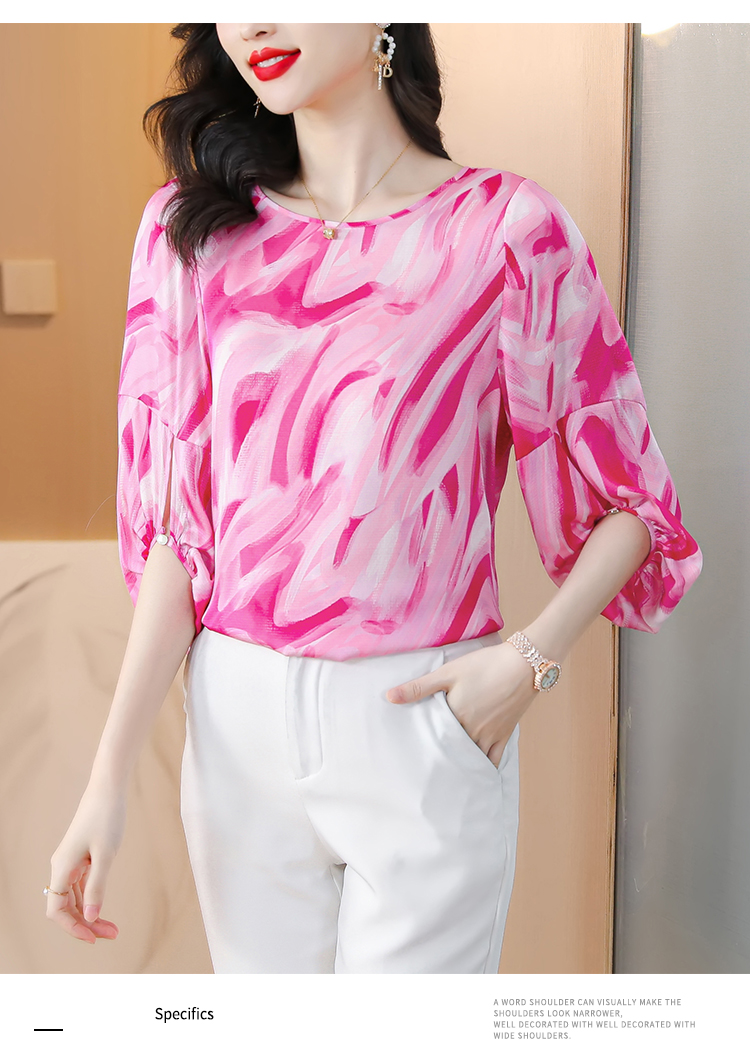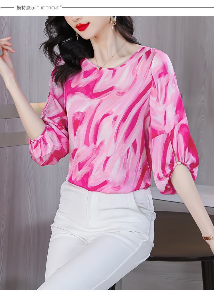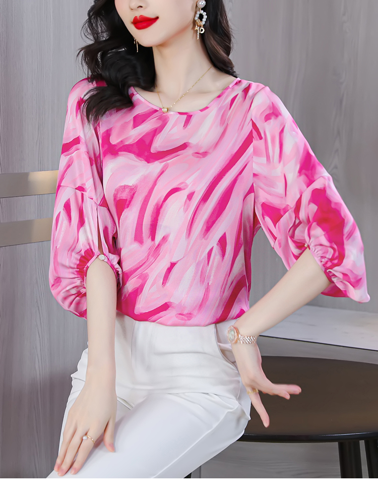 RM34021#真丝上衣 新款气质名媛法式小衫高端大牌桑蚕丝印花T恤