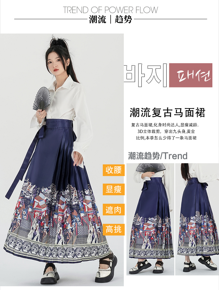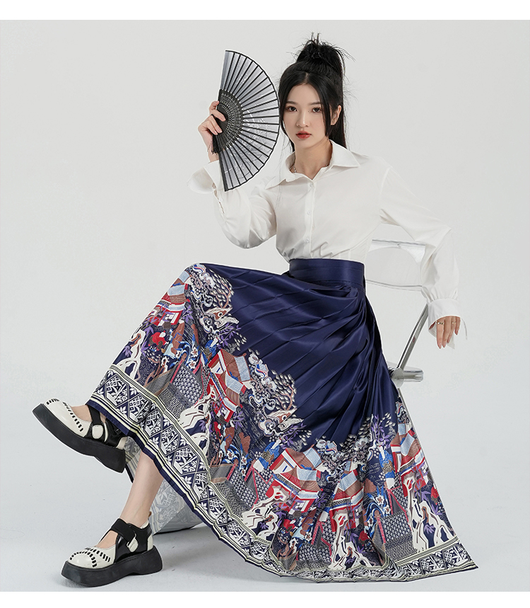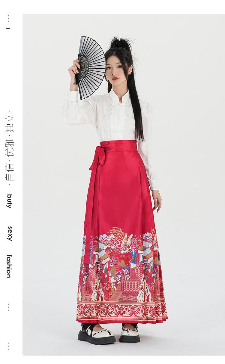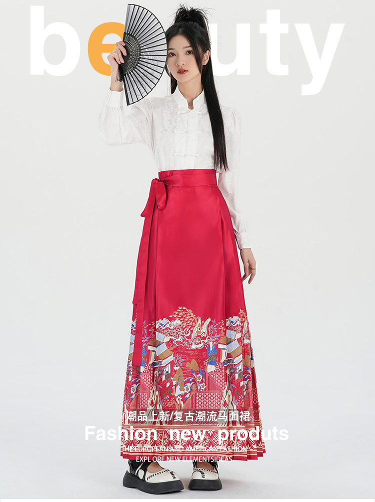 RM34023#新中式一片式超大摆明制马面裙女春夏提花半身裙国风通勤长裙