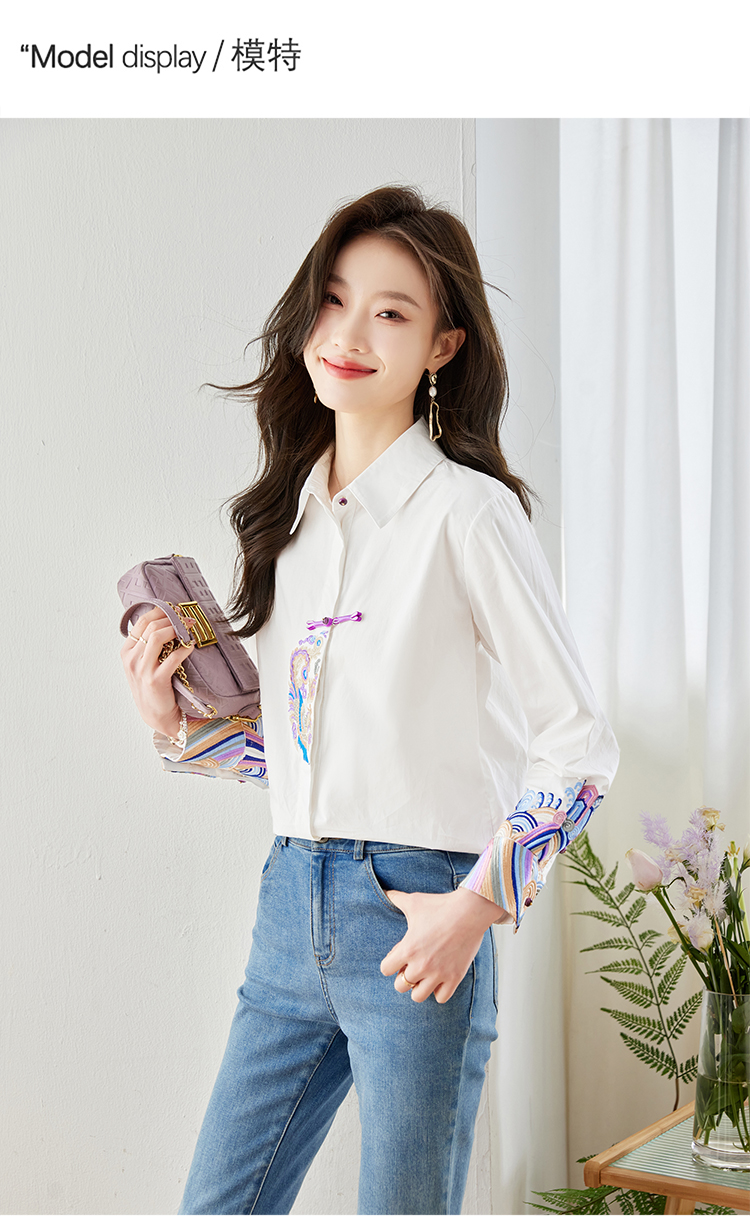 RM34086#小众设计感重工刺绣纯棉衬衫女百搭显瘦国风新中式上衣