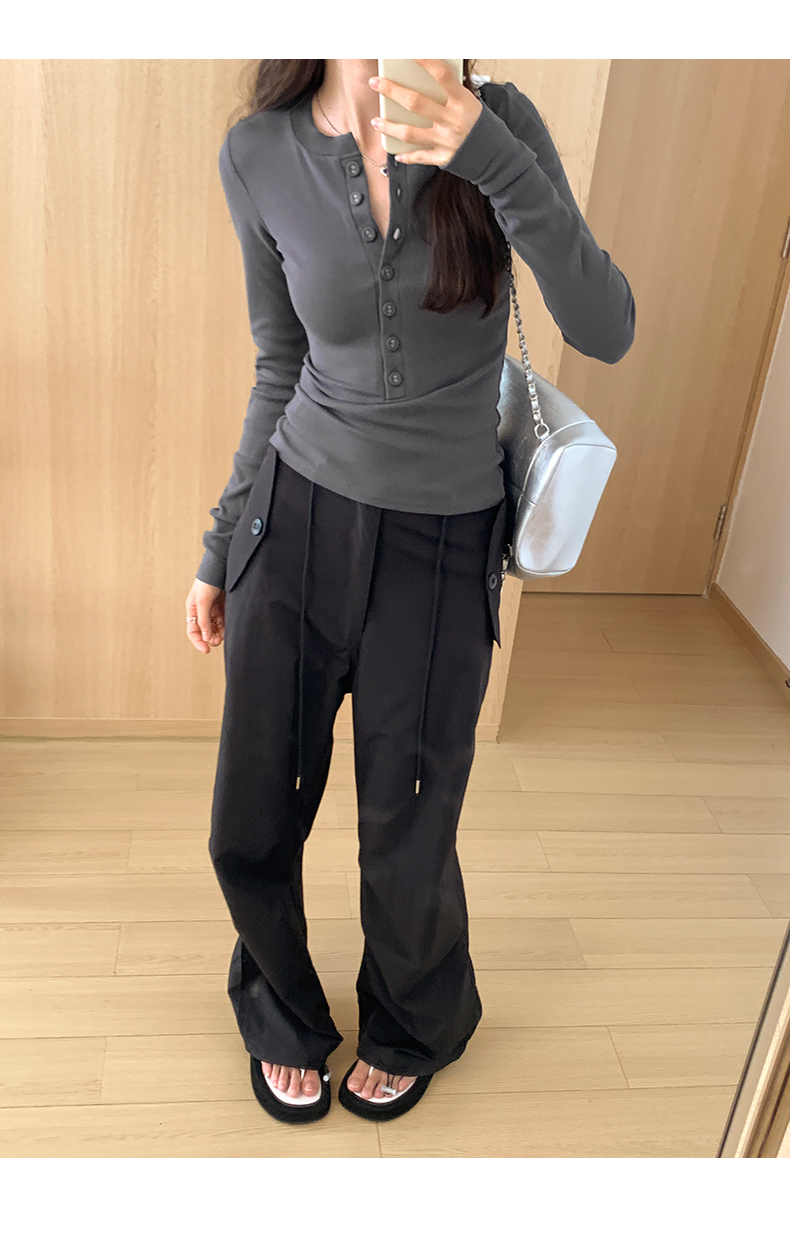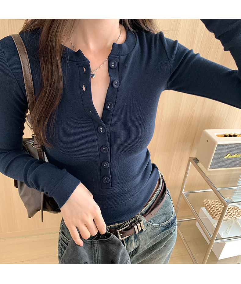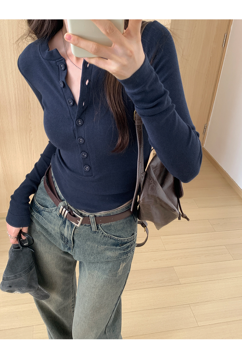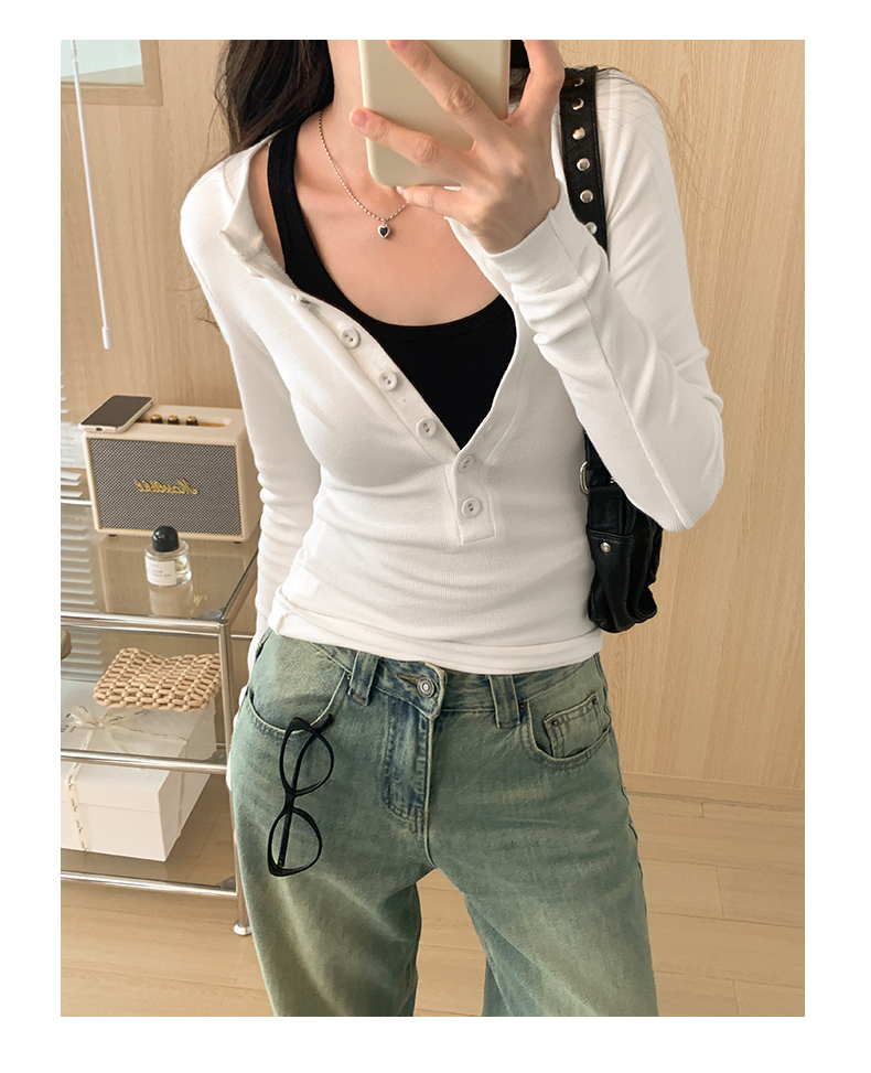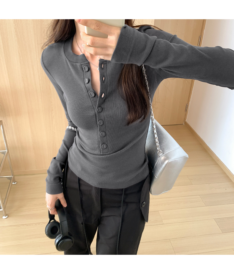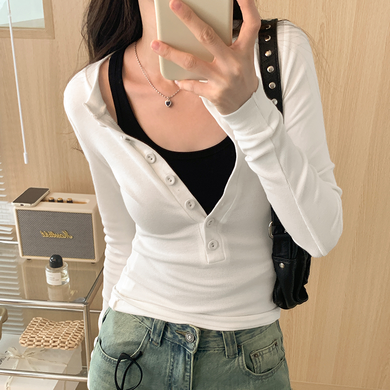PF02#白色打底衫女 新款螺纹百搭上衣设计感小众长袖t恤