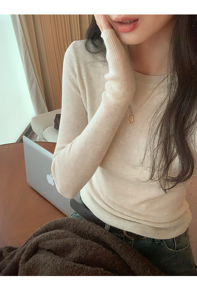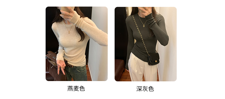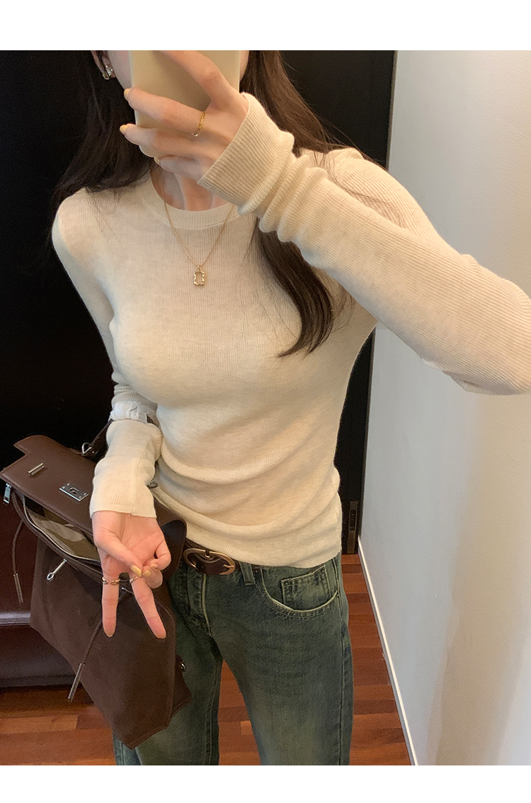 PF03#图纯色修身显瘦套头打底针织衫女 新款软糯长袖上衣