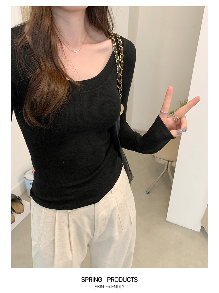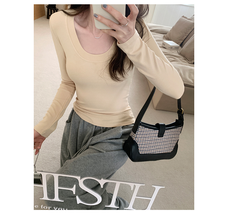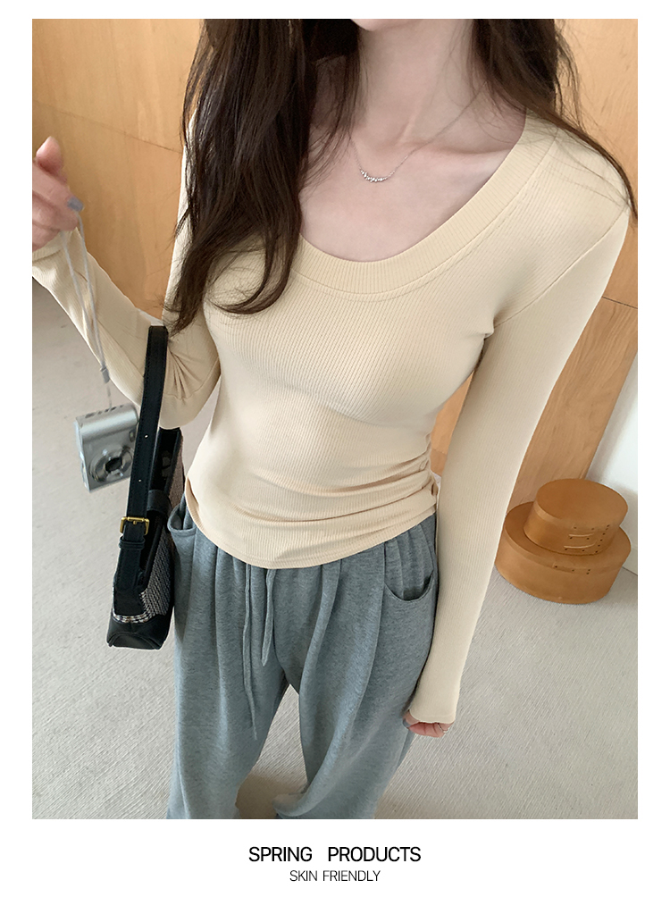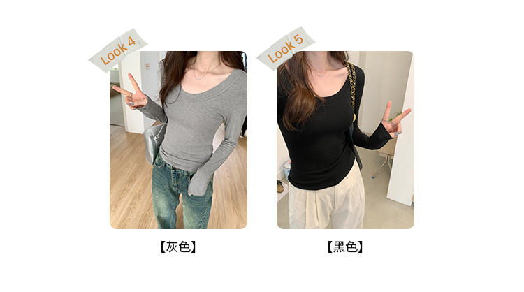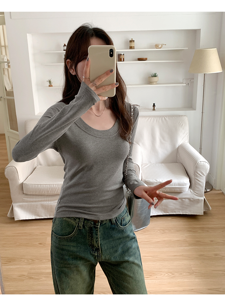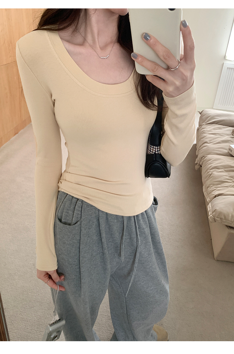 PF07#U领纯色抓毛加绒打底衫女 新款针织衫修身内搭上衣