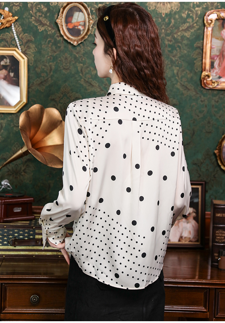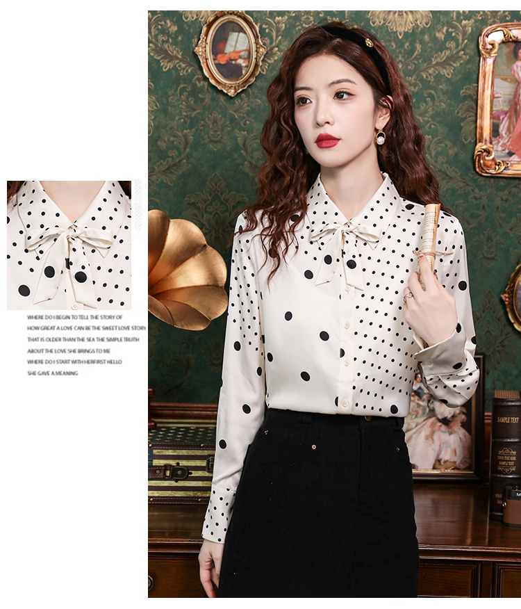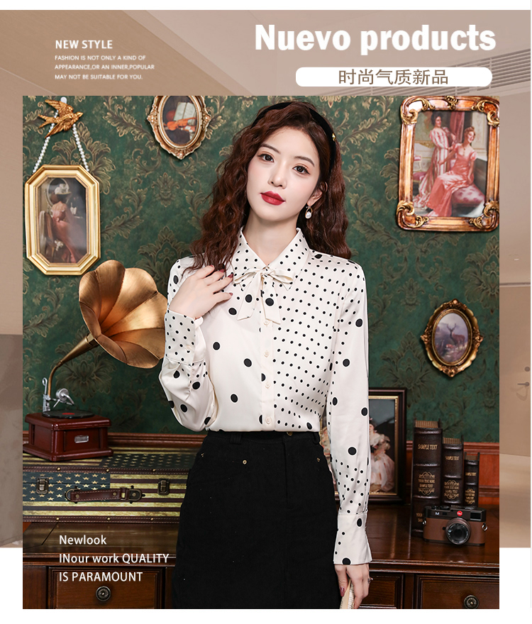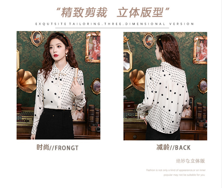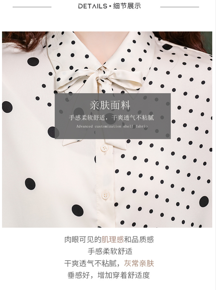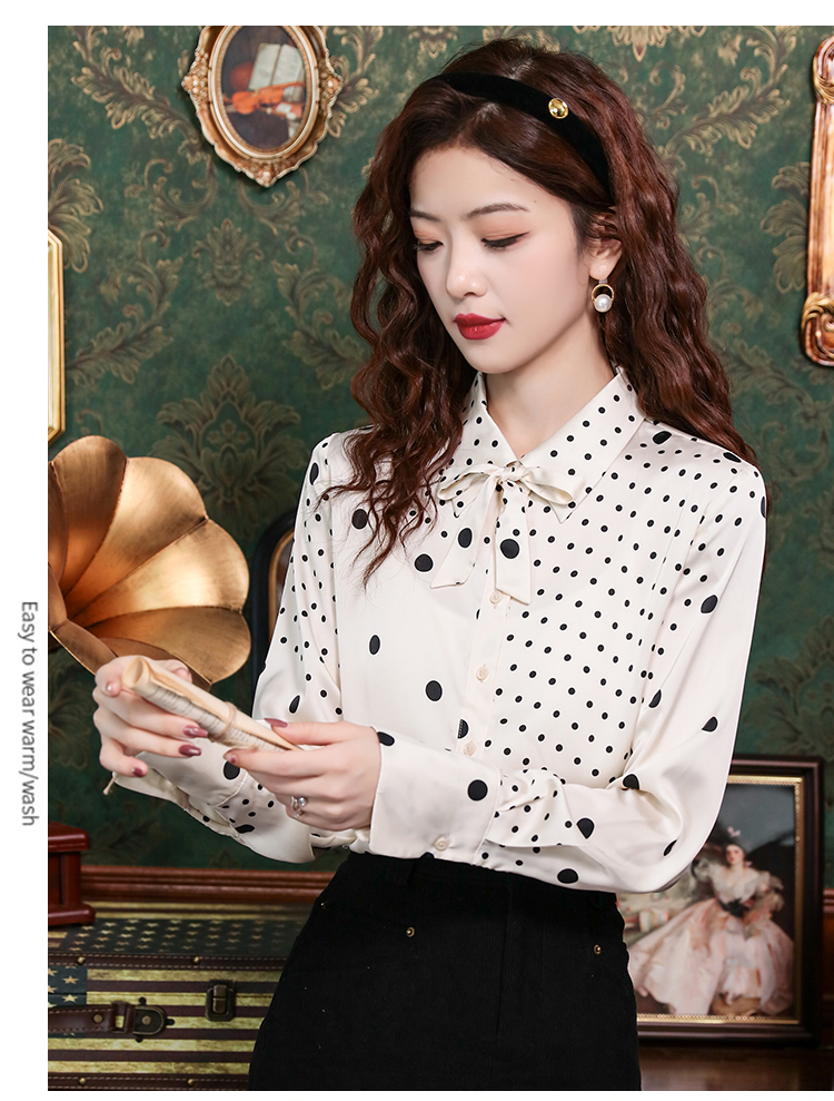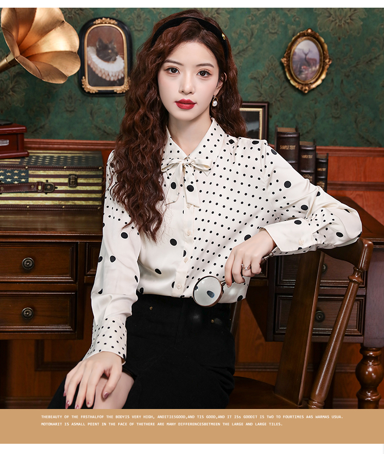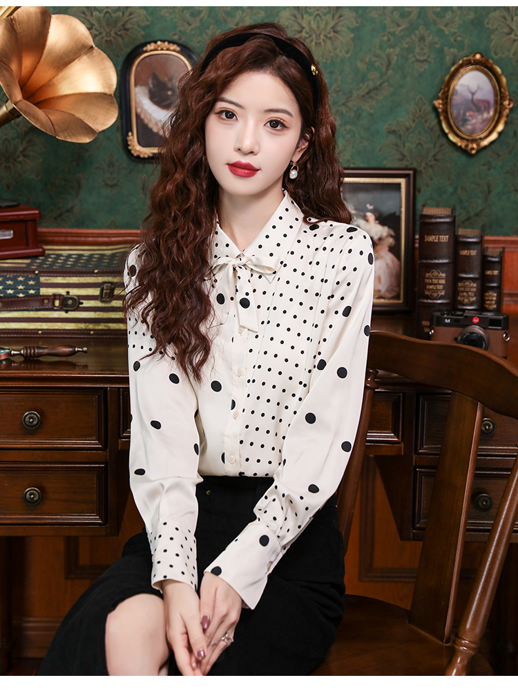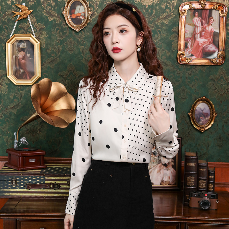 PF42#新款小众波普风真丝上衣法式波点飘带蝴蝶结衬衫女
