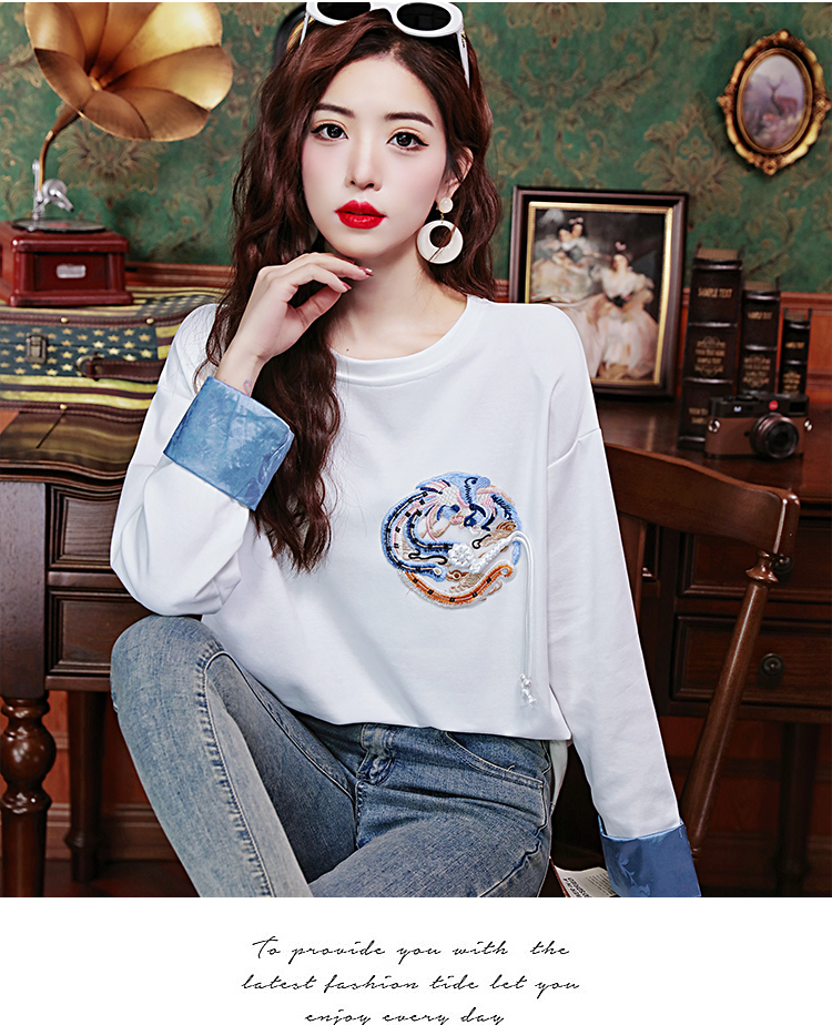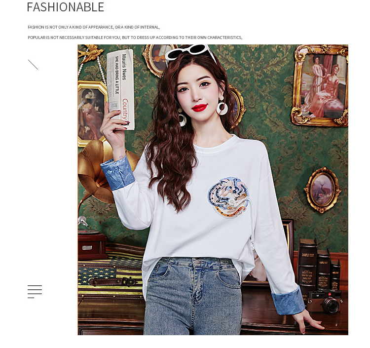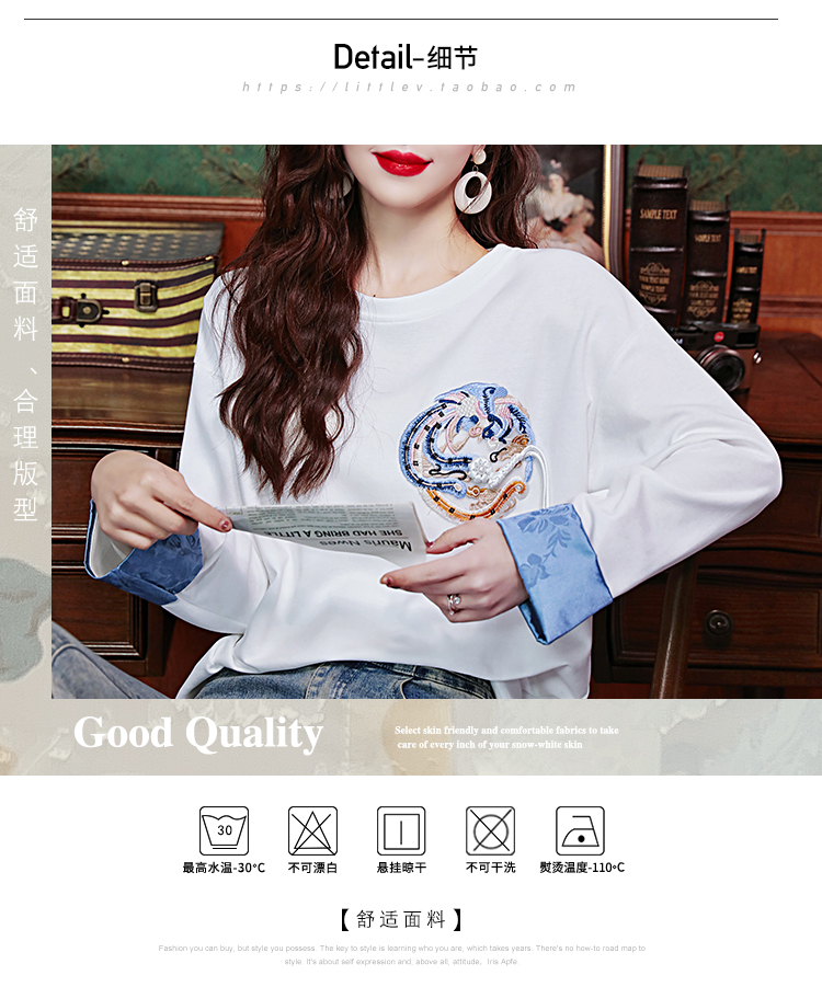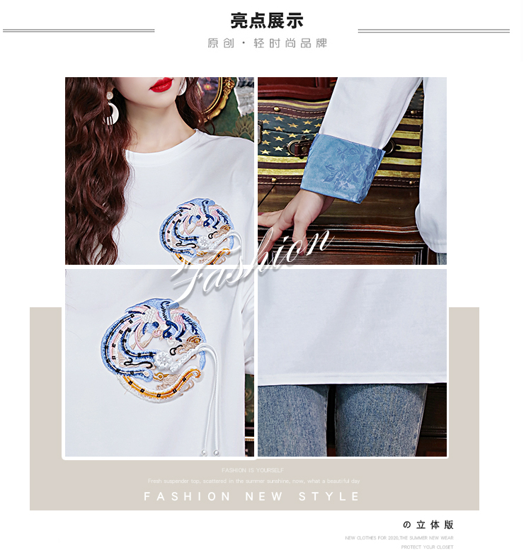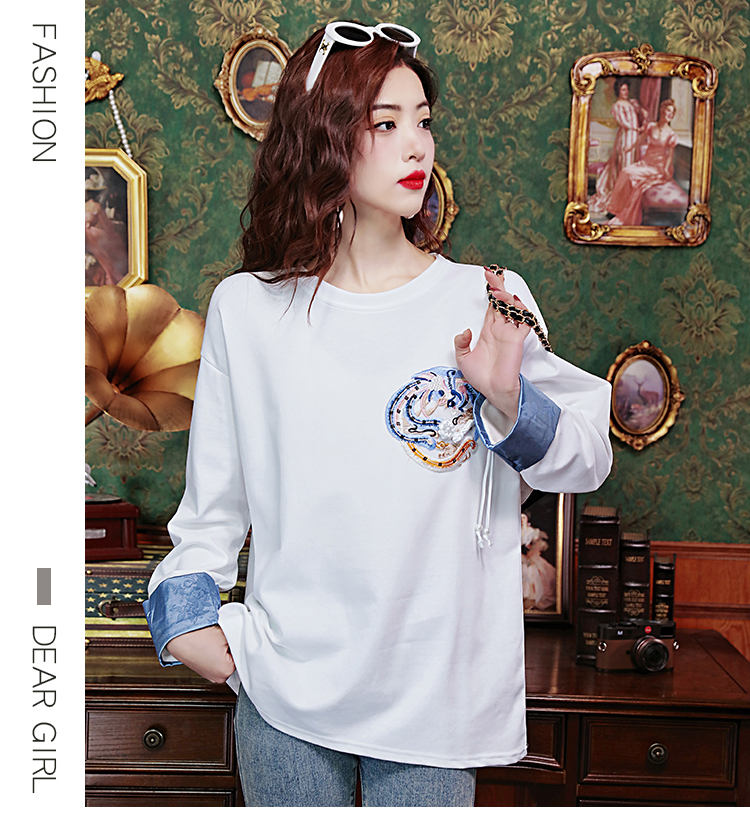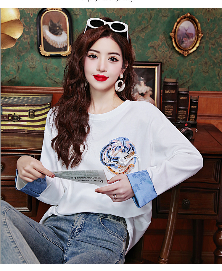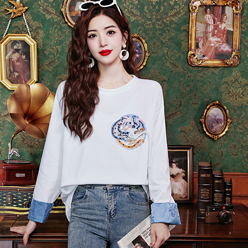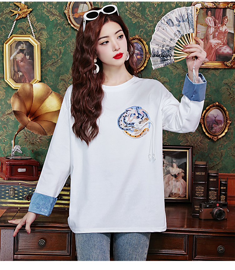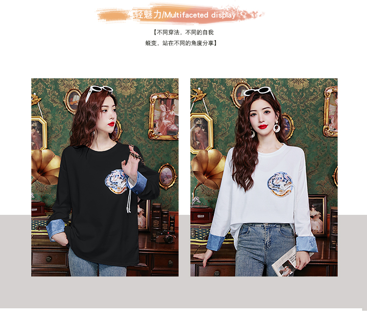 PF47#新中式国风T恤宽松女装新款长袖宽松型