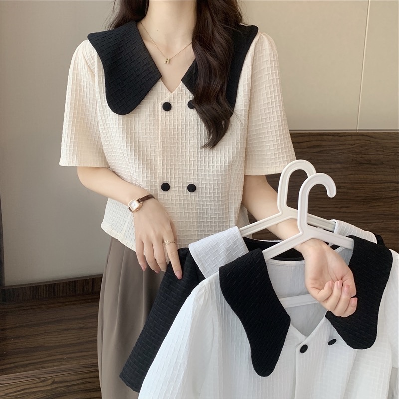PF56#夏装大码女装胖MM法式双排衬衫设计感小众上衣女M-4XL200斤