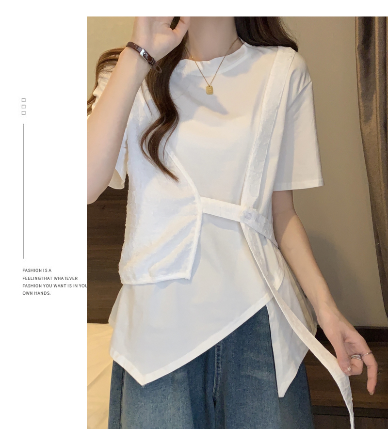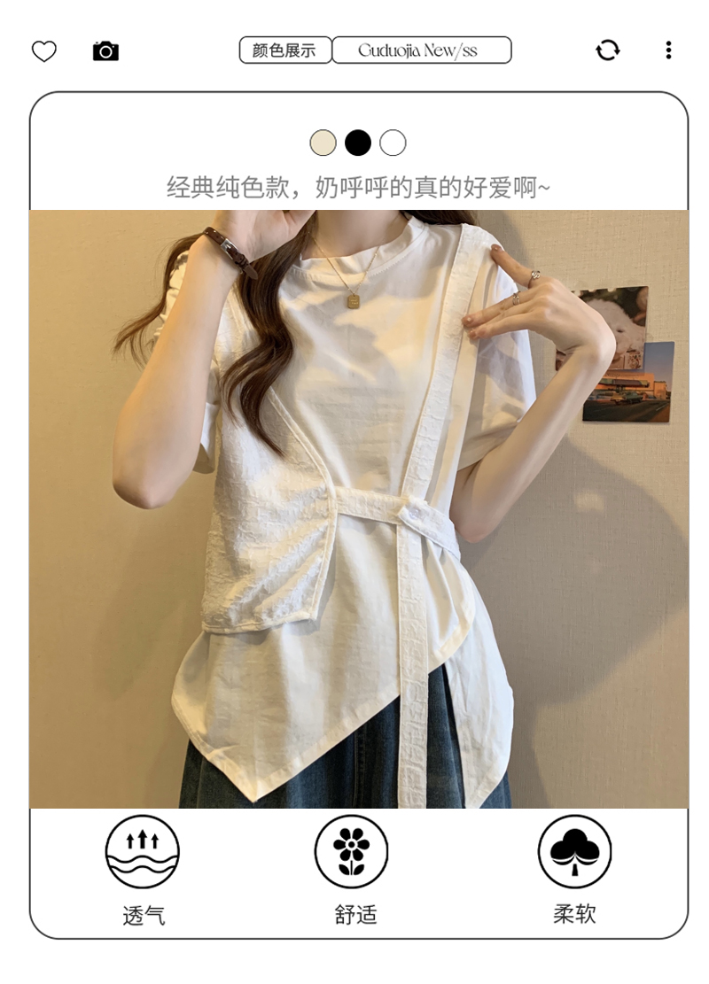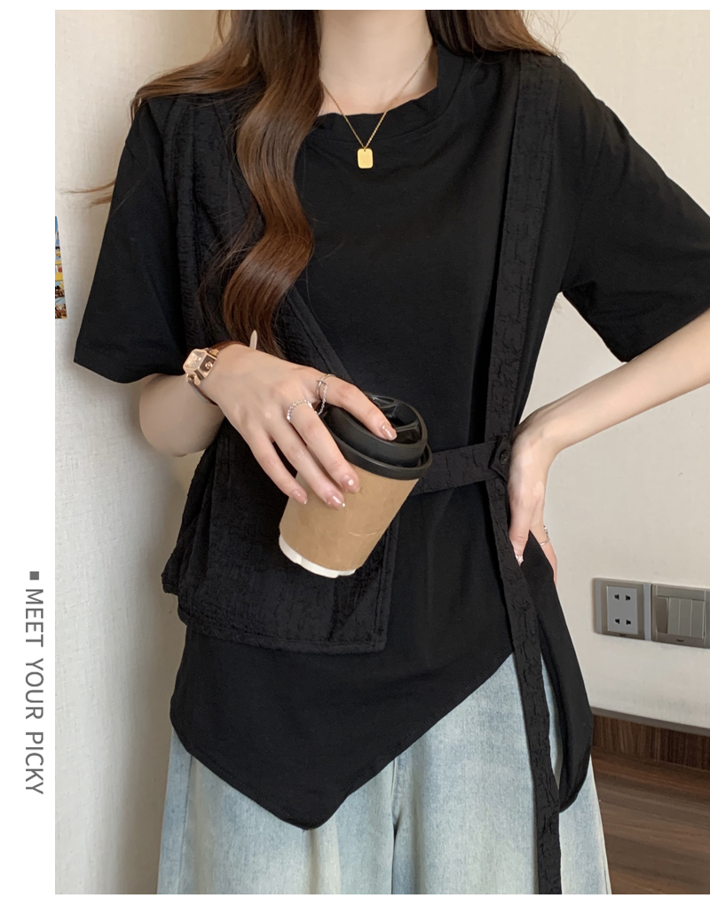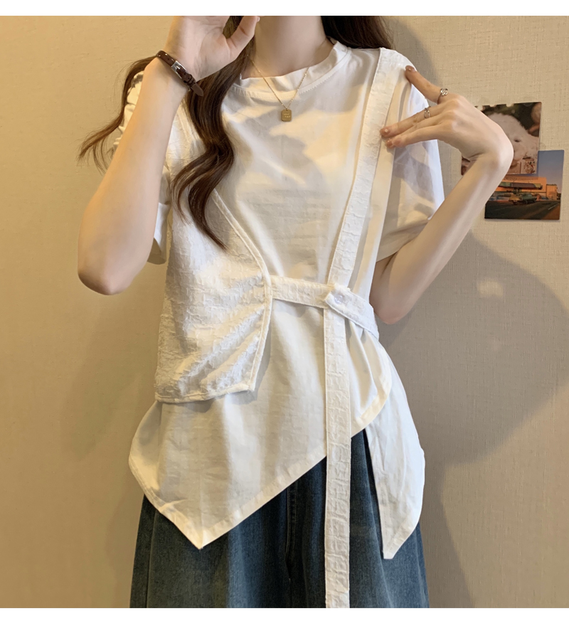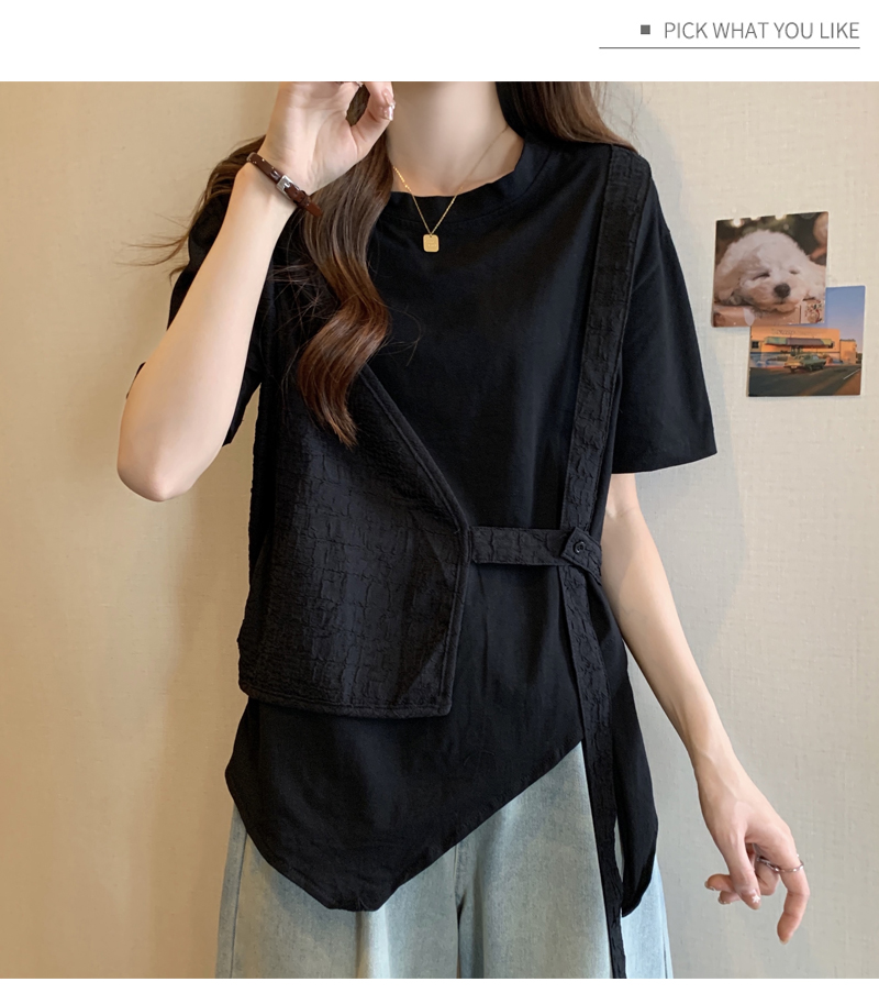 PF160#大码女装2024夏新款遮肉显瘦宽松胖MM不规则假两件上衣百搭