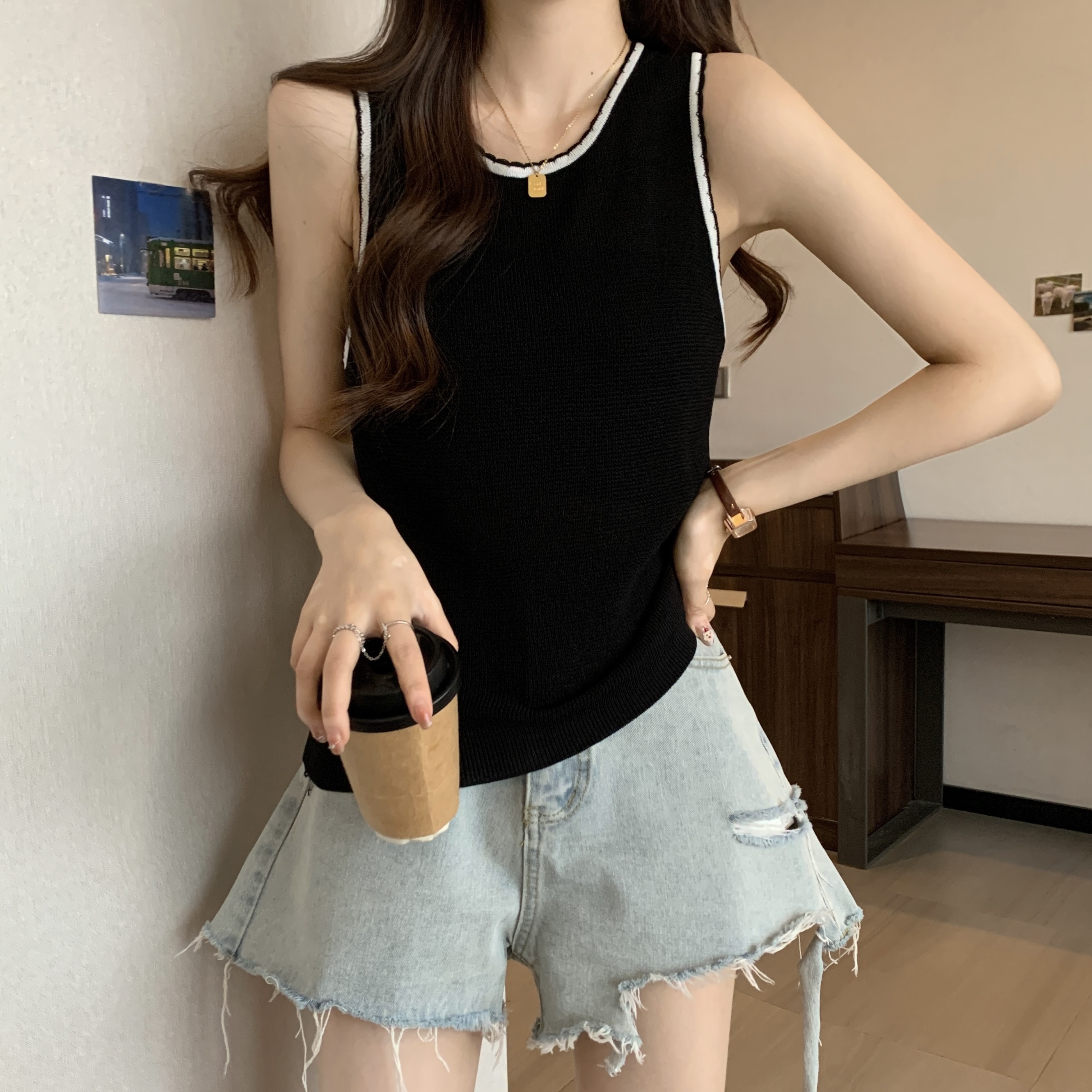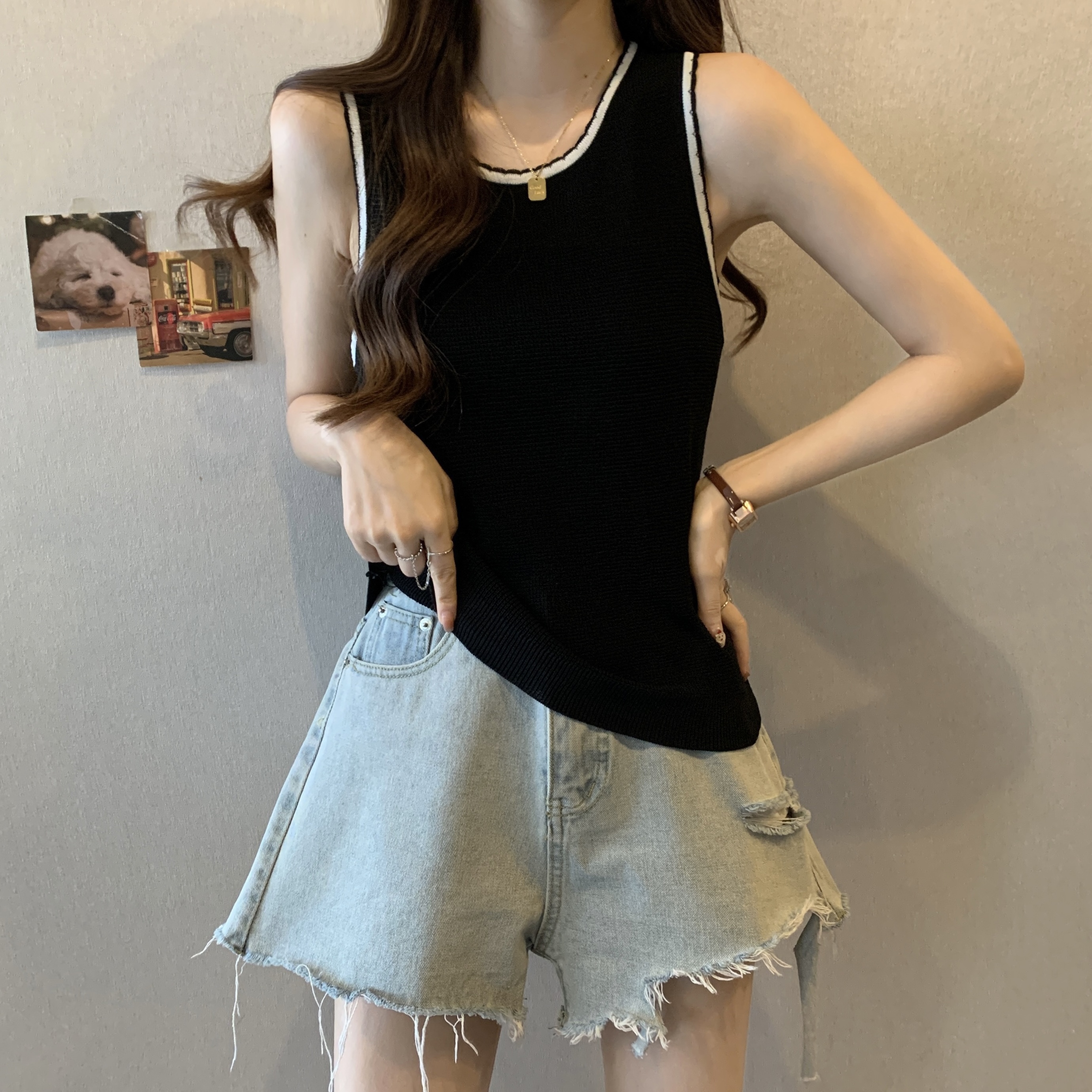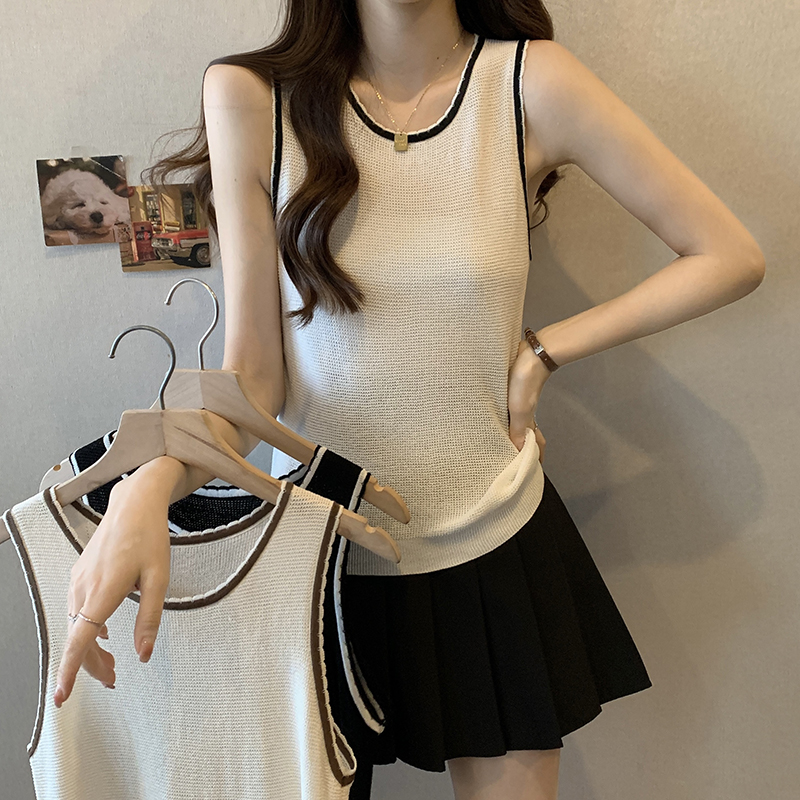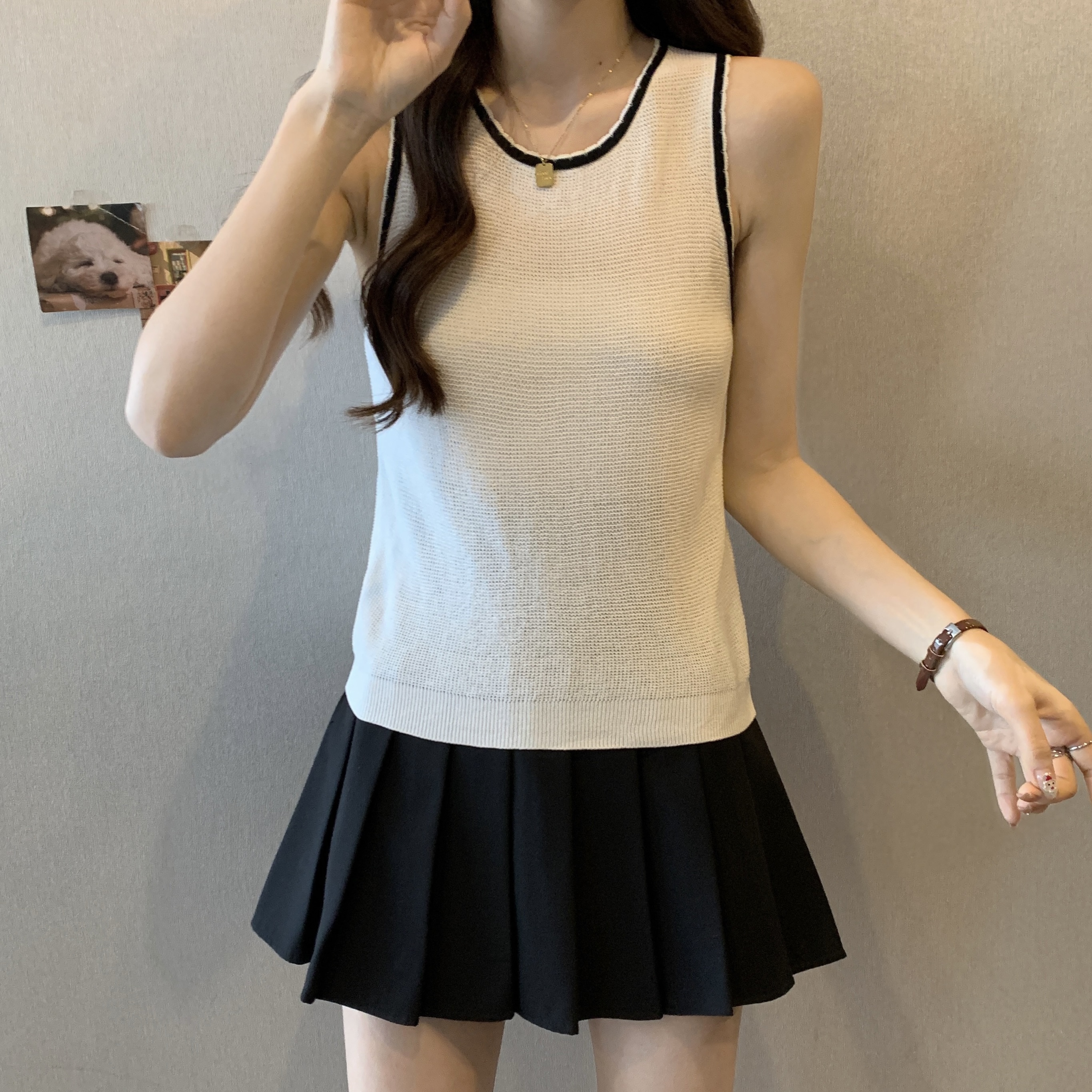 PF200#宽肩带背心女夏设计感小众宽松外穿2024新款针织吊带无袖上衣
