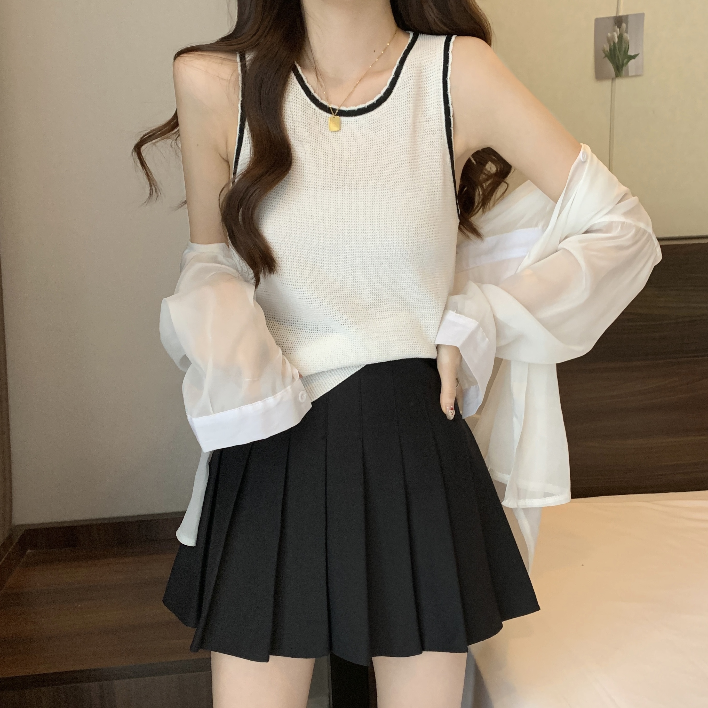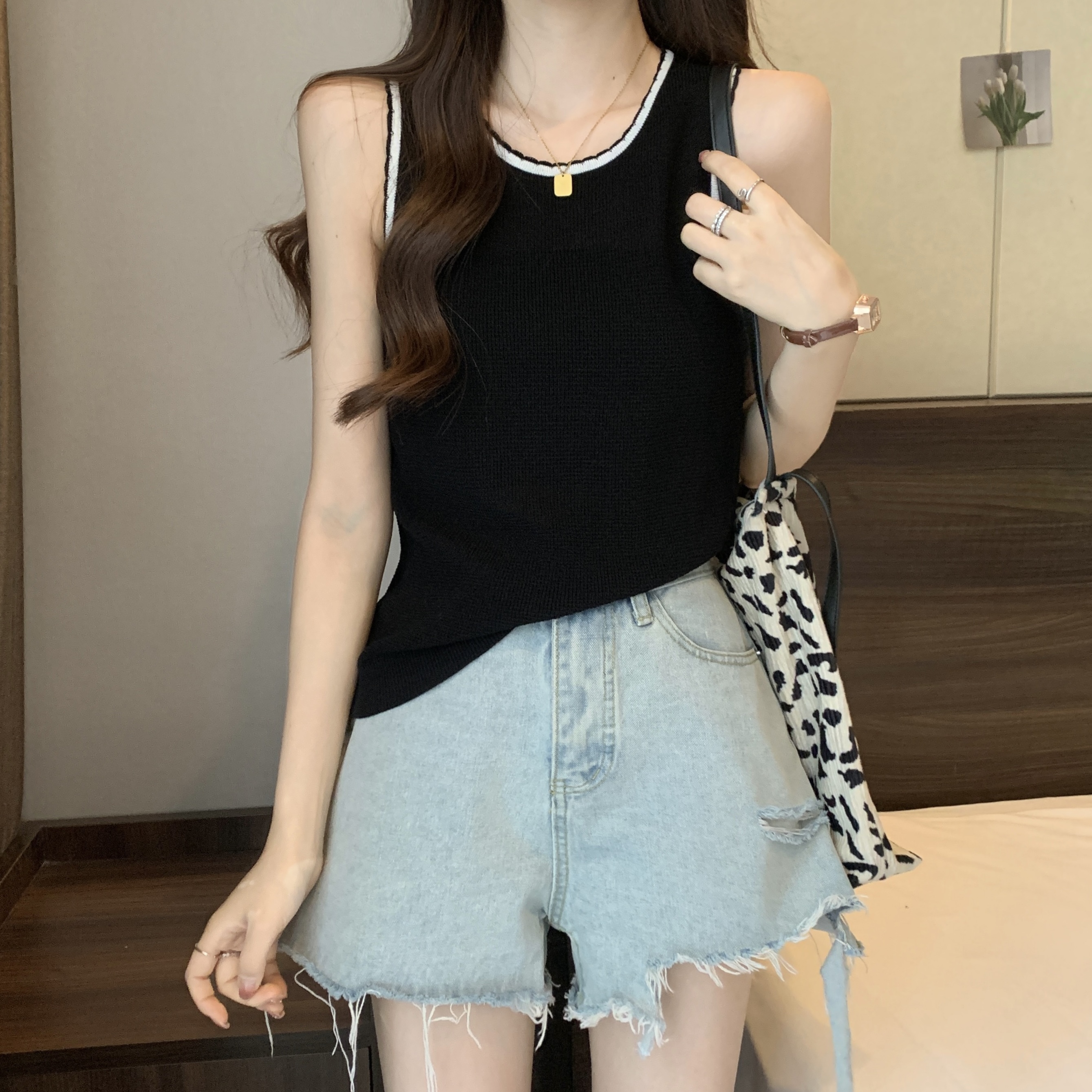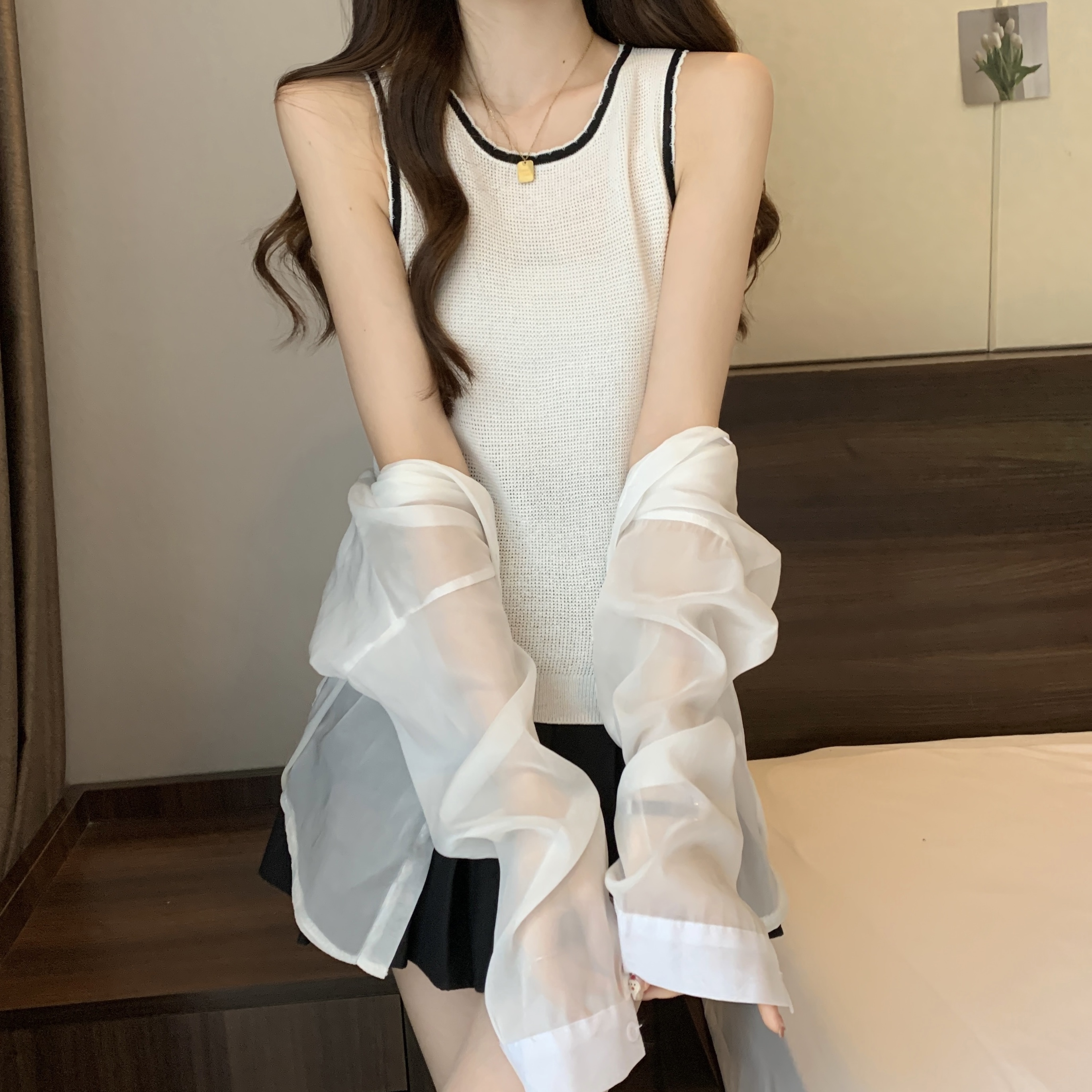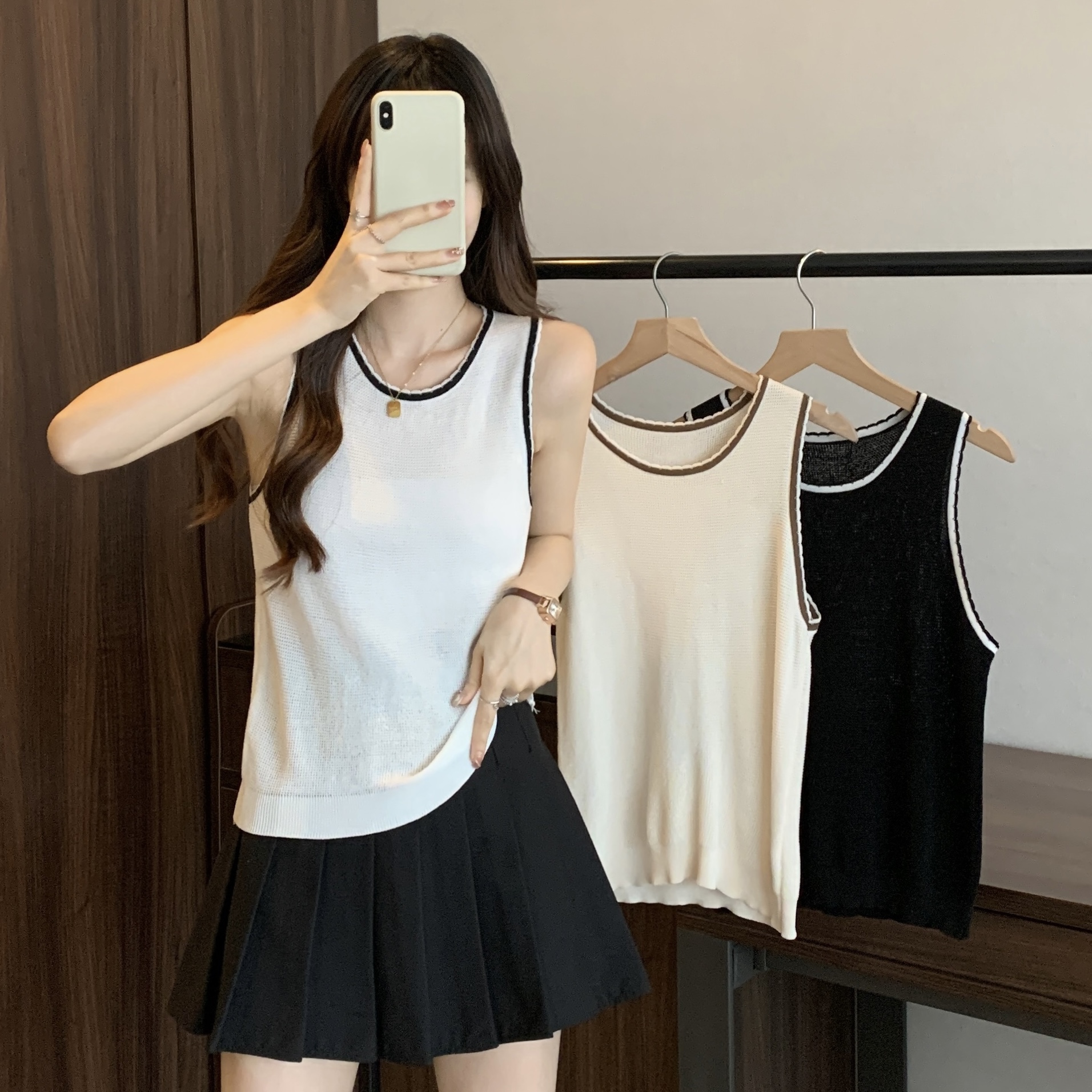PF200#宽肩带背心女夏设计感小众宽松外穿2024新款针织吊带无袖上衣