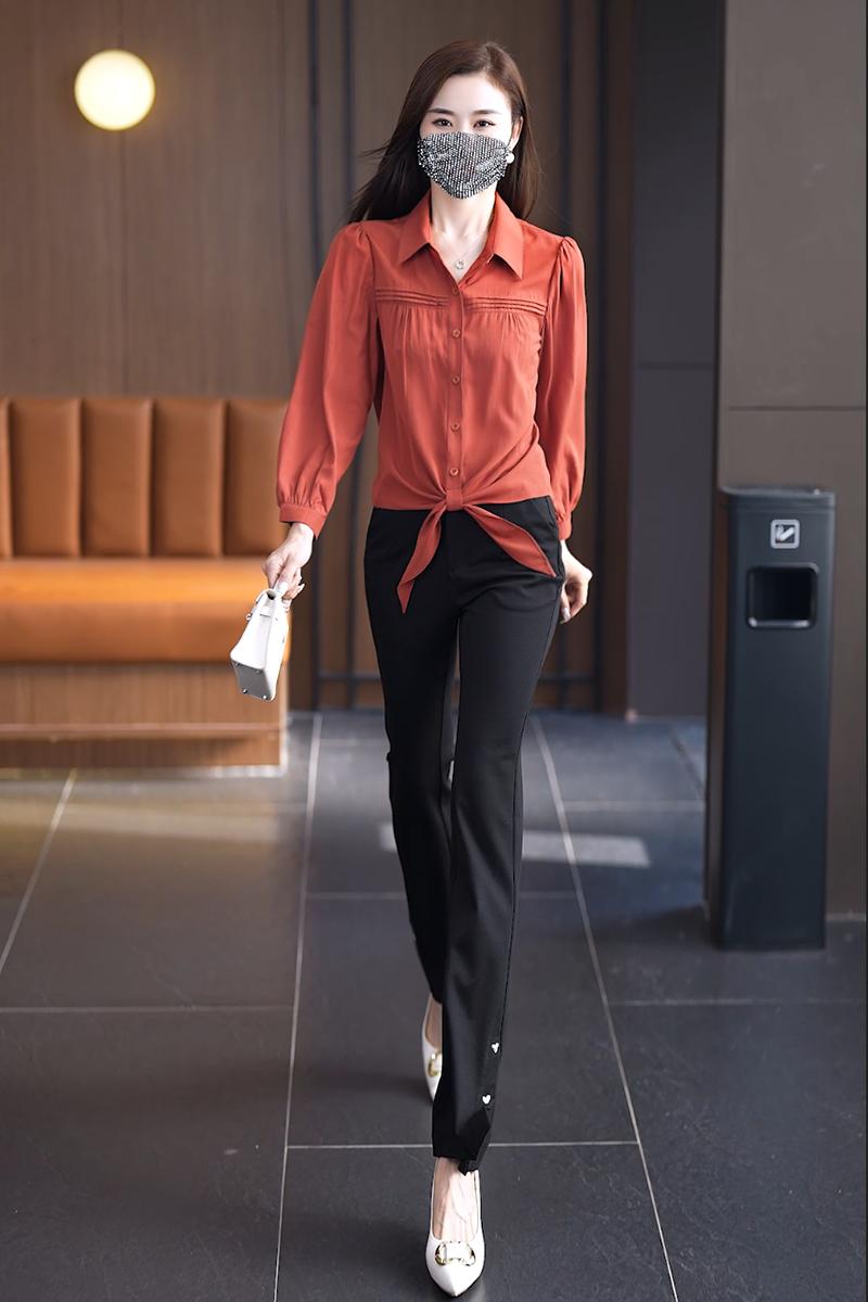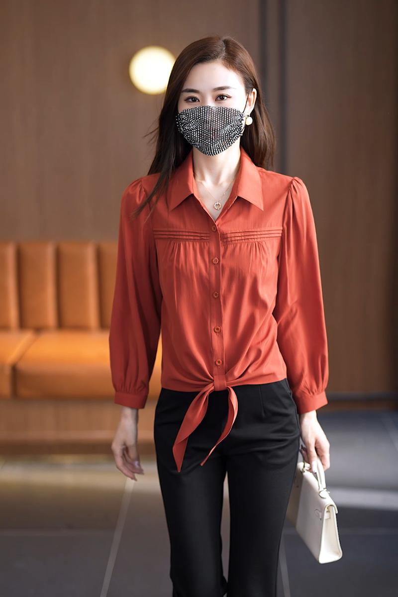 PF218#高级感衬衫女长袖 新款时尚收腰设计感小衫显瘦百搭上衣