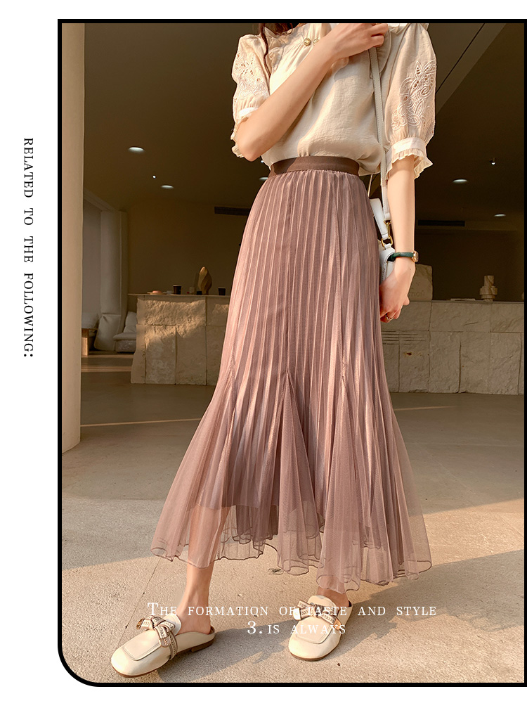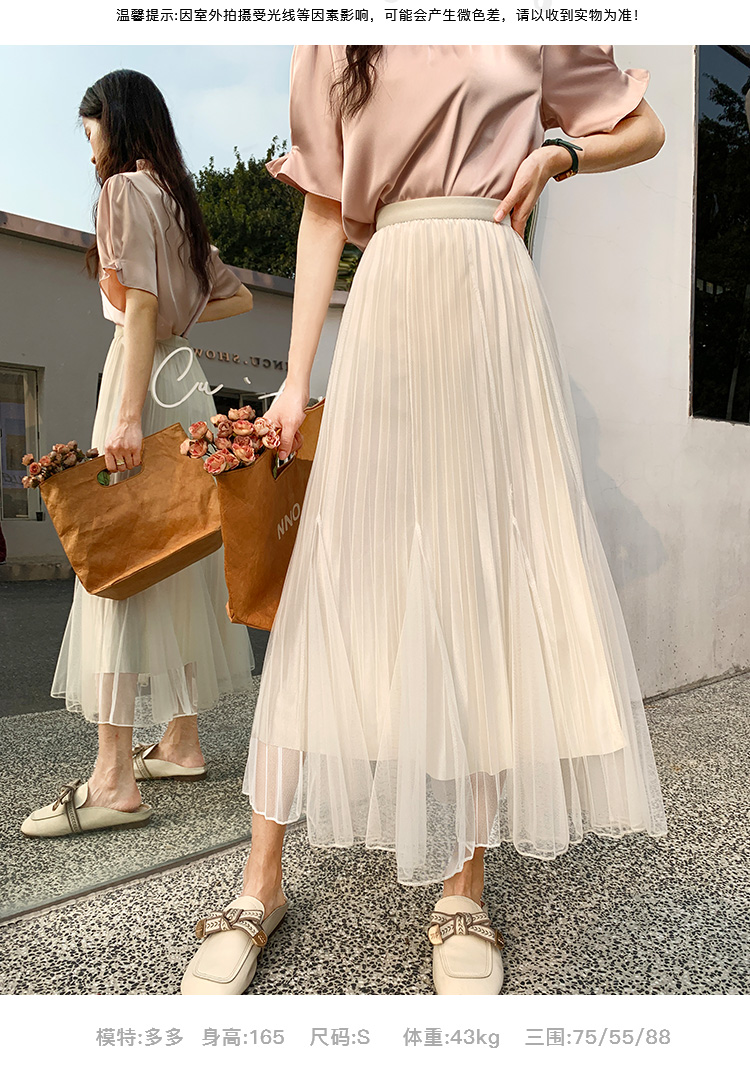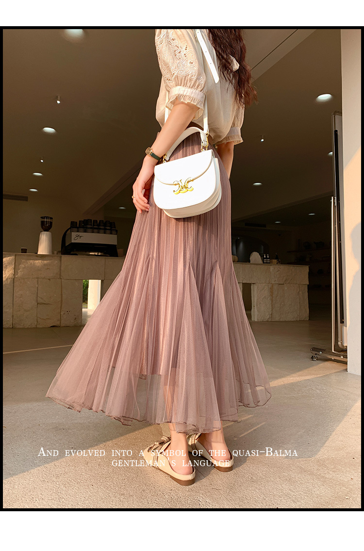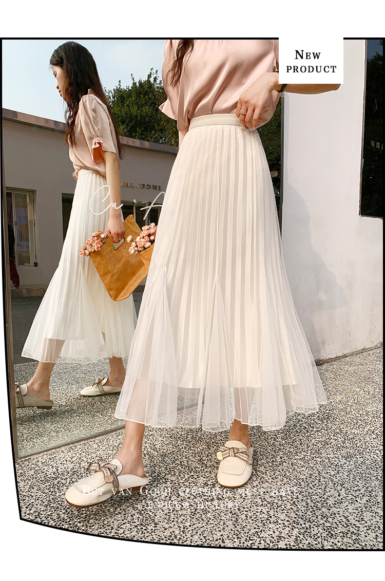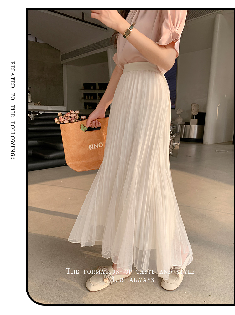 PF219#原创小众网纱半身裙2024春夏高腰a字百褶裙中长款鱼尾纱裙女长裙