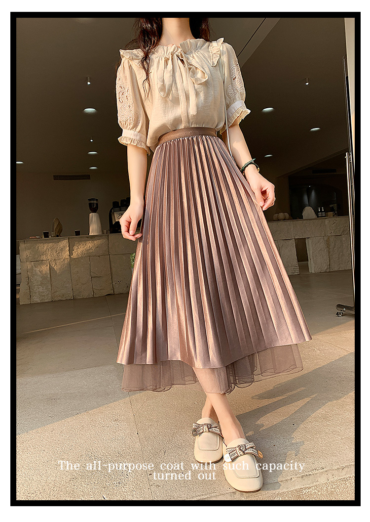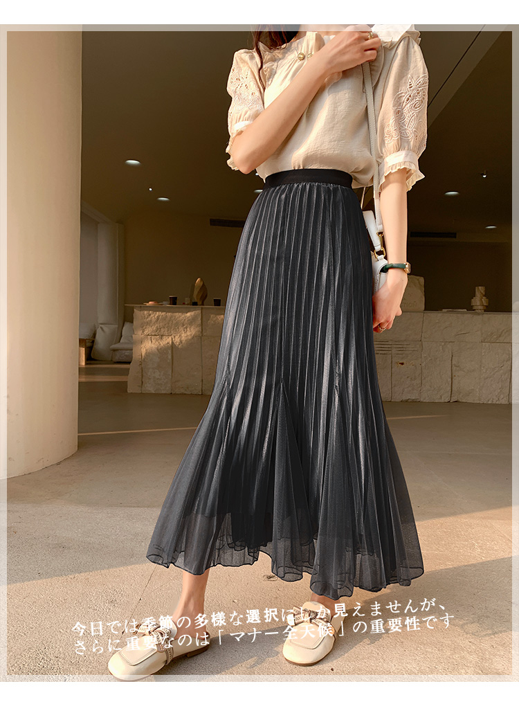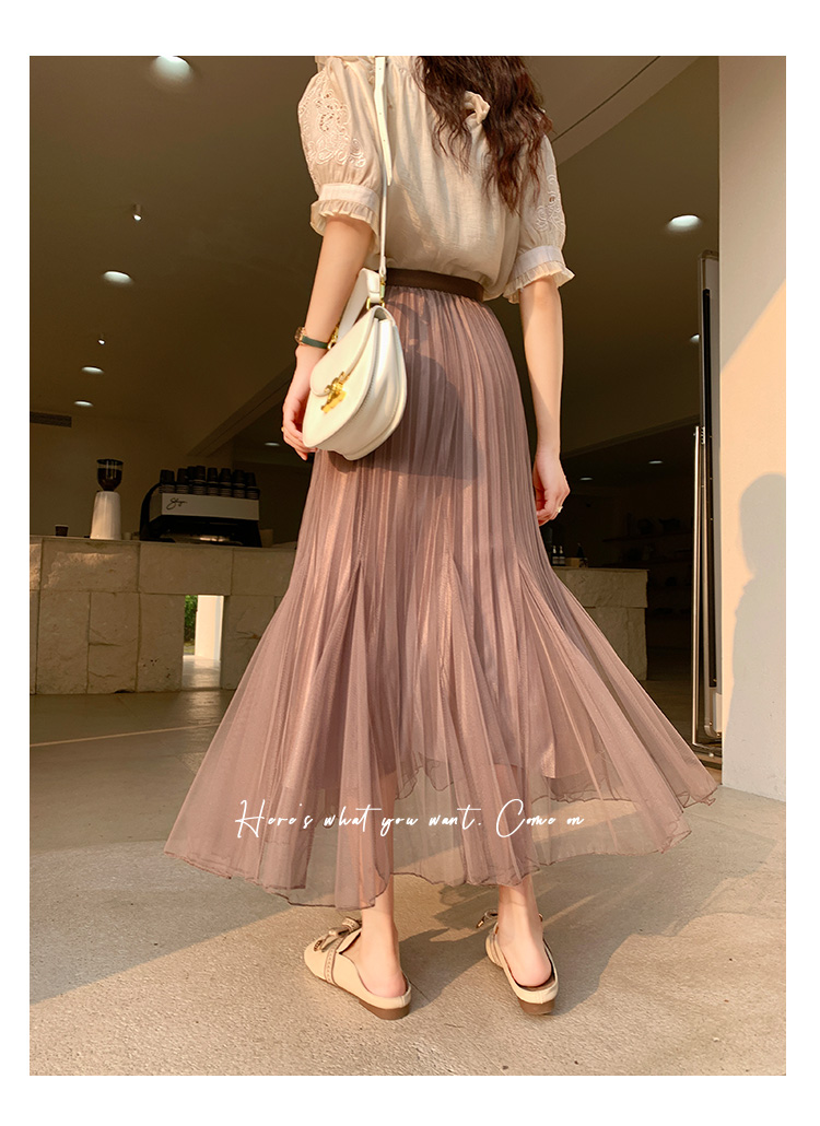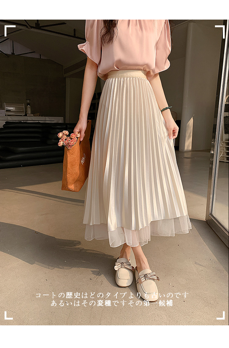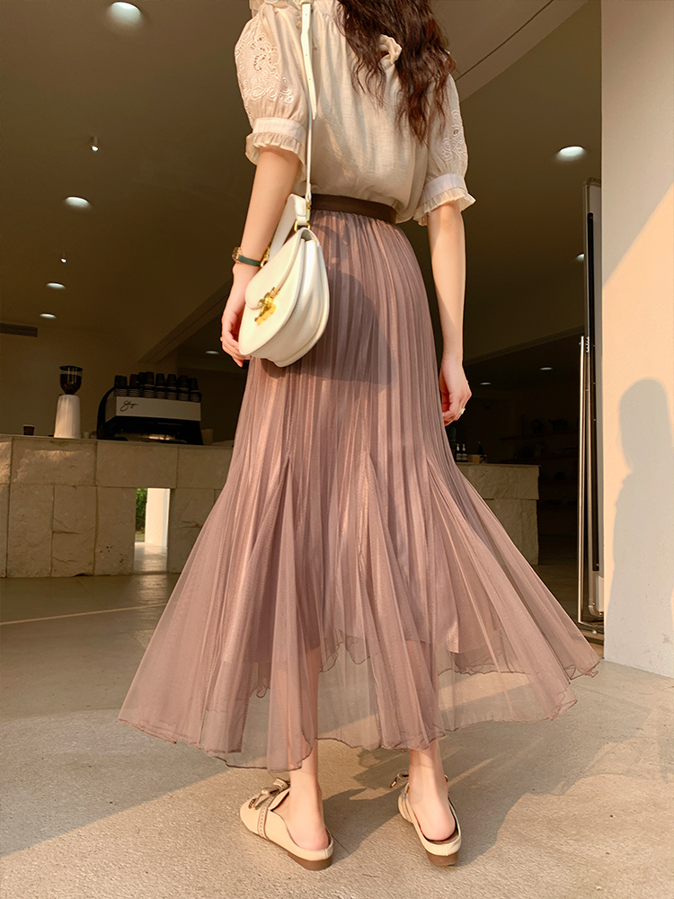 PF219#原创小众网纱半身裙2024春夏高腰a字百褶裙中长款鱼尾纱裙女长裙