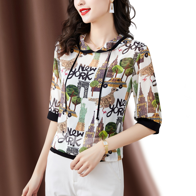 PF231#高端仿真丝印花女夏2024新款连帽卫衣防嗮半袖外搭上衣