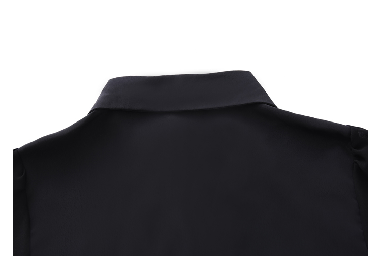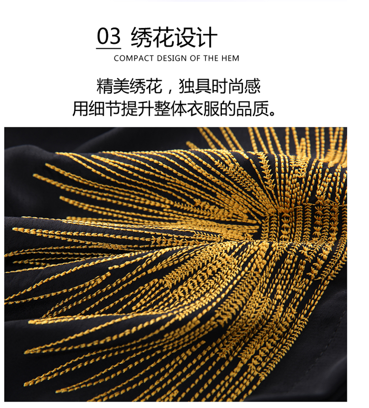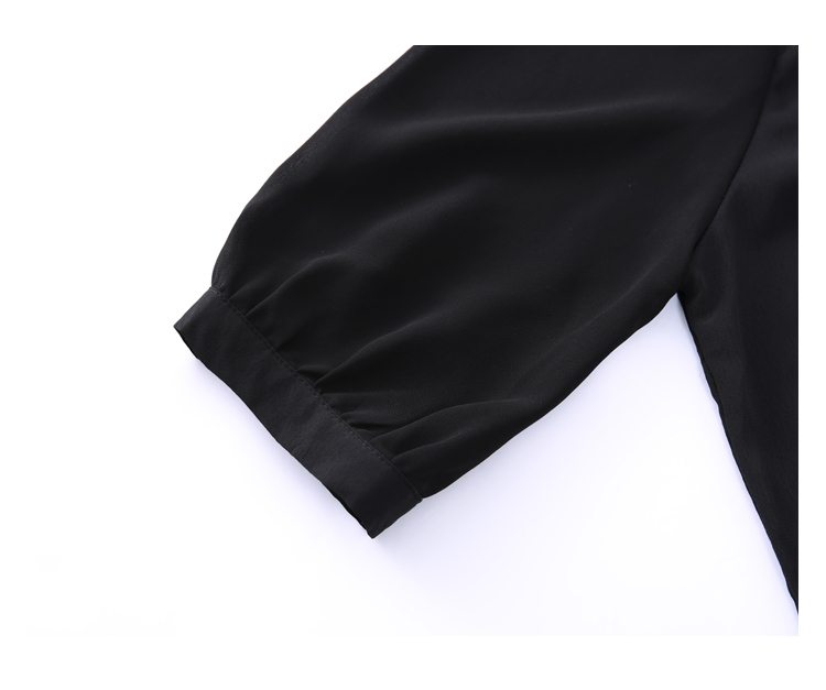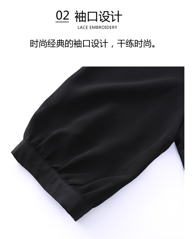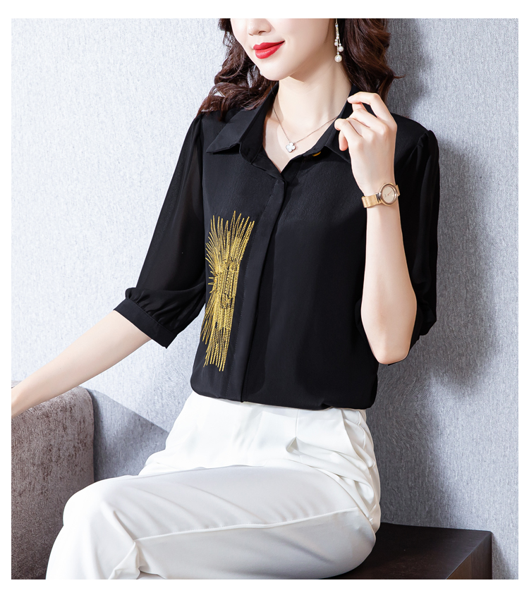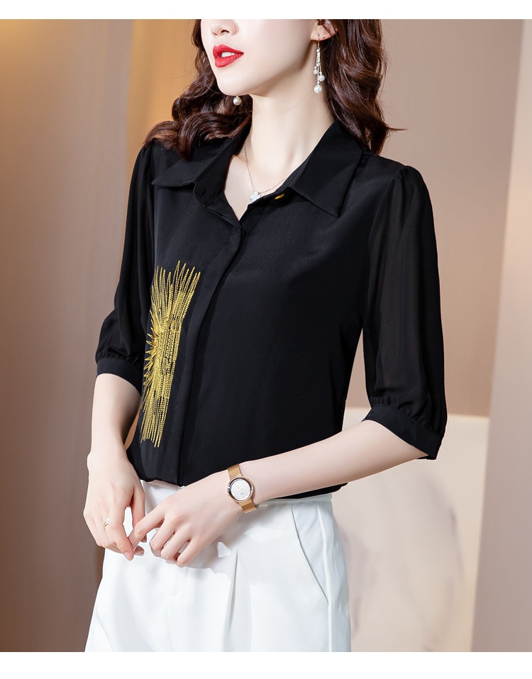 PF242#高端缎面仿真丝衬衫2024新款五分袖黑色绣花时尚职业上衣