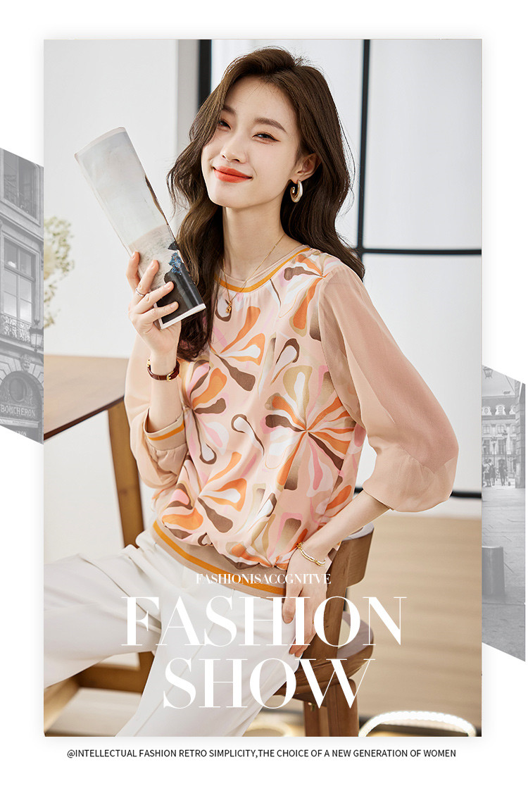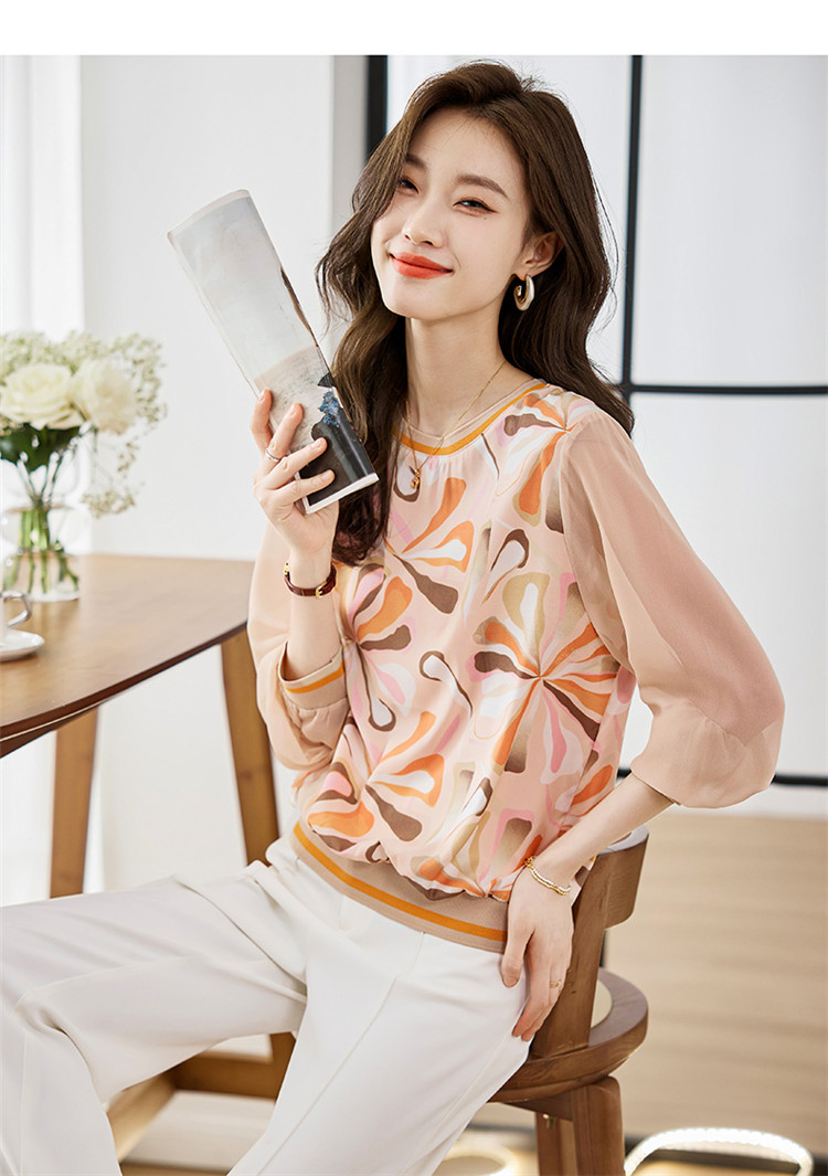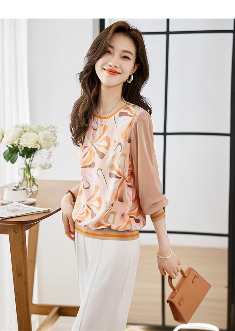 PF249#新款高端针织斜纹印花套头长袖宽松拼接气质外套上衣
