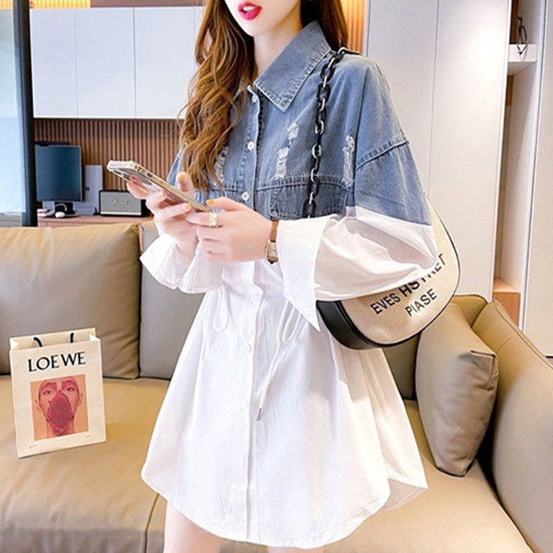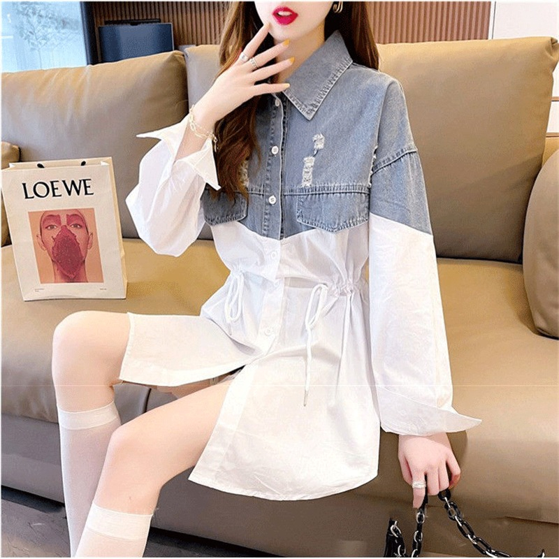 PF263#牛仔拼接外套女春装新款宽松休闲长袖时尚上衣网红欧洲站女装