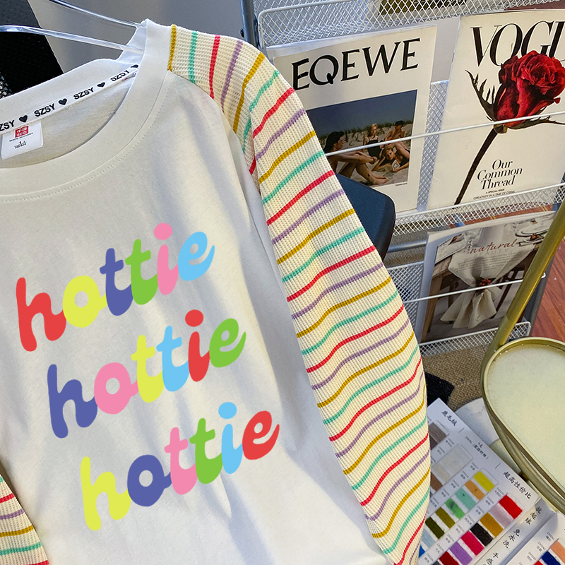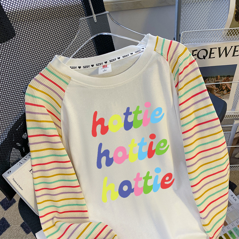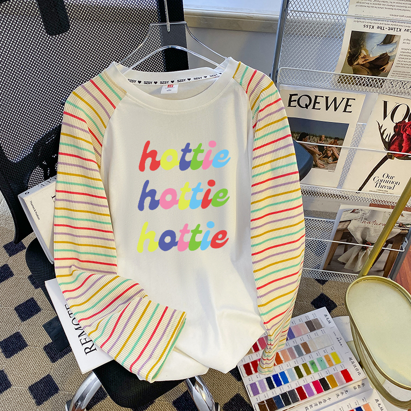 PF267#纯棉长袖t恤女春秋薄款插肩袖潮圆领打底衫上衣大码女装