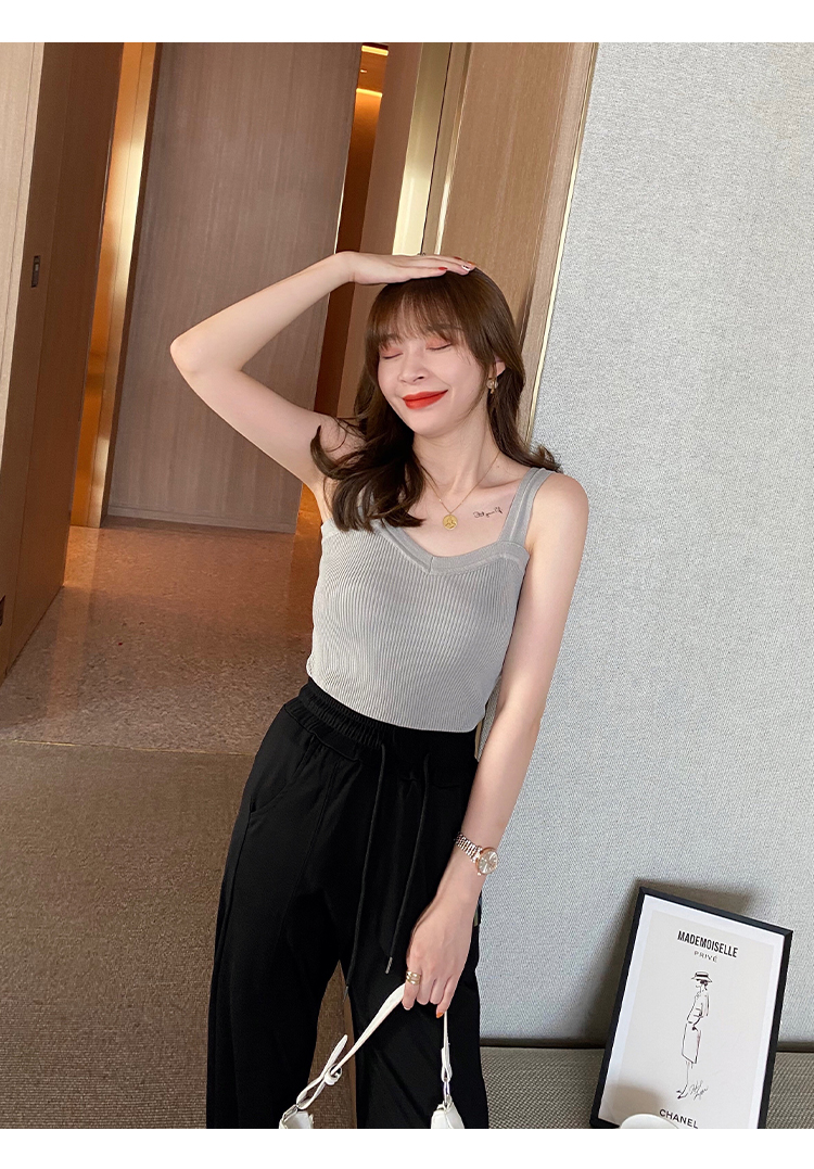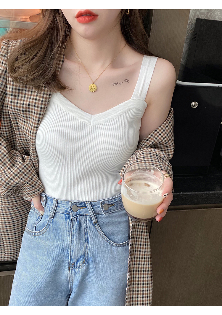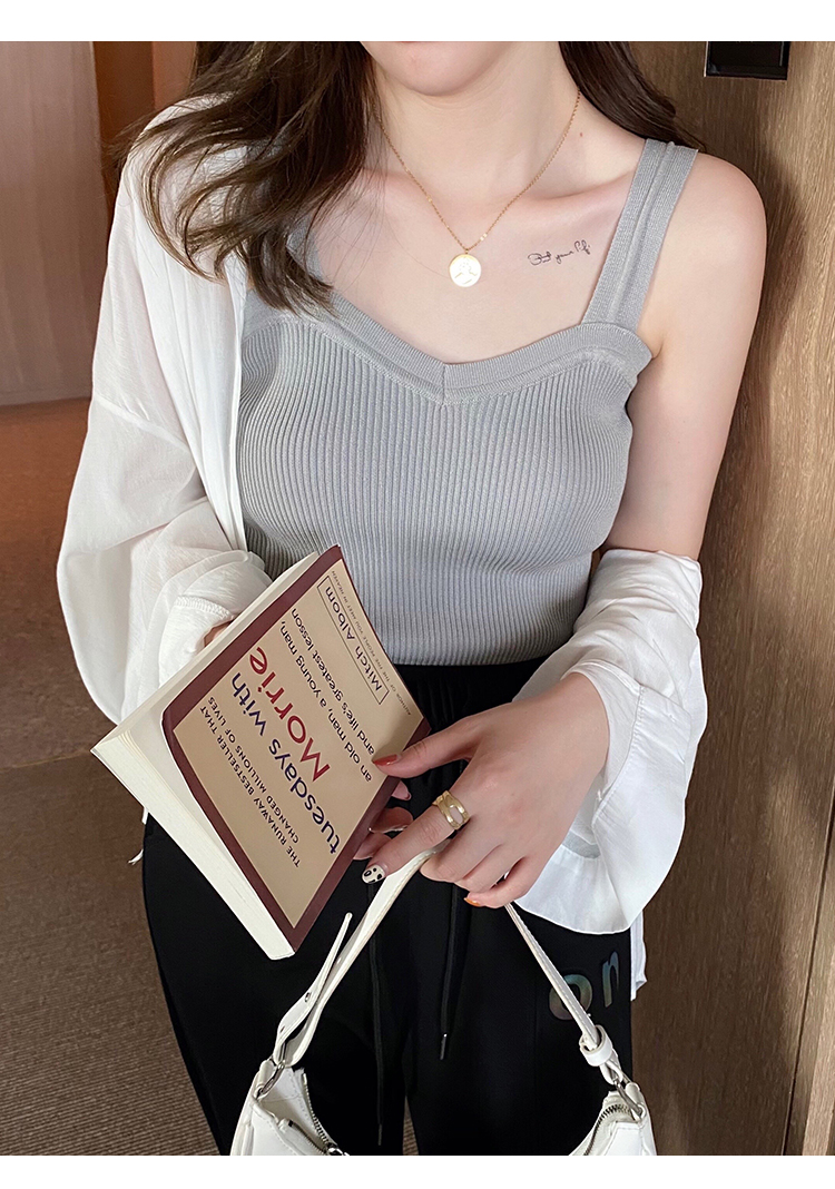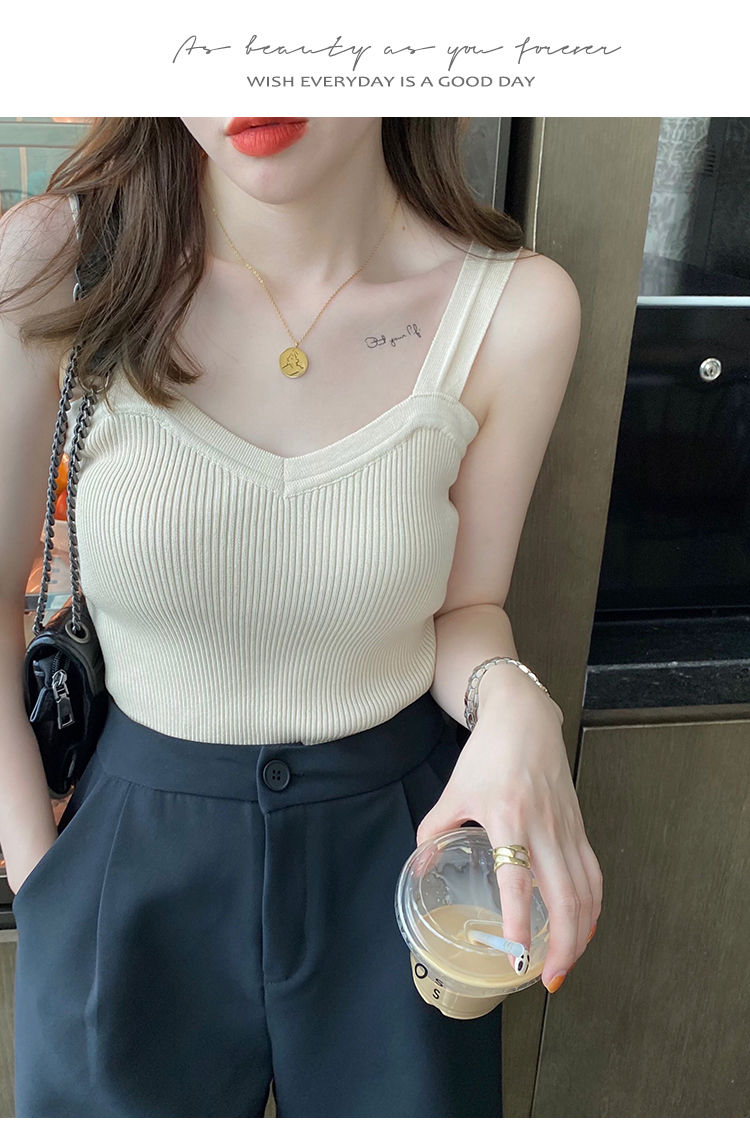 PF288#白色v领针织吊带背心女洋气内搭法式外穿设计感小众打底夏季上衣