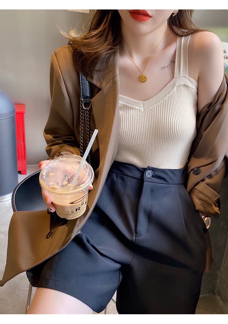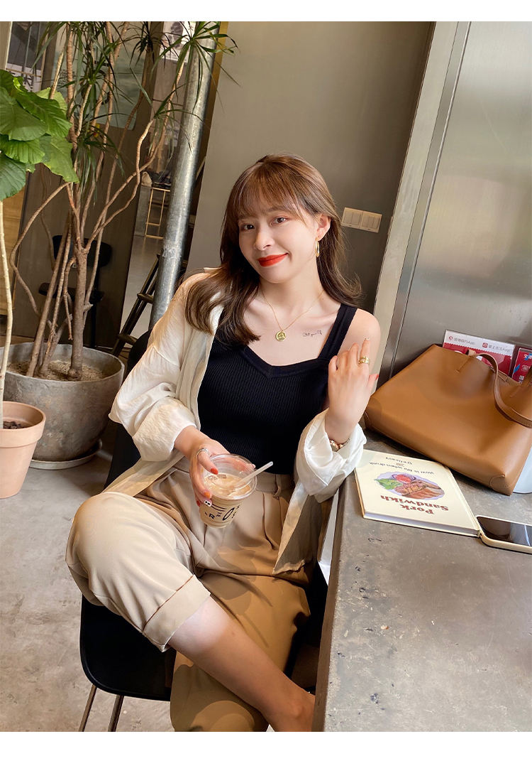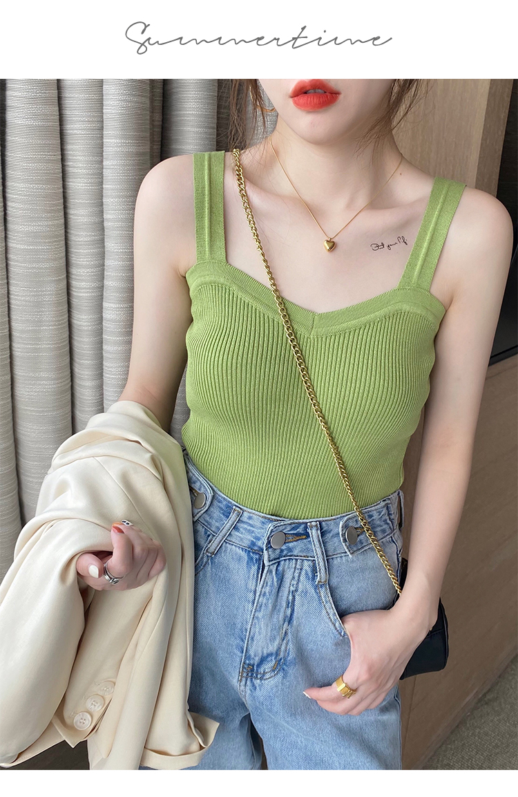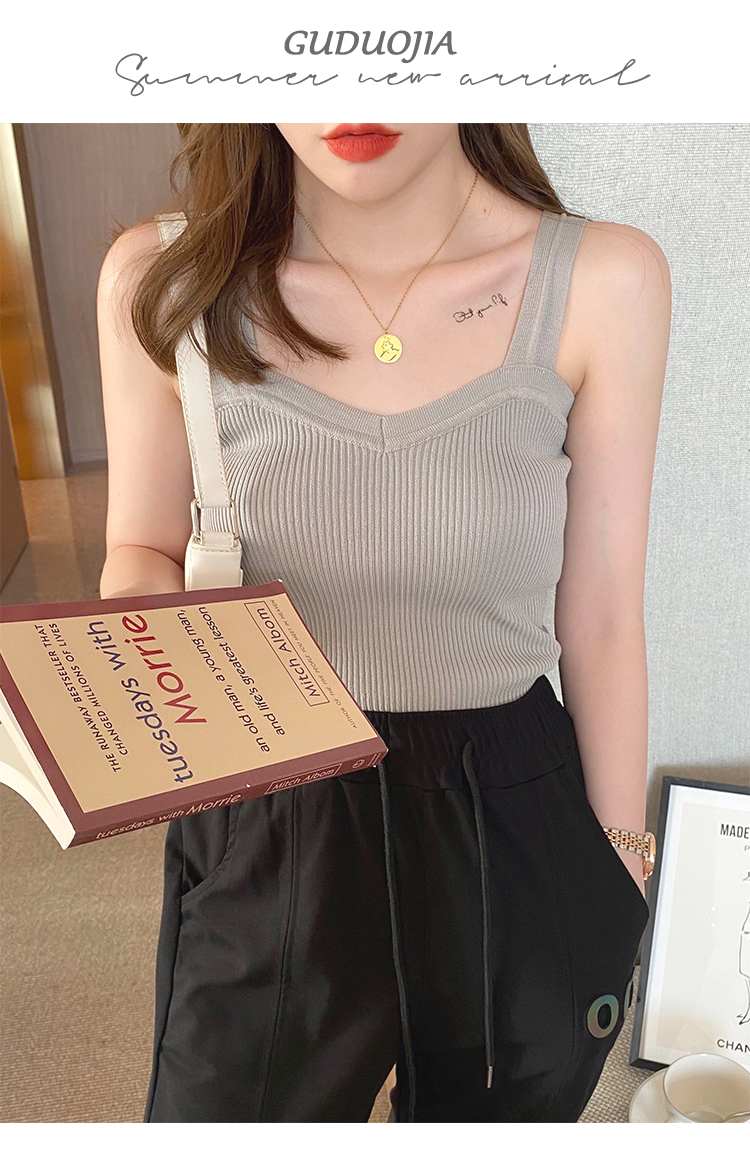 PF288#白色v领针织吊带背心女洋气内搭法式外穿设计感小众打底夏季上衣
