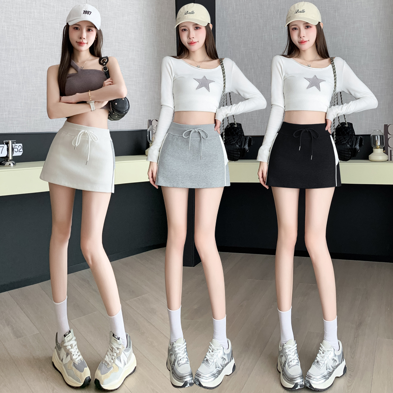 PF296#抽绳运动卫衣裙女夏天外穿撞色边高腰休闲a字半裙ins潮防走光