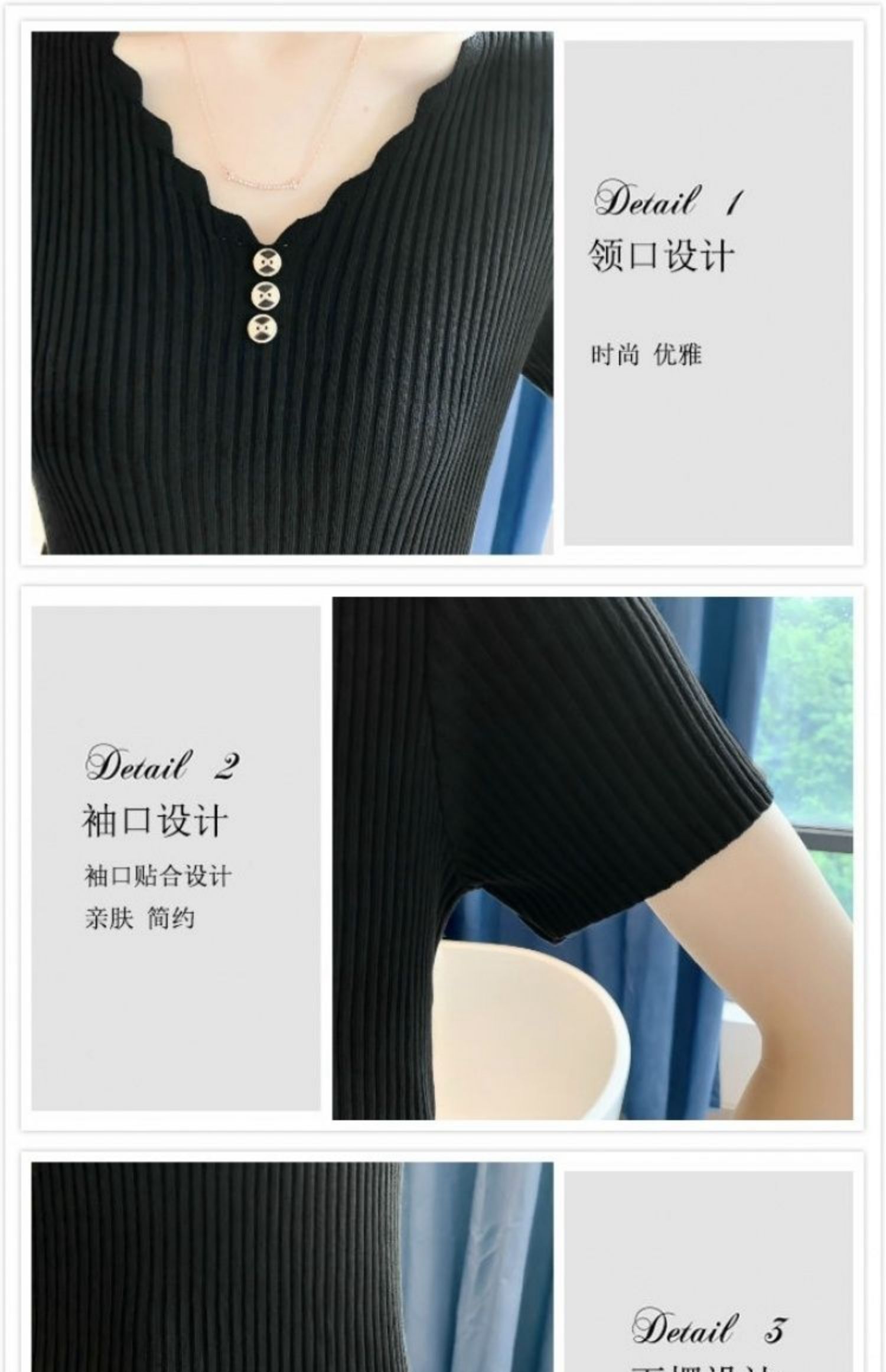 PF314#v领上衣女 薄款紧身气质简约打底内搭显瘦针织冰丝短袖t恤