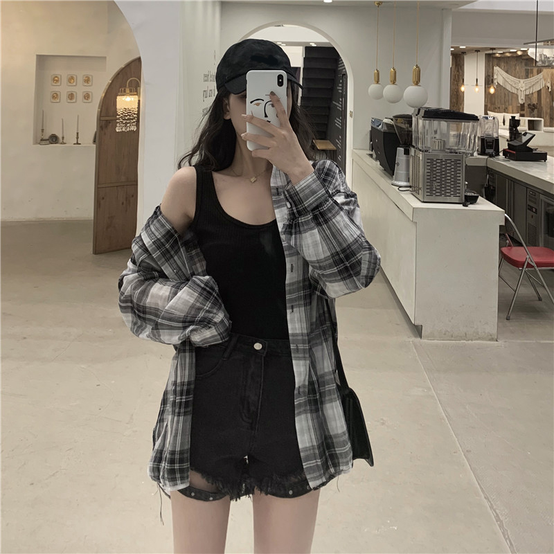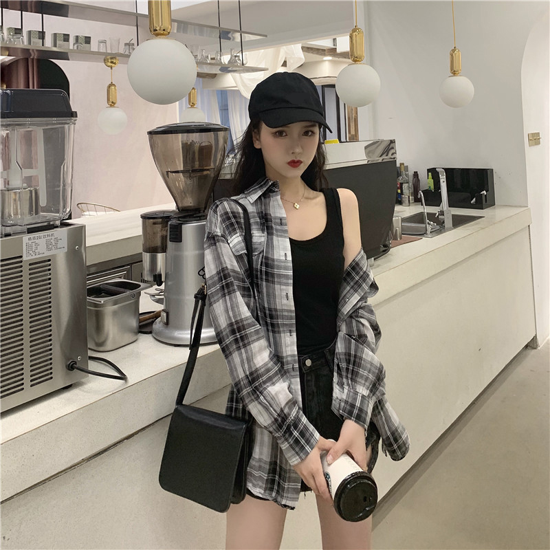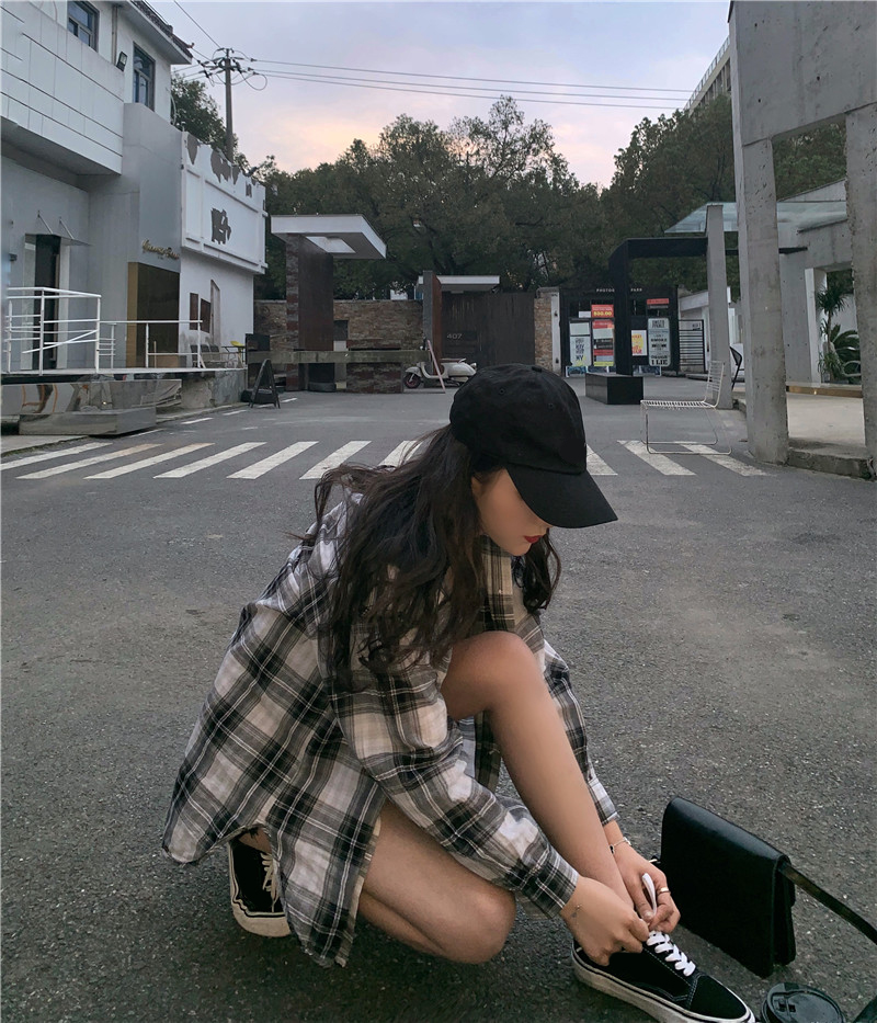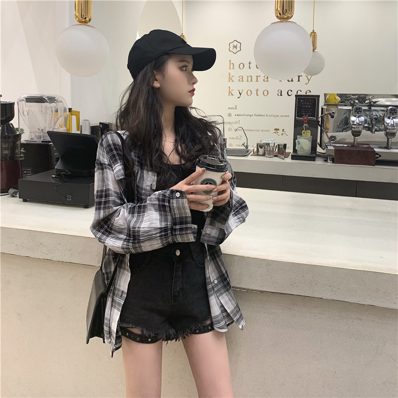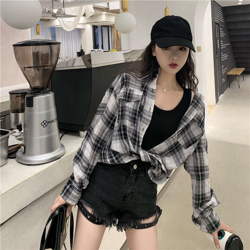 PF473#春装大码港风长袖格子衬衫宽松慵懒衬衣外套M-4XL200斤