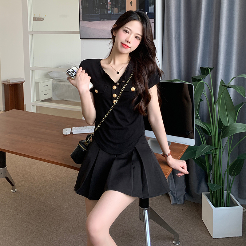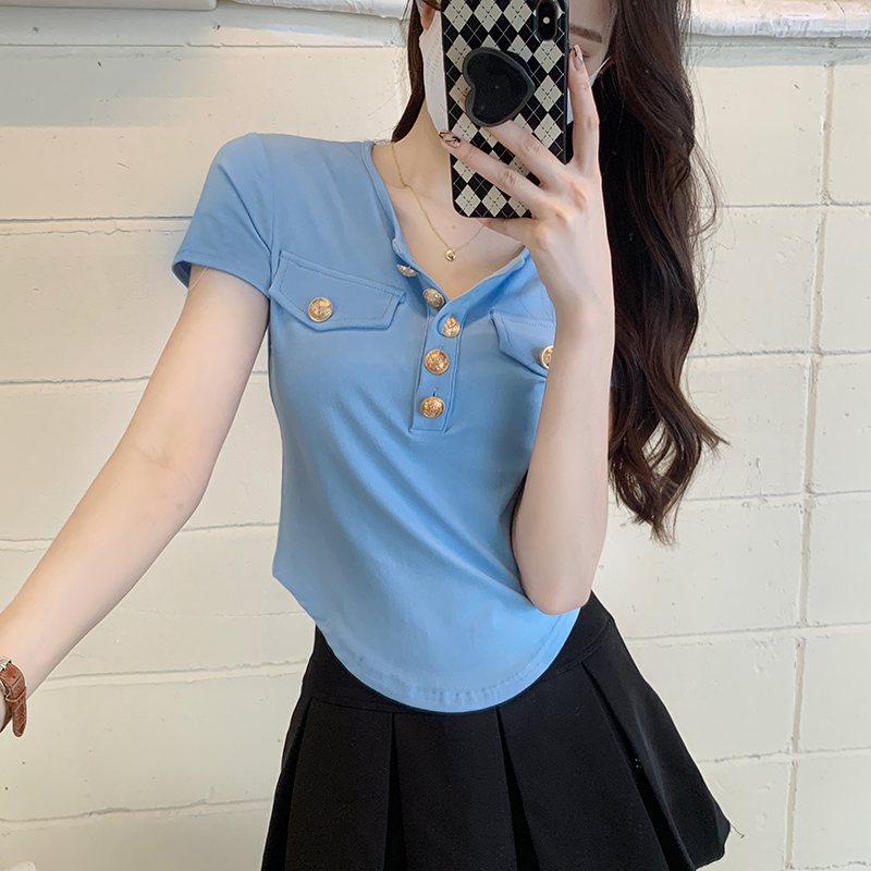 PF534#正肩短袖t恤女夏季新款辣妹显瘦遮肚不规则短上衣