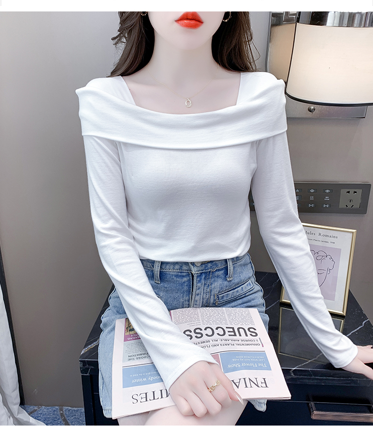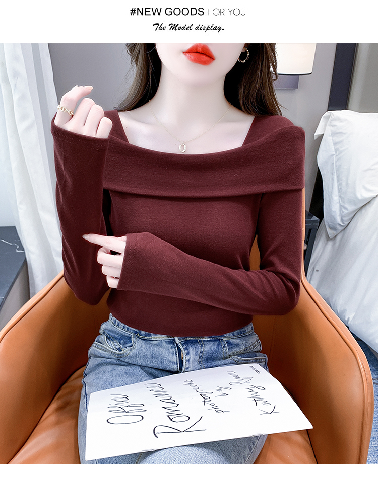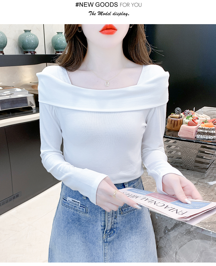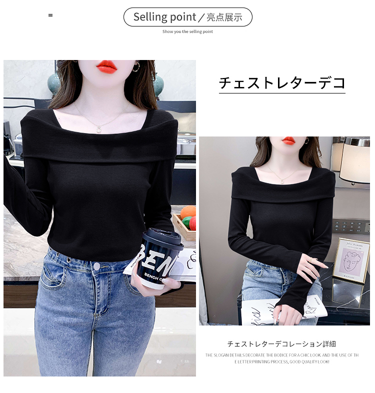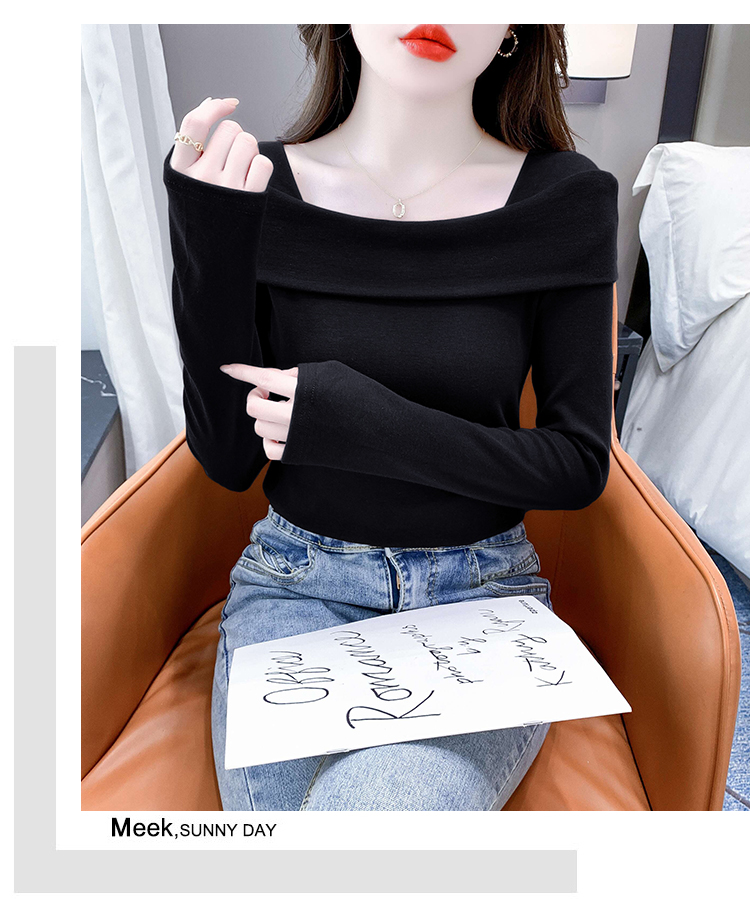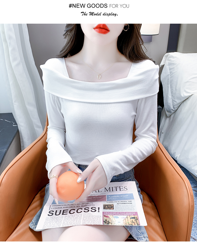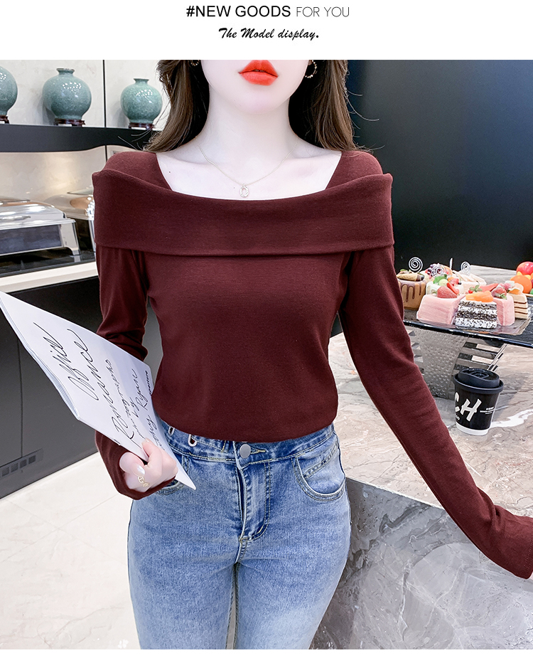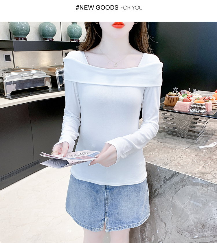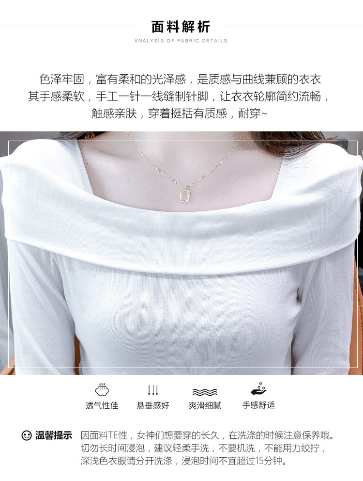 PF538#欧货早春辣妹风修身露肩一字领小心机套头长袖打底T恤女上衣