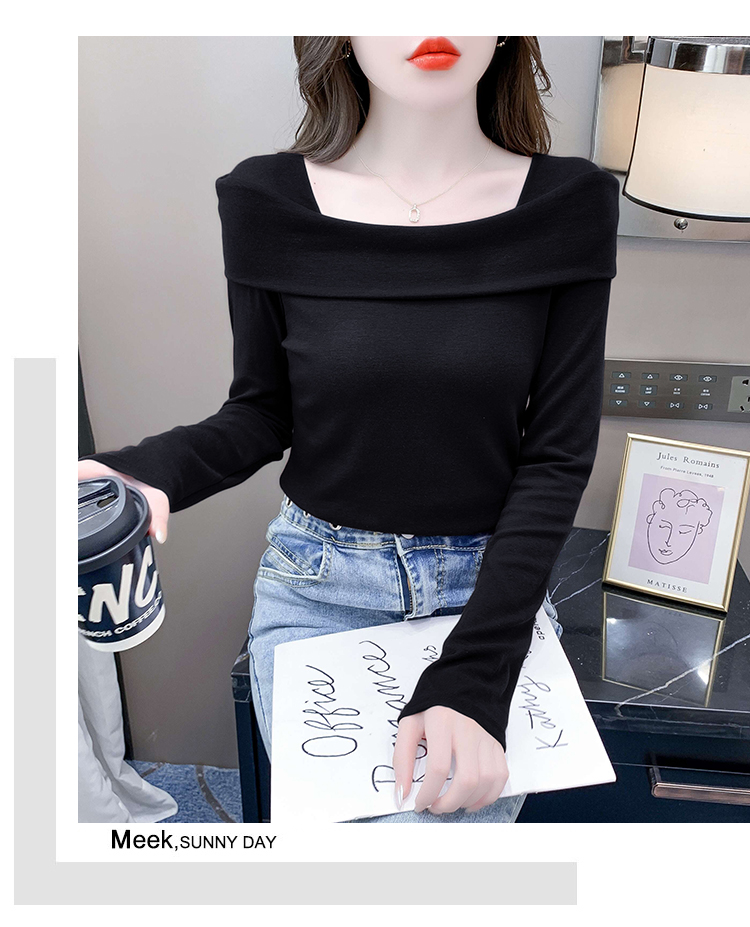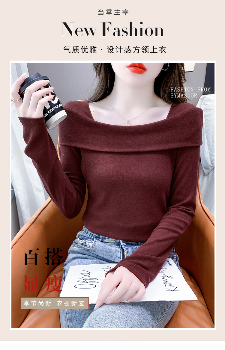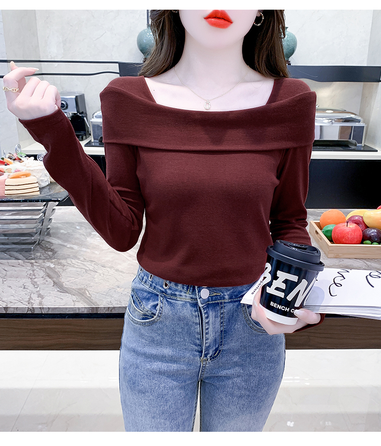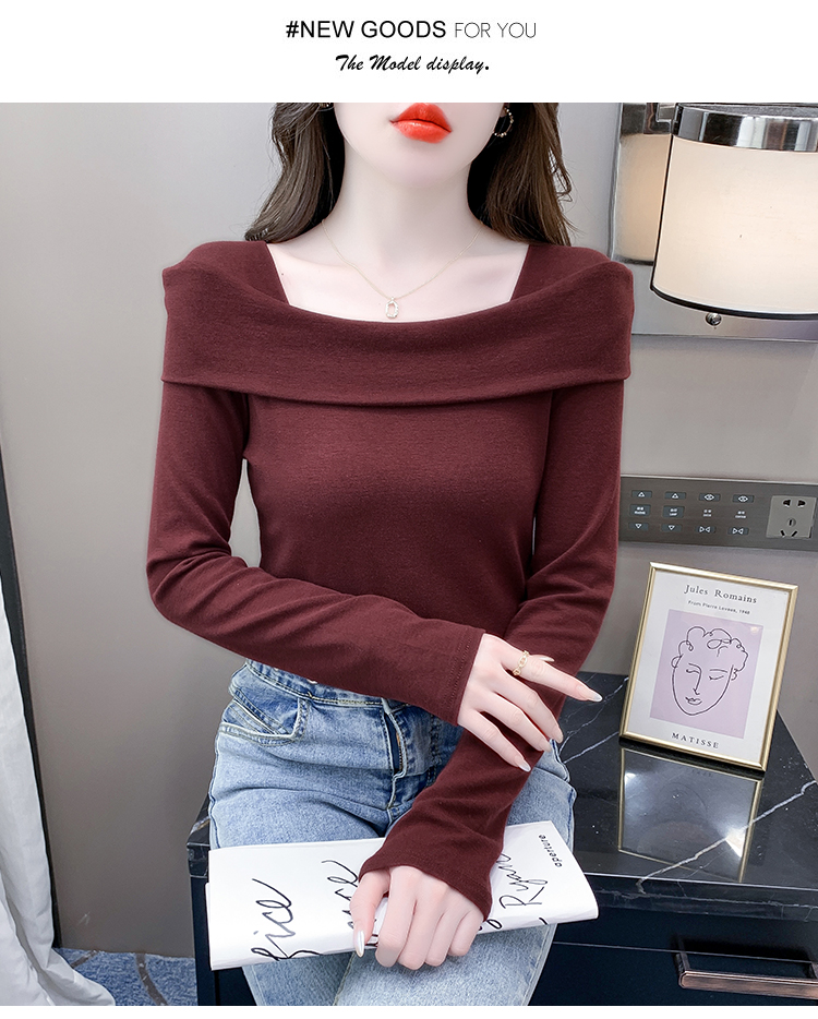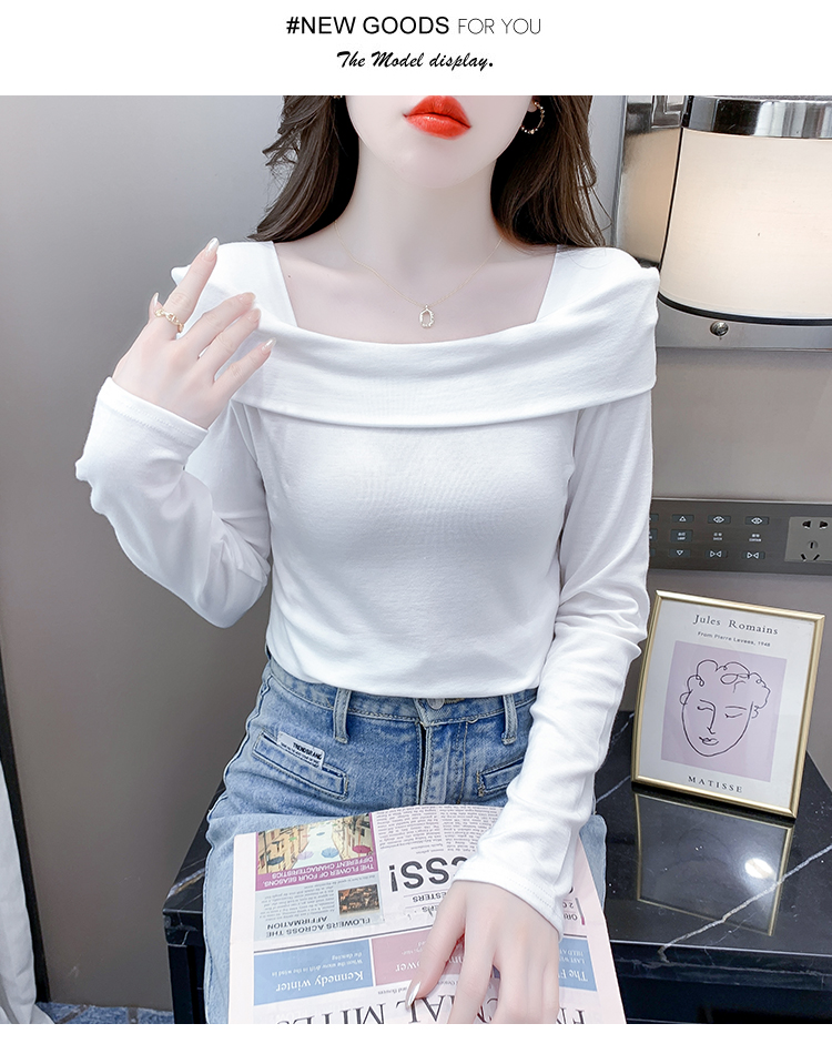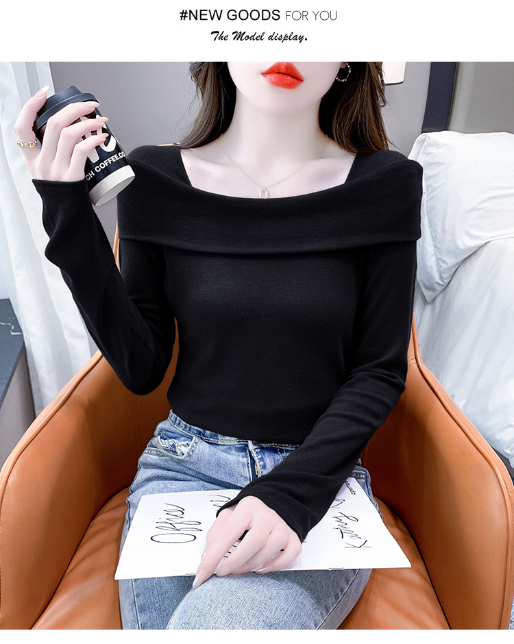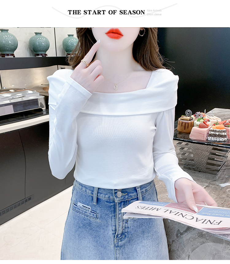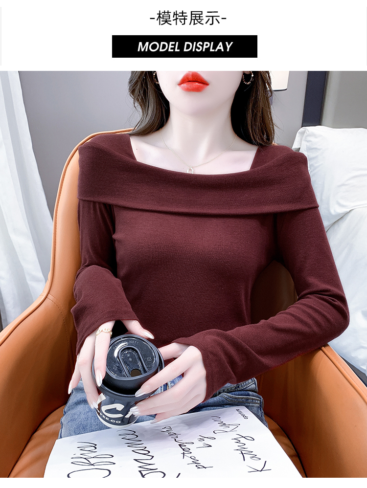 PF538#欧货早春辣妹风修身露肩一字领小心机套头长袖打底T恤女上衣