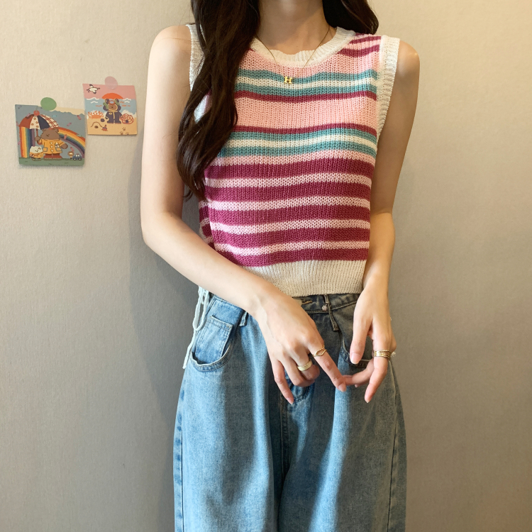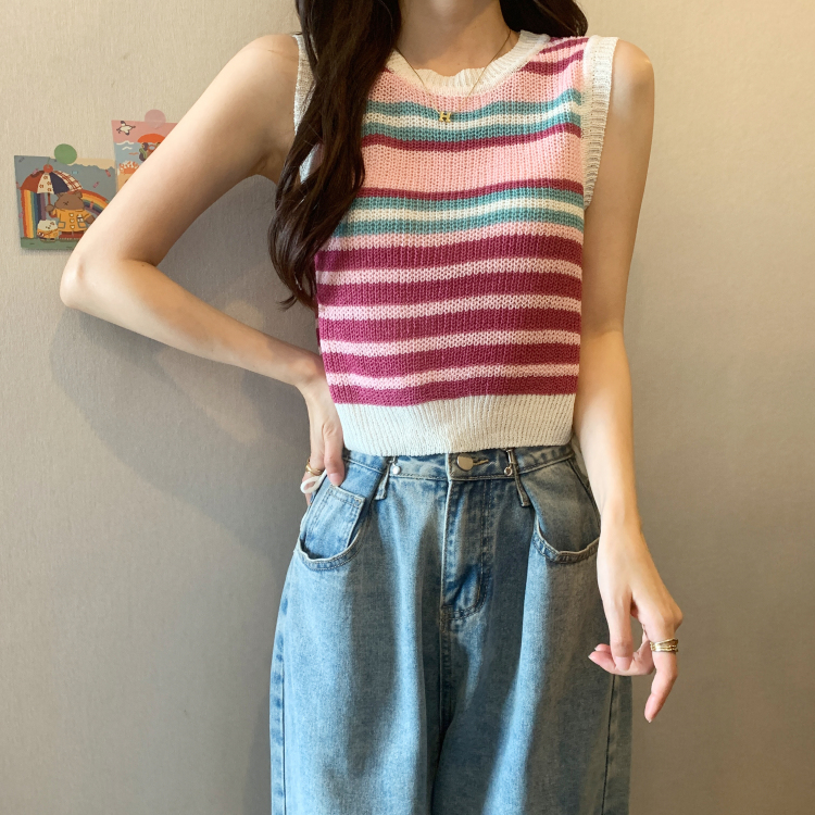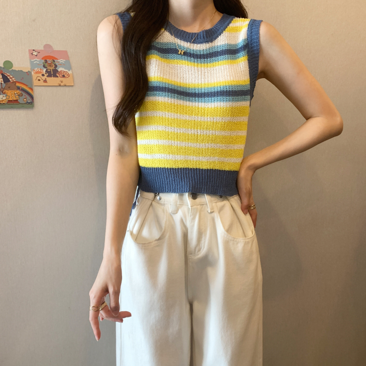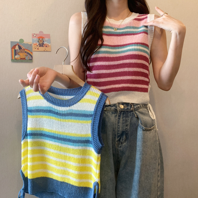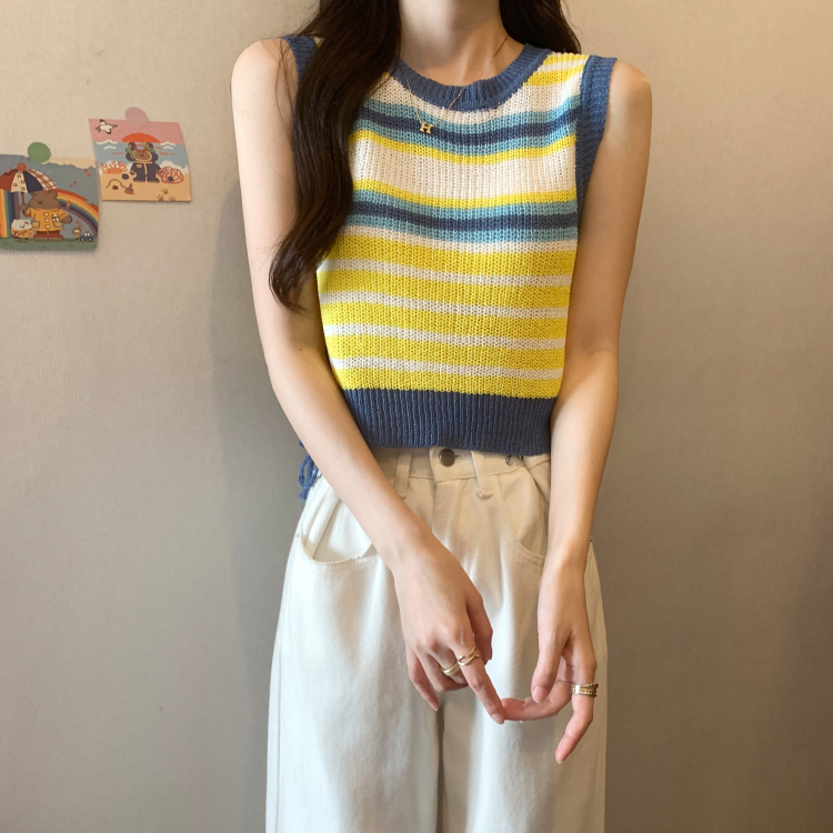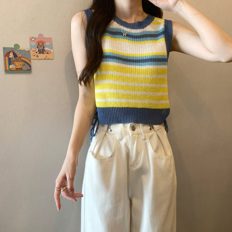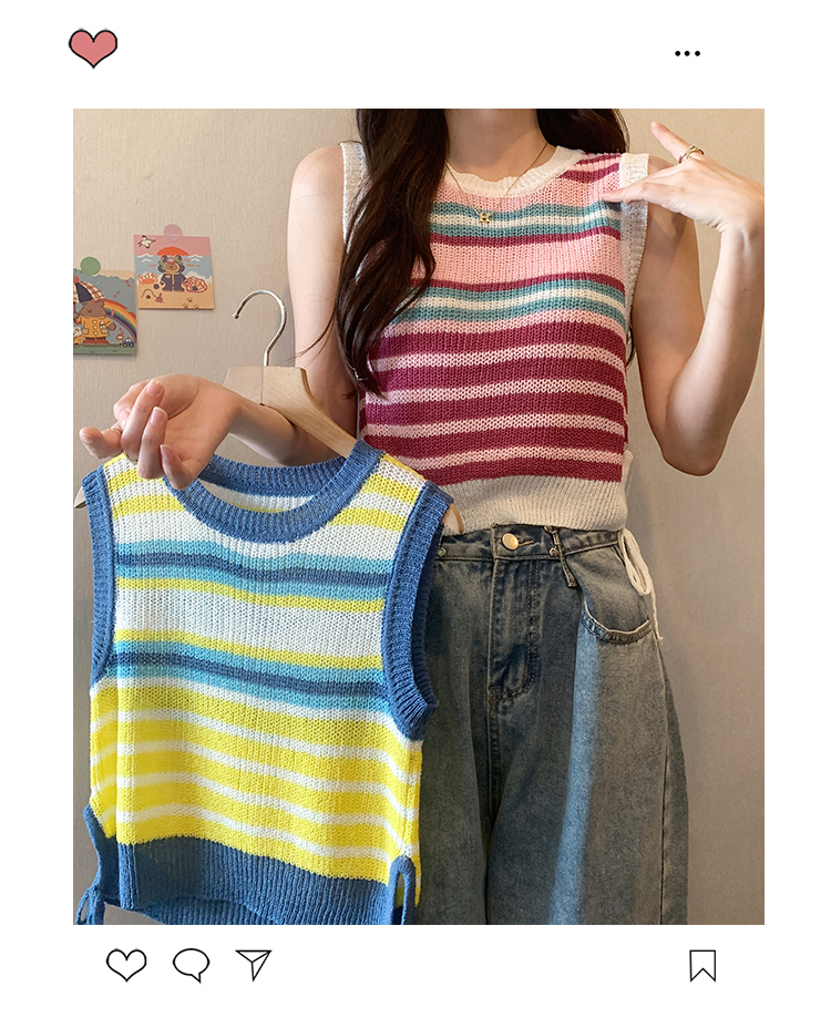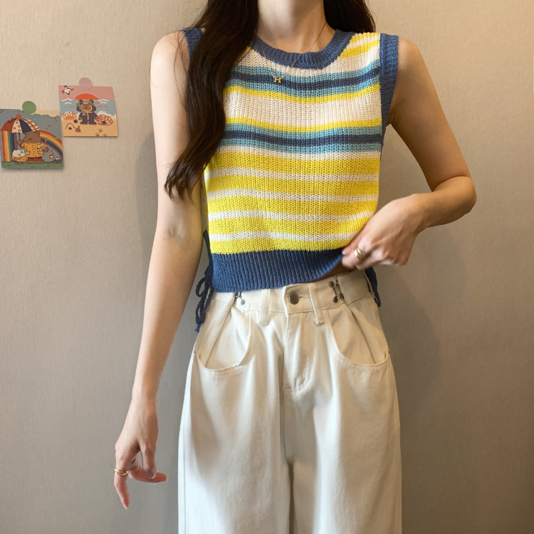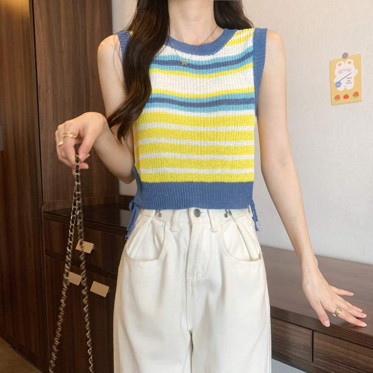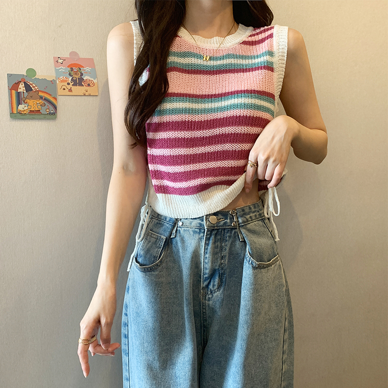 PF620#新款韩版ins无袖背心马甲抽绳甜辣妹针织衫女
