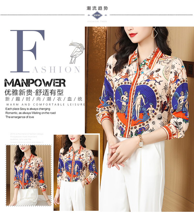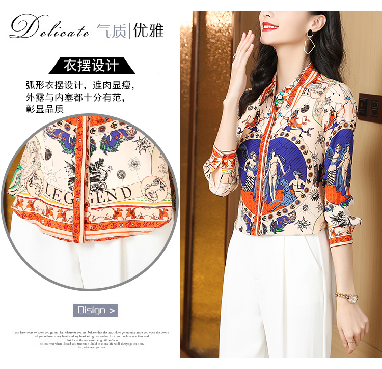 PF639#巴洛克印花真丝衬衫女长袖2024春季新款大牌复古设计感桑蚕丝上衣