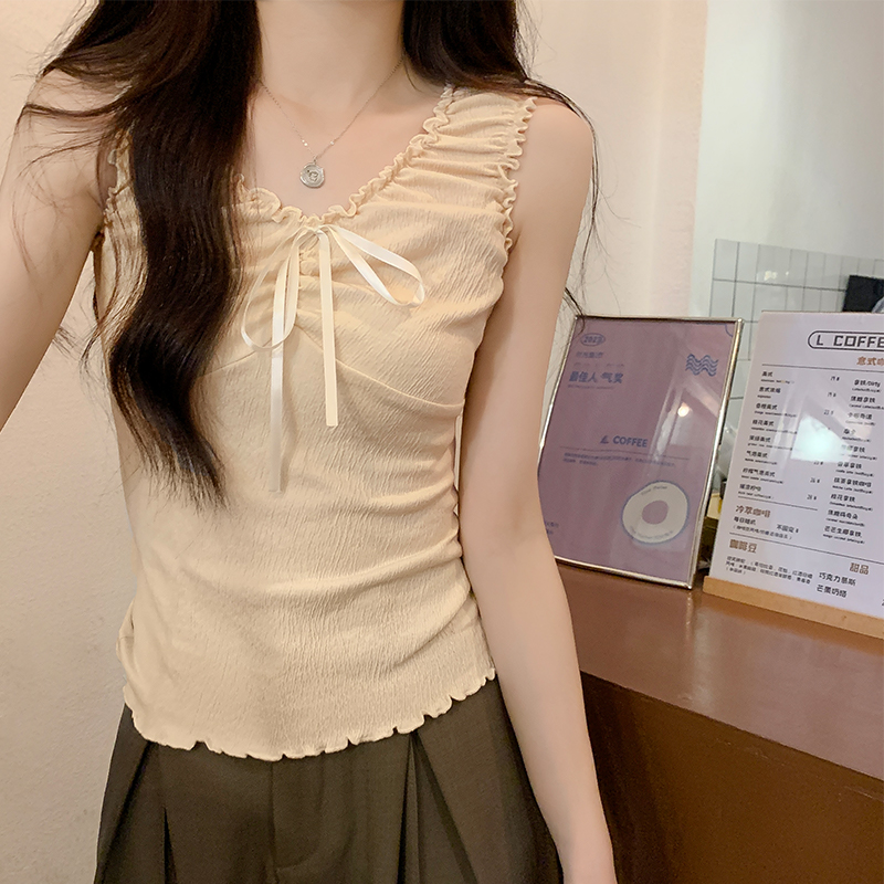 PF718#纯欲蝴蝶结小背心吊带女春夏甜辣内搭设计感小众打底上衣