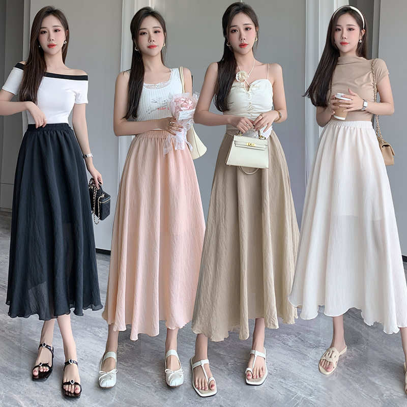 PF747#仙女网纱半身裙夏季新款高腰A字百搭遮胯中长款荷叶边太阳裙