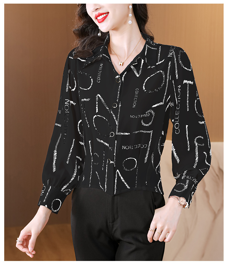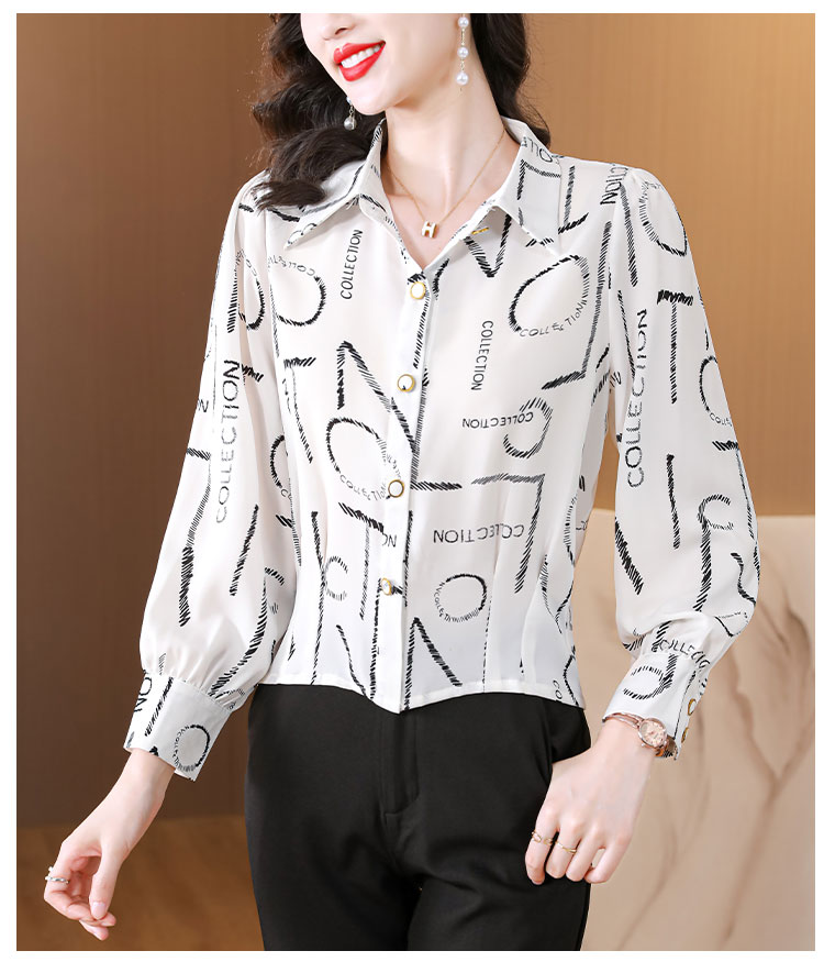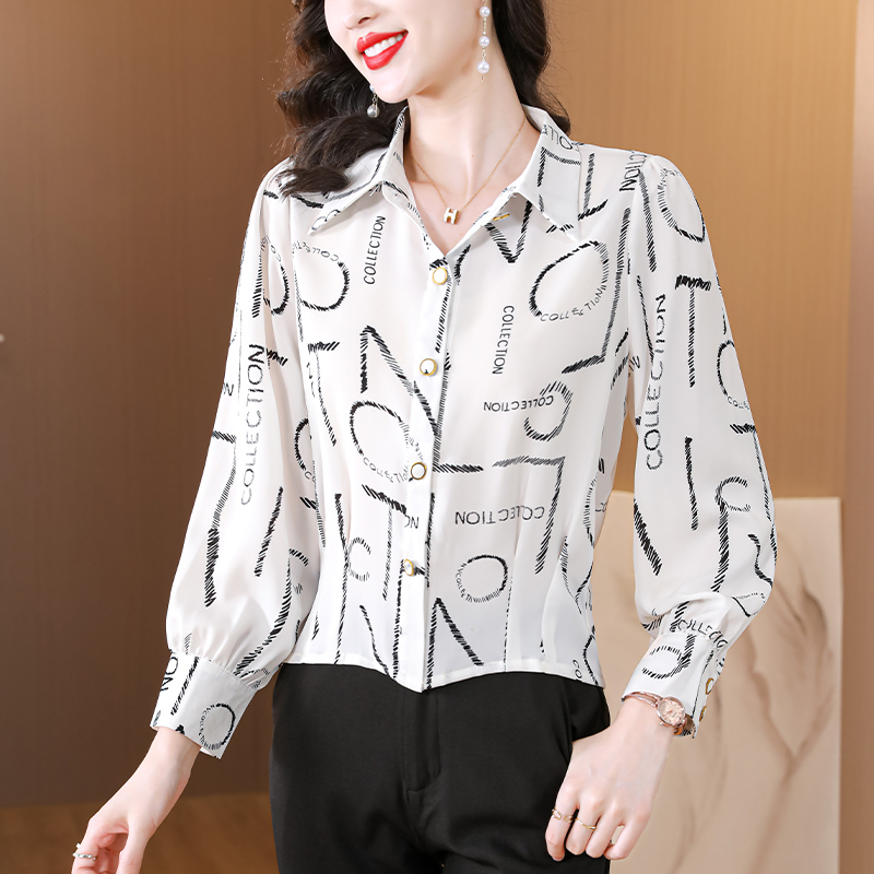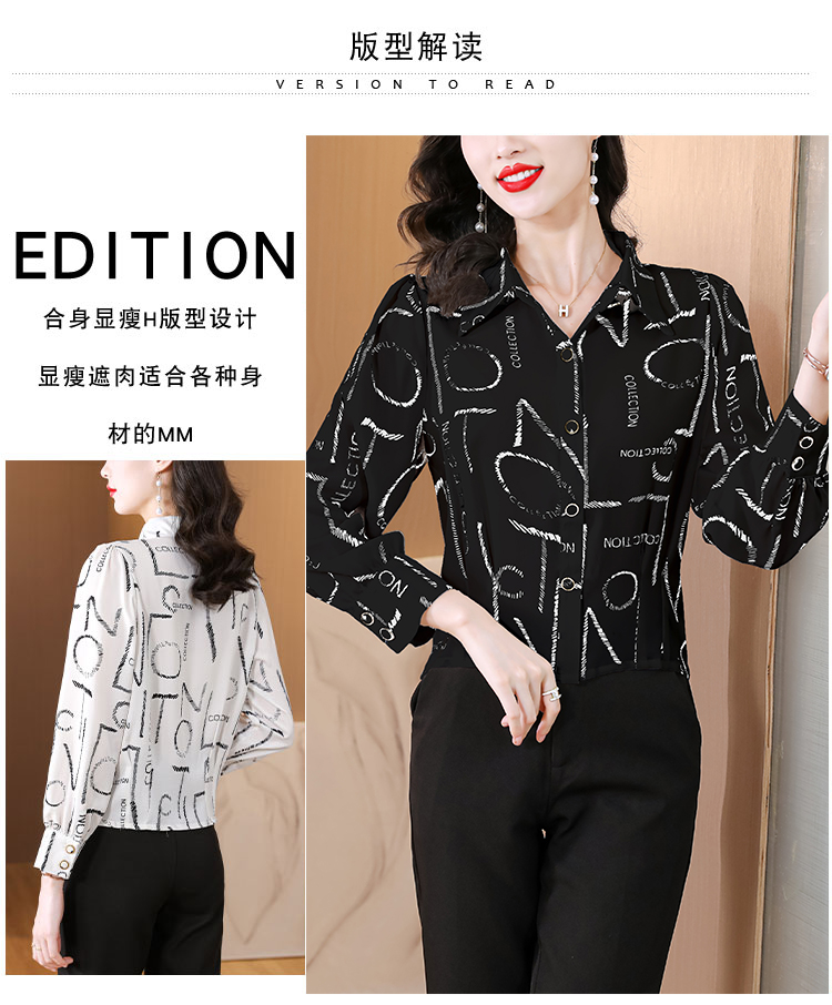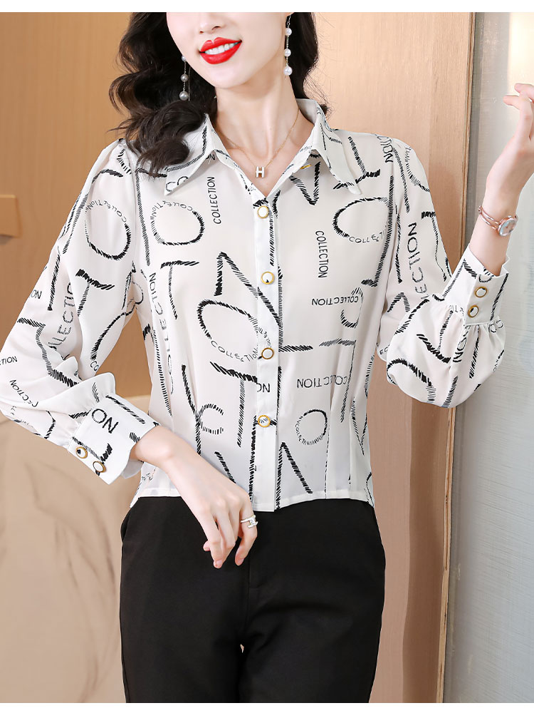 PF888#新款时尚雪纺字母衬衫气质短款显瘦减龄长袖上衣女士