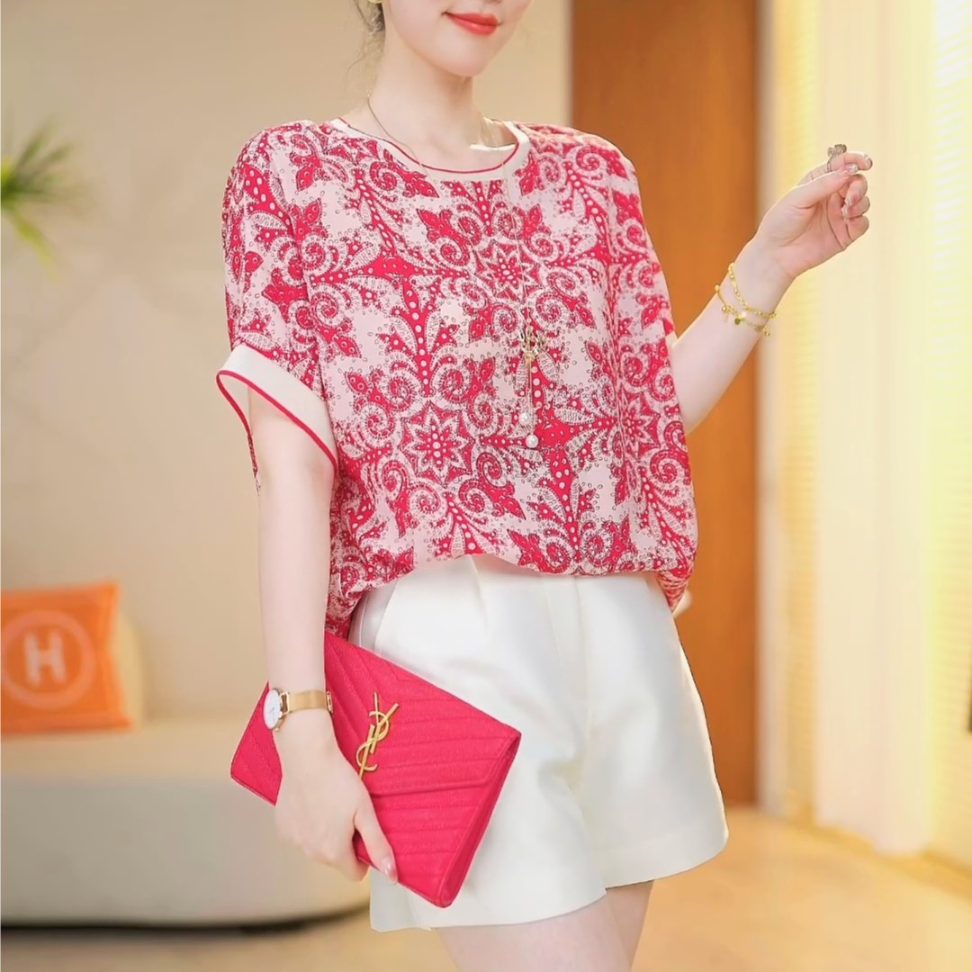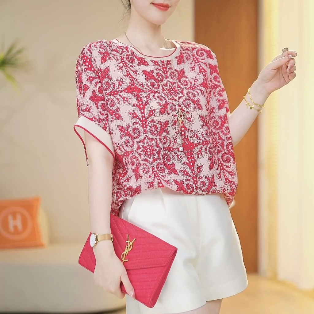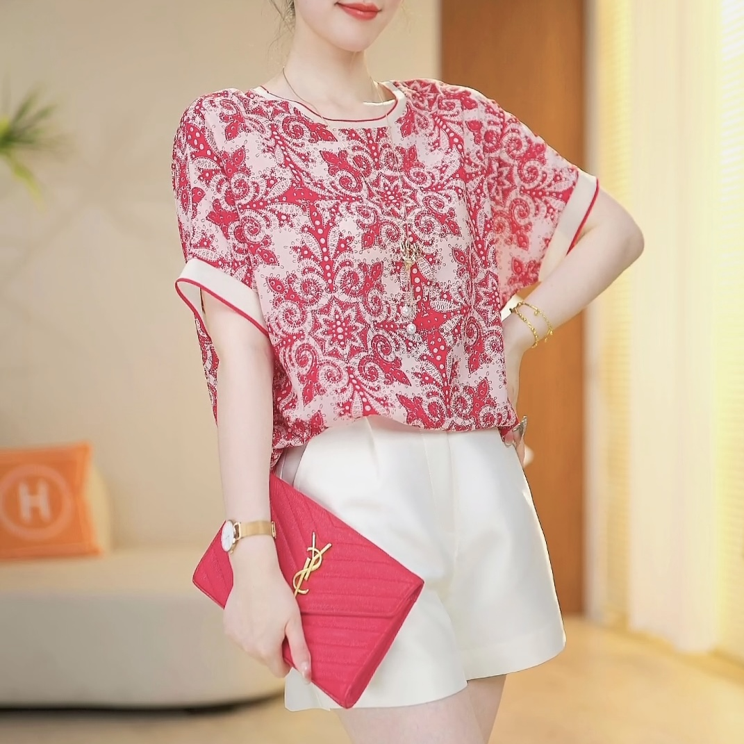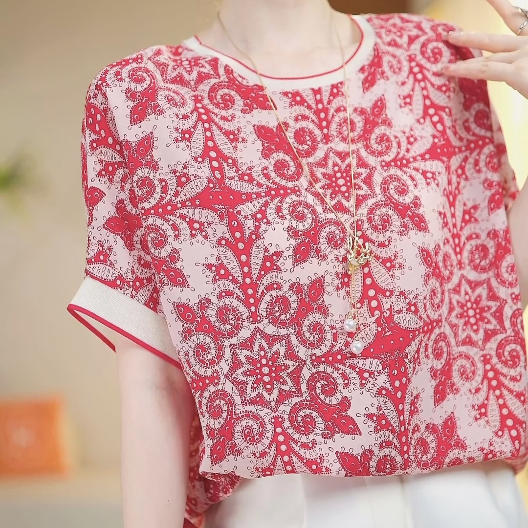 PF890#爆款 时尚气质红色船锚圆领百搭2024夏款短袖显瘦宽松T恤新款上衣