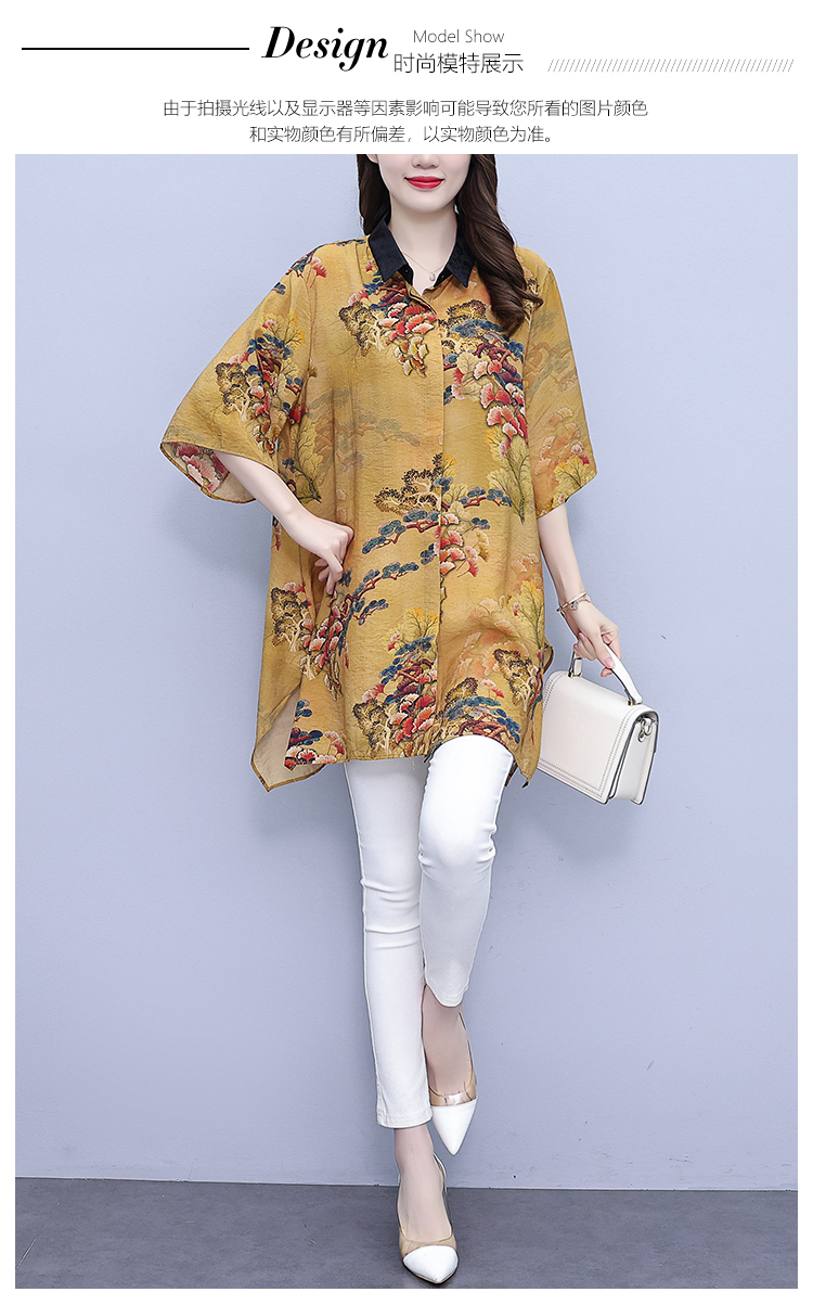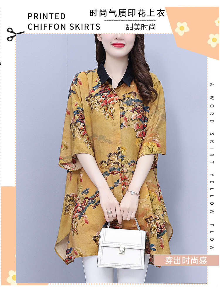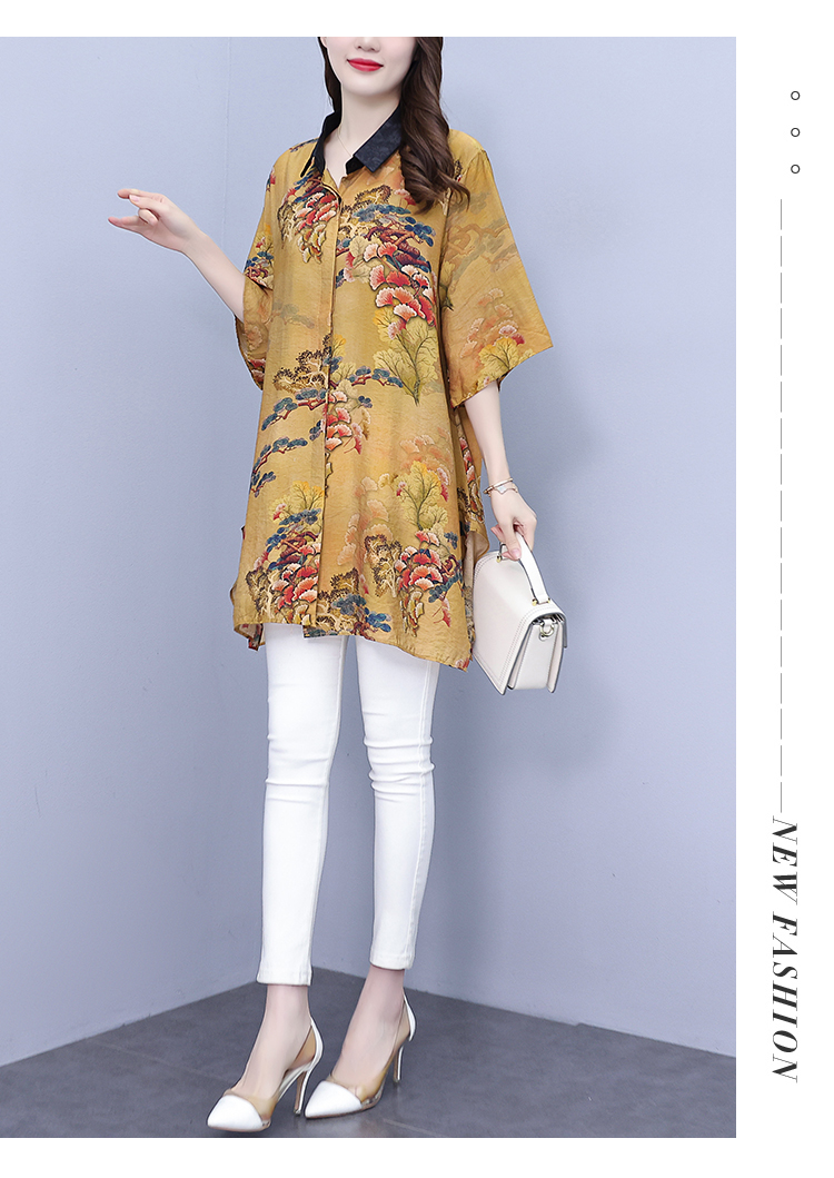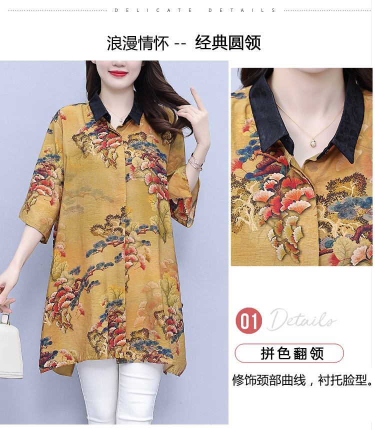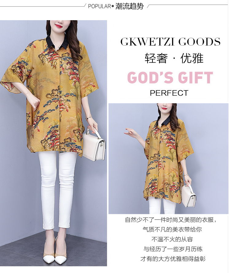 PF965#大码时尚遮肉显瘦印花短袖衬衣2024夏季新款洋气减龄宽松遮肉上衣