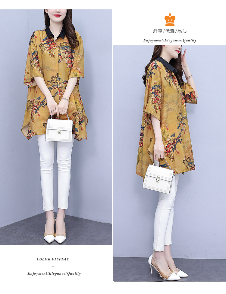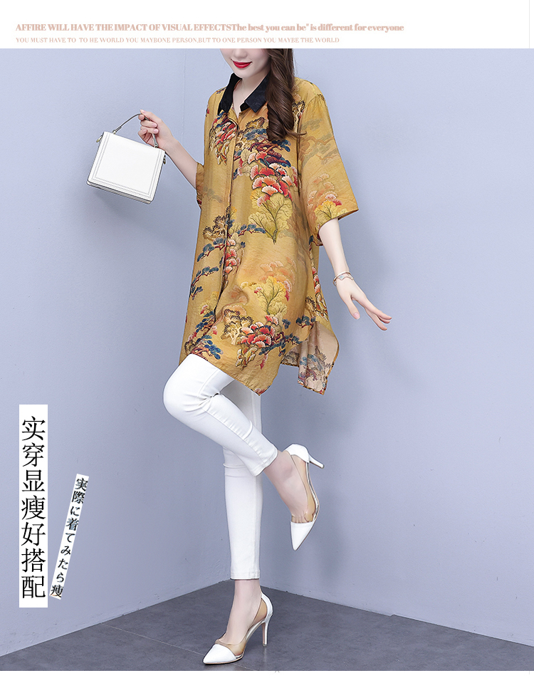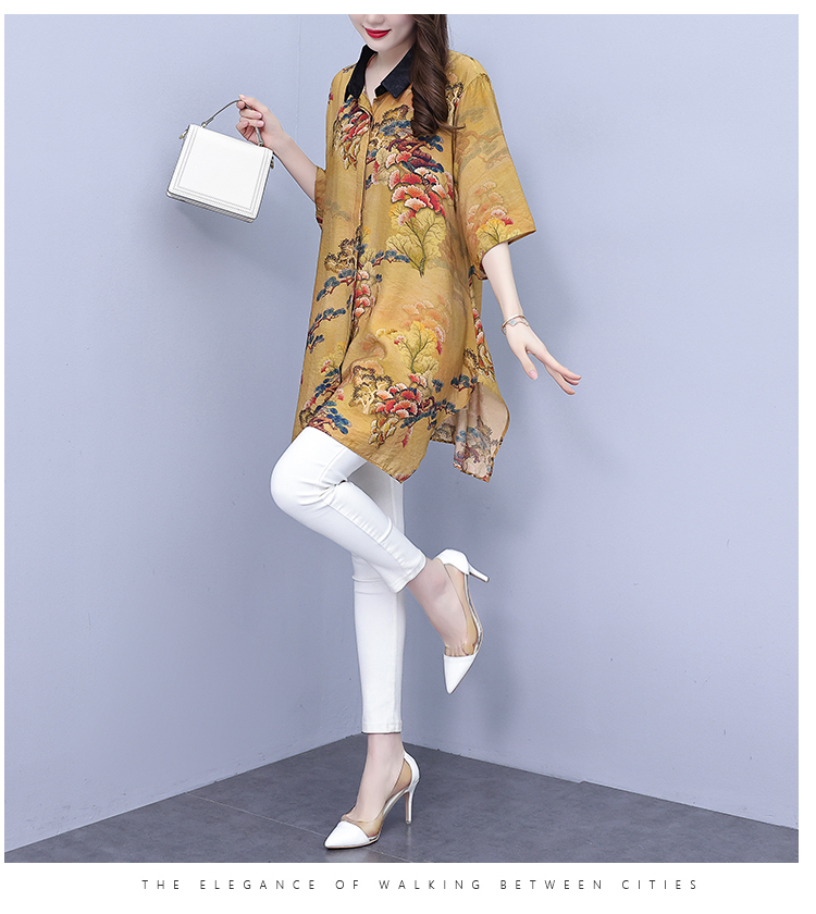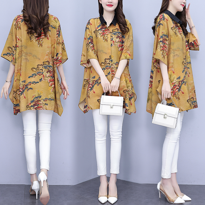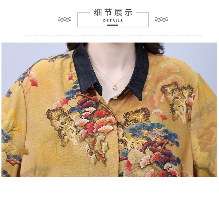 PF965#大码时尚遮肉显瘦印花短袖衬衣2024夏季新款洋气减龄宽松遮肉上衣